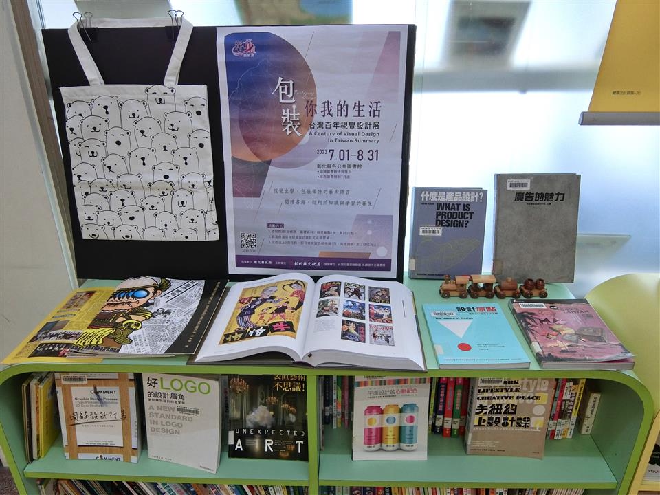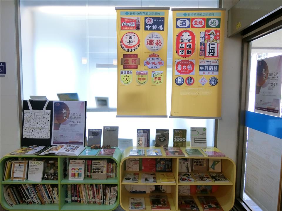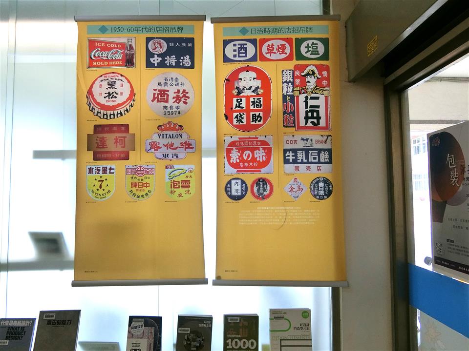看展覽(線西館展出(一)日治時期的店招吊牌 (二)1950-60年代的店招吊牌2掛圖)本館再搭配廣告、商業、設計類館藏書展