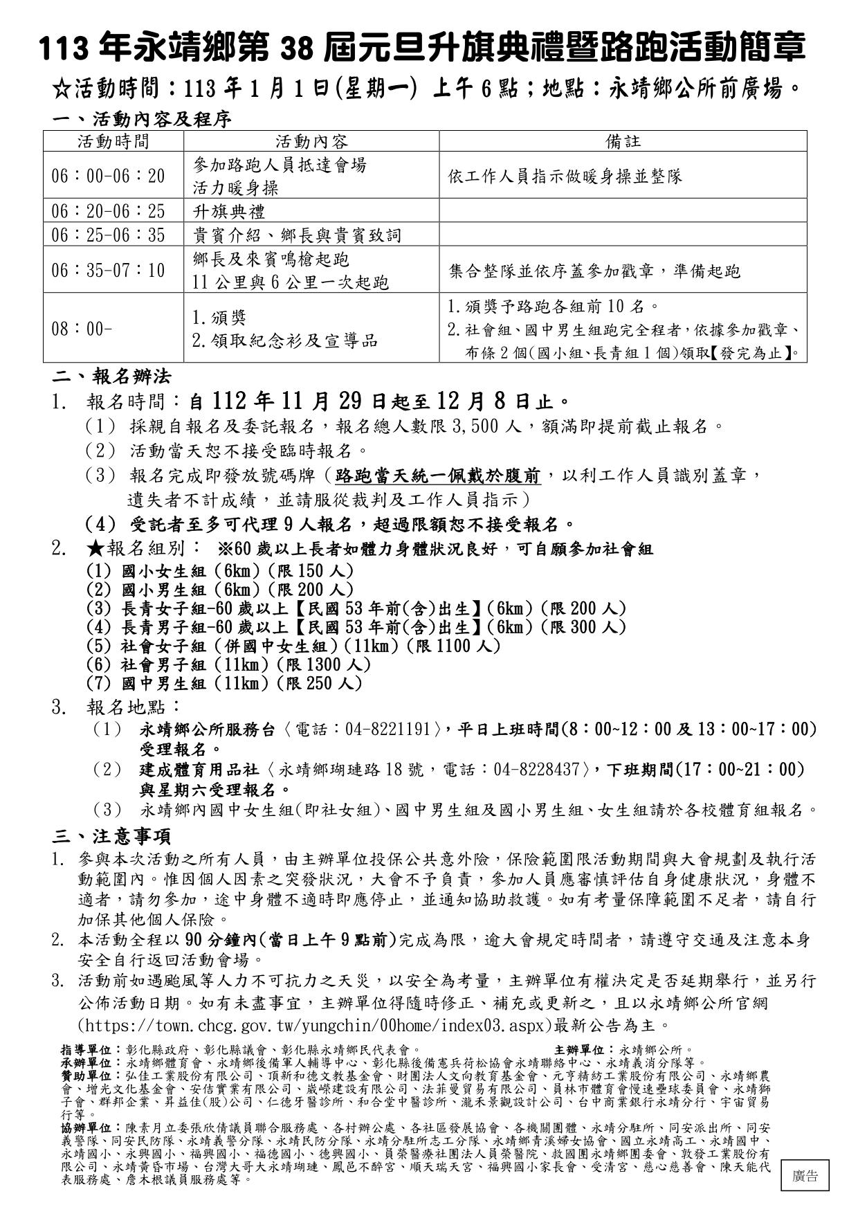 (一) 採親自報名及委託報名,報名總人數限3,500人, 額滿 即提前截止報名。