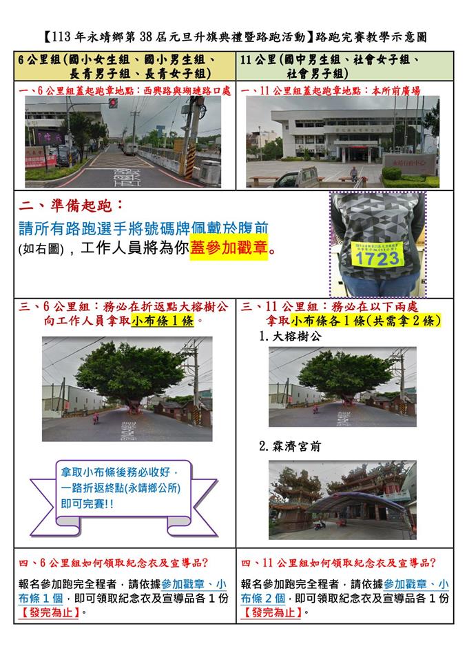 (三) 報名完成即發放號碼牌(路跑當天統一佩戴於腹前,以利工作人員識別蓋章,遺失者不計成績,並請服從裁判及工作人員指示)。