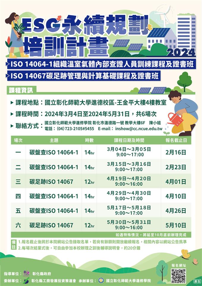 2024年ESG永續培訓-ISO 14064-1碳盤查+ISO 14067碳足跡訓練課程及證書班 限量招生中