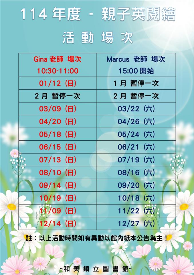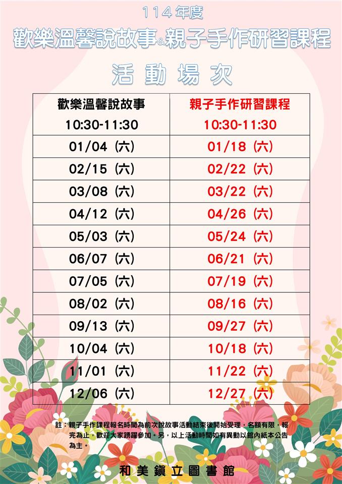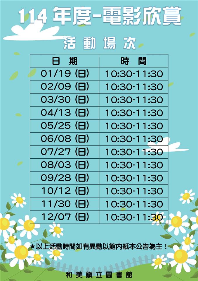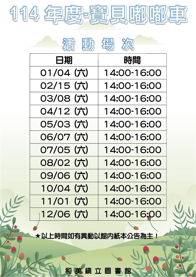 和美鎮立圖書館-114年度每月主題活動表