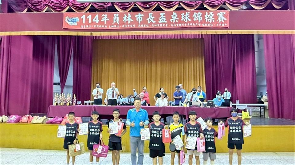 「114年員林市長盃桌球錦標賽」於本月(18)日在大同國中熱鬧登場,會場上嘉賓如雲,有員林市代理市長賴致富、彰化縣工策會總幹事洪榮章、彰化縣政府秘書游筑凱、縣議員凃俊任、張欣倩、曹嘉豪及員林市民代表會代表吳政彥、林玟佑、張詩怡、張偉傑及熱愛此運動等人士至現場為選手們勉勵加油並隆重開幕。