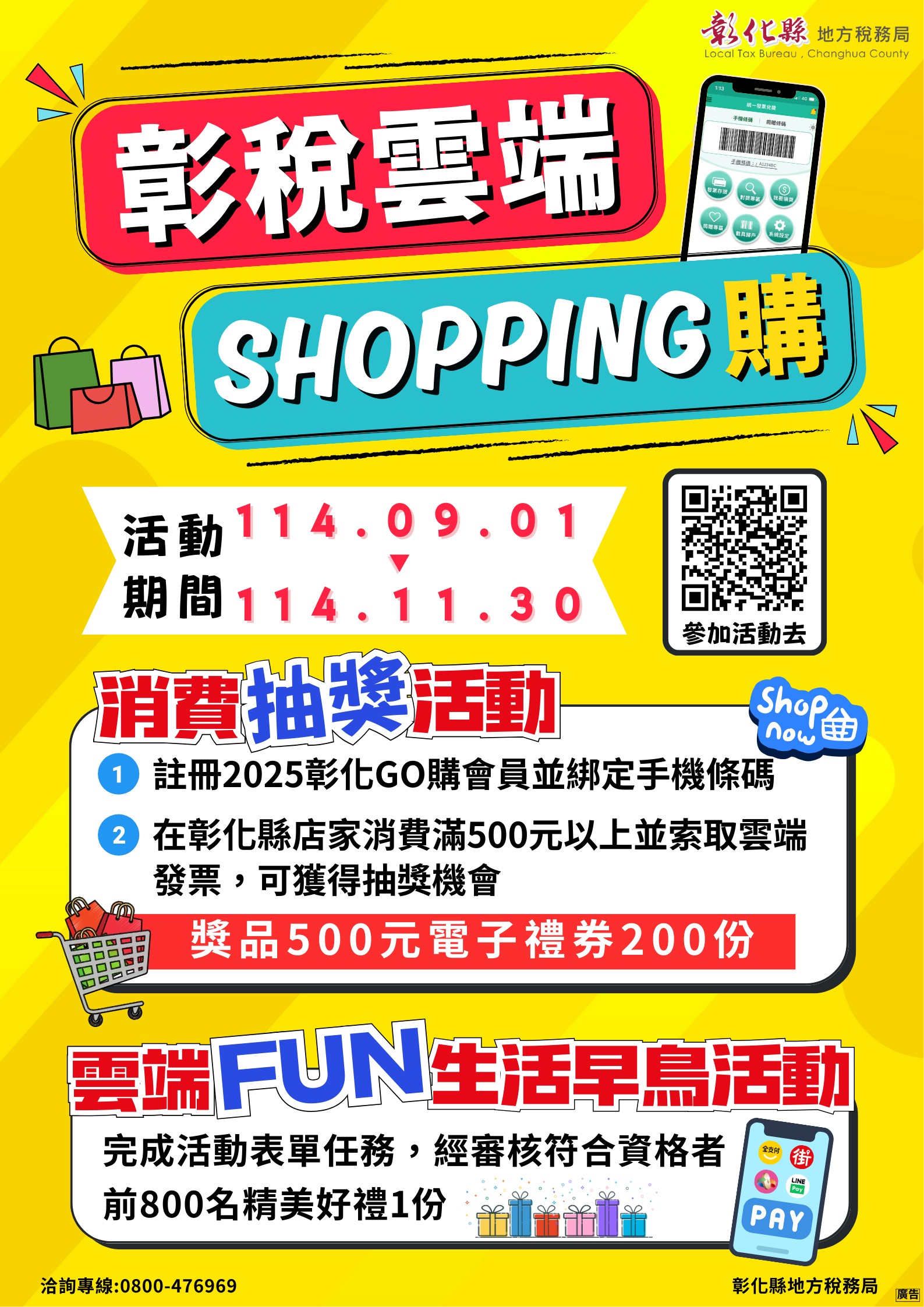 二、「彰稅雲端Shopping購」活動自即日起至114年11月30日止,說明如下: