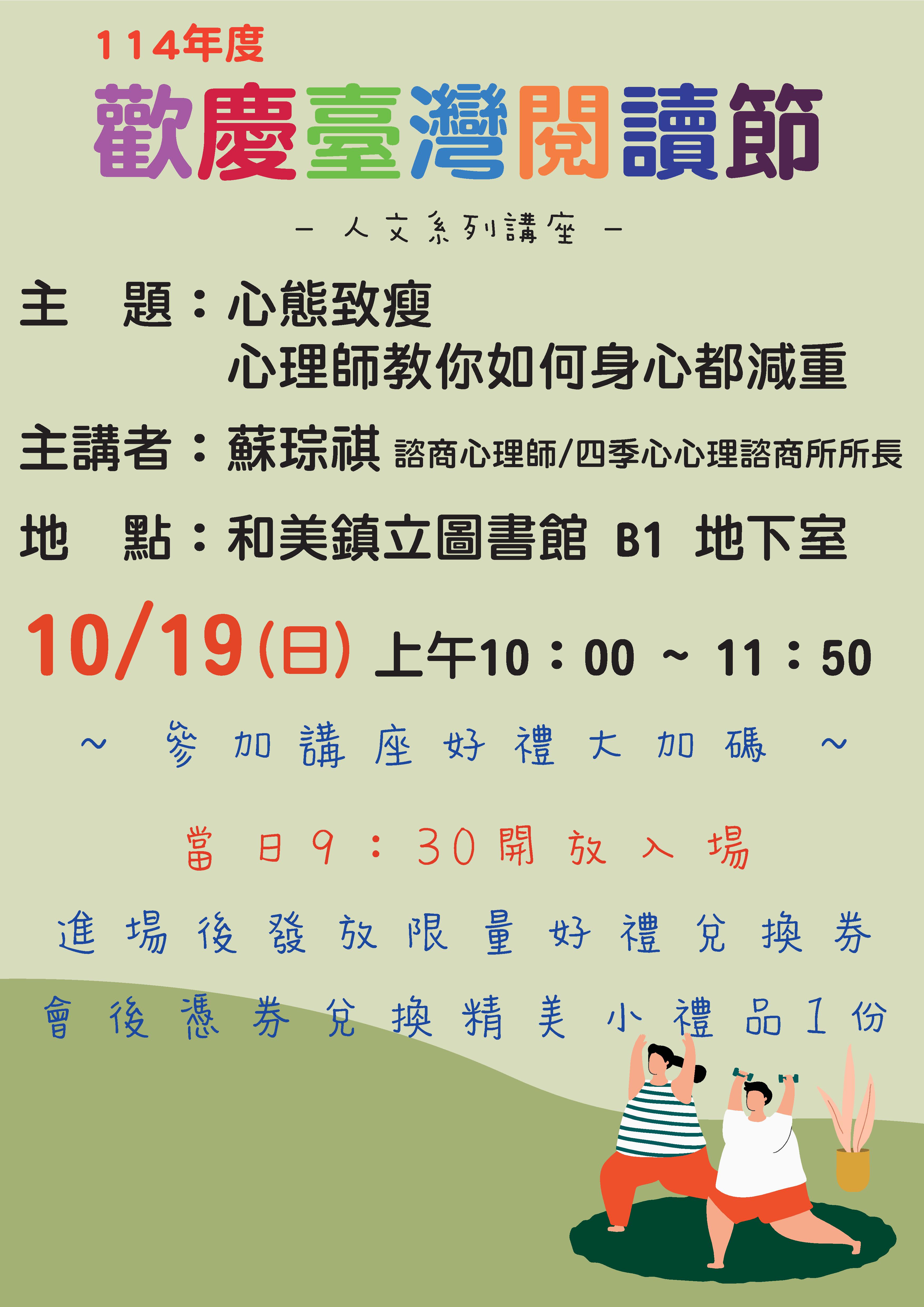 和美鎮立圖書館講座-「心態致瘦」-心理師教你如何身心都減重