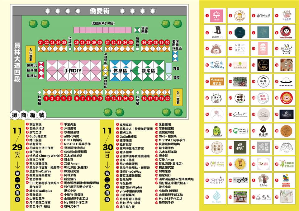 活動邀請超過40組特色攤位,涵蓋餐飲、農特產及文創手作等,今年特別推出「雙倍園遊券」,民眾只要以100元即可購買價值200元商品及美食,攤商亦加碼推出以100元購買價值200元限量福袋,歡迎大家用行動支持在地優質青創產品。
