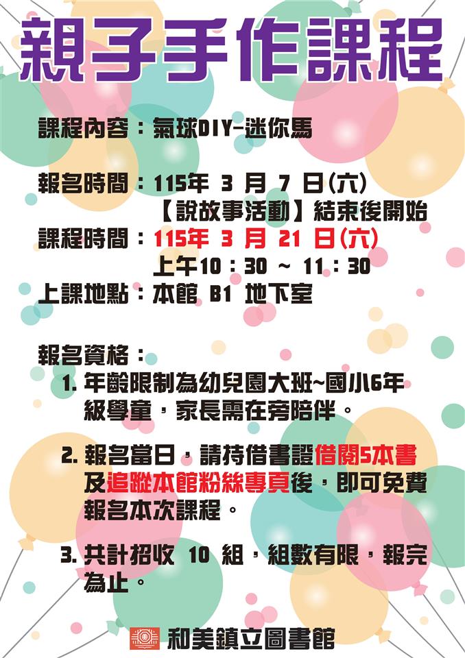 和美鎮圖書館-說故事及親子手作公告