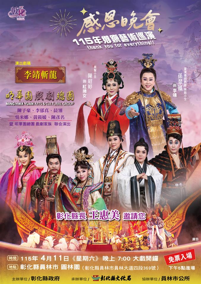 【轉知】「115年感恩晚會-鄉鎮藝術巡演活動-明華園戲劇總團演出(員林場次)」戶外戲劇演出活動