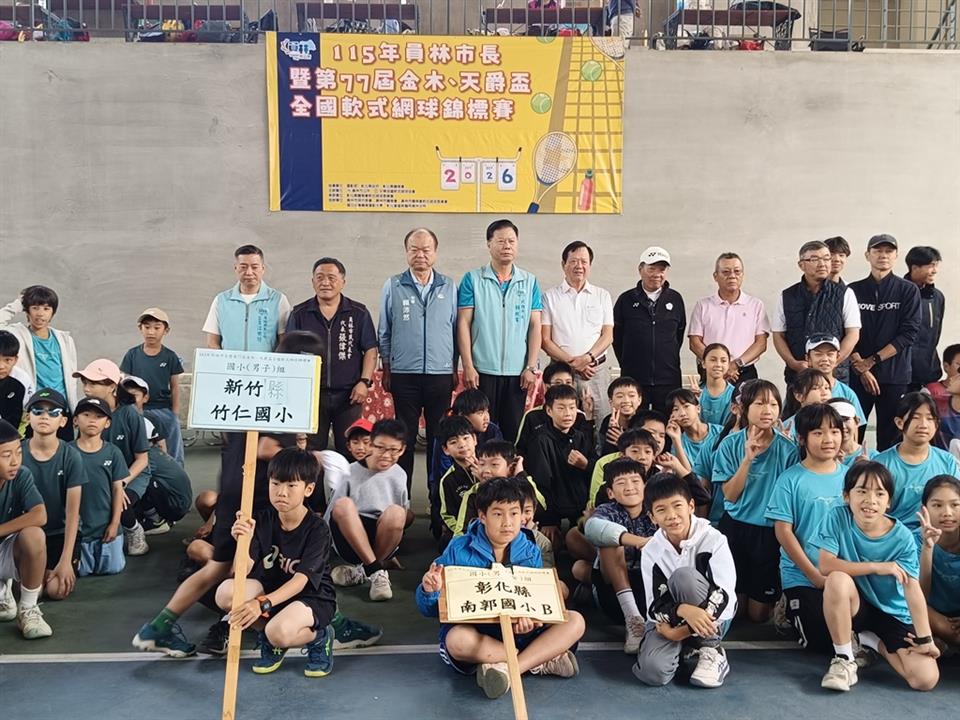 今 (3/20) 天微風徐徐、天氣晴朗,員林市公所特別在員林運動公園網球場連續二天舉辦「115年員林市長暨第77屆金木、天爵盃全國軟式網球錦標賽」,由員林市代理市長賴致富、市民代表會代表張偉傑、彰化縣政府秘書賴沛然、中華民國軟式網球協會副理事長吳明昌、副秘書長黃錦洲;彰化縣軟式網球委員會總幹事陳浩裕、副總幹事張勝發;員林市體育會軟網委員會主委陳世邦等貴賓到場為來自全國各地好手加油打氣,期待其等能爭取佳績,為校爭光。