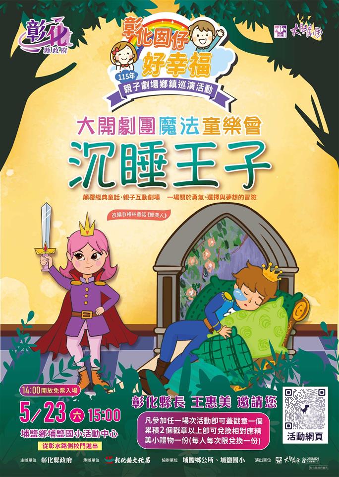 彰化縣文化局辦理「彰化囡仔好幸福-115年親子劇場鄉鎮巡演活動」,歡迎鄉民踴躍前往觀賞。