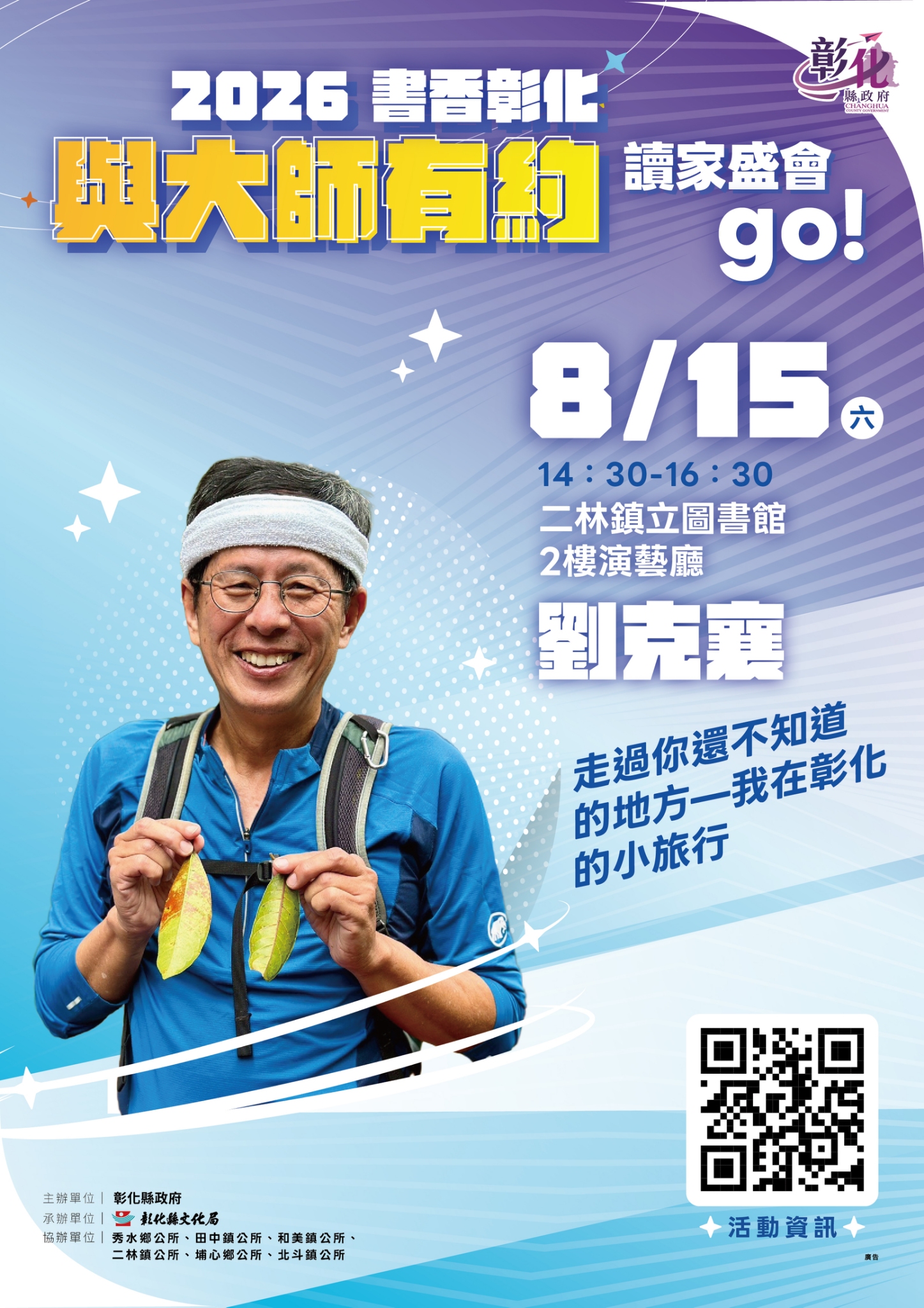 8月15日下午2時30分至4時30分辦理「2026書香彰化─與大師有約」