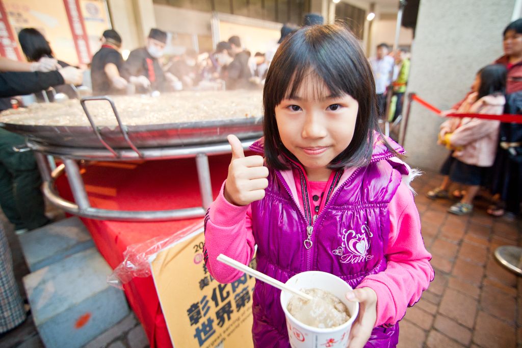 彰化縣政府近年來積極推廣在地美食,今年擴大舉辦「2012彰化美食節」,今(18)日下午在體育館「挑戰世界最大肉圓」,展現彰化特有的美食文化,並促進彰化休閒旅遊商機,推廣觀光產業。會中,彰化縣長卓伯源、立委魏明谷、縣議員賴岸璋、黃育寬、洪宗熠、明道大學校長陳世雄、彰化縣副縣長楊仲、縣府各單位主管、以及來自全國各地的鄉親共同見證這歷史的一刻,當685公斤的肉圓破紀錄時,現場響起如雷的掌聲,隨後,卓縣長也將這個超級大肉圓分予現場的民眾,共同分享這份喜悅。 卓縣長表示,彰化縣政府積極推廣文創,在去年創下親子共讀、舞獅、小提大奏三項世界紀錄後,這次更製作世界最大的肉圓,讓大家知道最好吃的肉圓在彰化,世界最大的肉圓在彰化,今天邀請到在地業者阿璋肉圓,現場製作世界最大的肉圓,成功挑戰金氏世界紀錄,也將美味分享給現場民眾,大家共同見證這歷史性的一刻,同時,為了讓全國民眾深入瞭解彰化的熱情美味,現場也邀請新出爐的2012彰化縣10大伴手禮業者、以及多家優鮮農特產品及伴手禮業者進行展售活動。 除了世界第一的肉圓外,彰化縣政府也歡迎民眾參與將在12月16日舉辦的「2012彰化美食節」焢肉飯節活動,預計邀請千人一同來到彰化,品嚐由在地優質好米所烹煮出的焢肉飯,並將挑戰金氏世界紀錄,現場也將提供民眾千份美食免費品嚐,以及熱力四射的音樂會活動,打造一場兼具味覺與聽覺的美食節饗宴,讓彰化美食鑲「金」,打造「金」正讚的美食之都!
