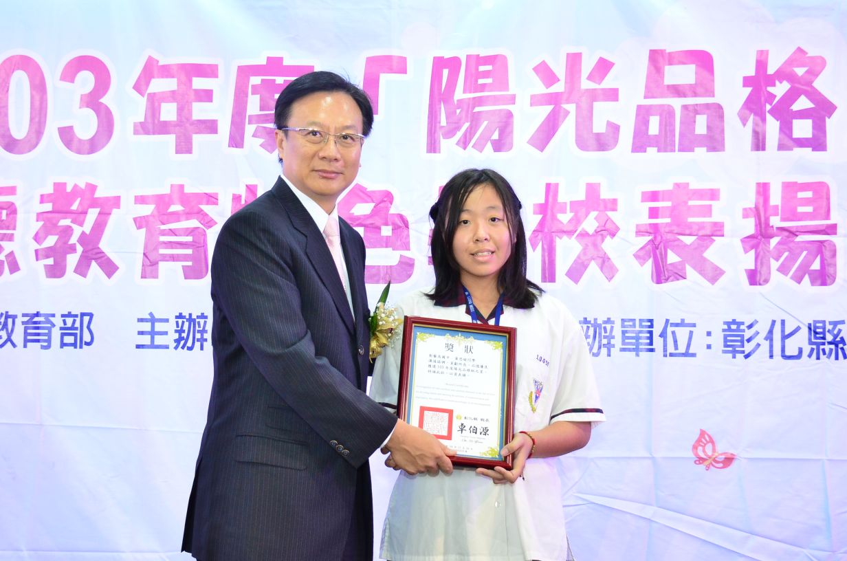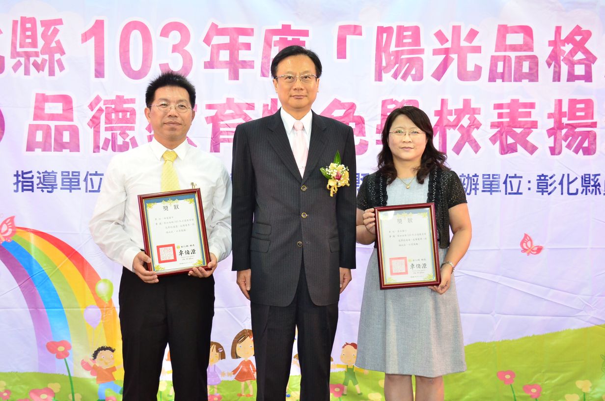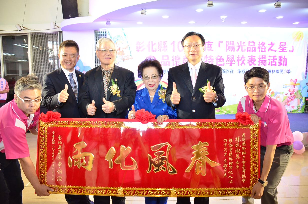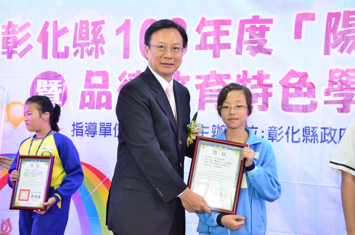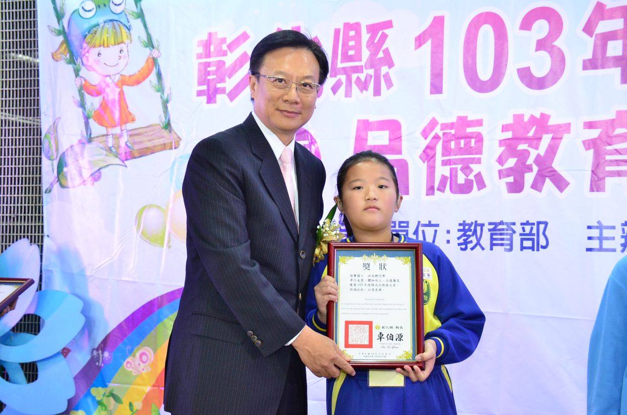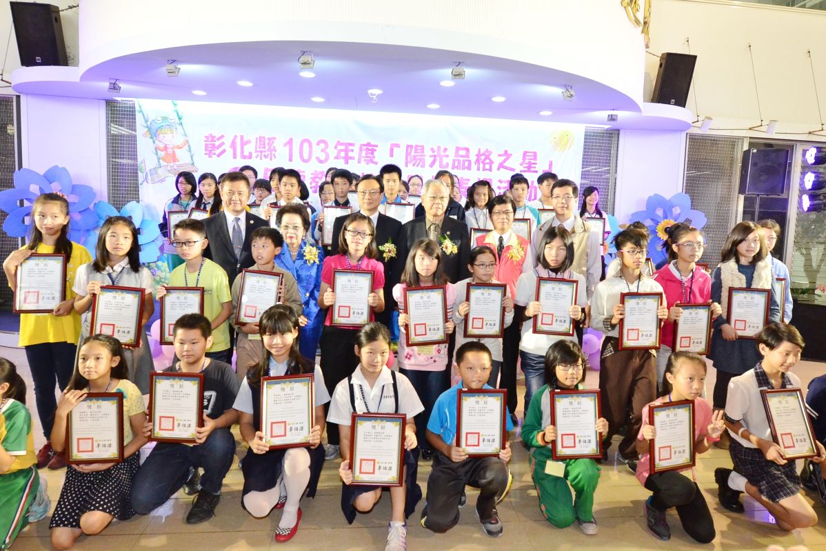 彰化縣政府(26)日上午在縣府中庭舉行103年度「陽光品格之星」及「品德教育特色學校」聯合表揚活動,彰化縣長卓伯源親自頒獎給60位榮獲「品格之星」的學生及伸港國中、清水國小兩所特色學校;期勉品德教育埋下的小種子,成為學習的典範,讓良好的品德如同細水長流、永續經營,進而提升彰化縣的道德水準,營造一個優質而高品格的倫理道德大縣。 與會貴賓,還有國際獅子會臺灣總會林施淑美女士、中美企業集團總裁林滄洲、總經理林本源,彰化縣脊髓損傷協會理事長江信行、縣府教育處長張基郁及各國中小校長等。 卓縣長致詞時感謝學校老師及校長對推動品格教育的努力,並引用法國曾任財政大臣考伯特(J. B. Colbert)說:「一個國家是否偉大並不是在於疆域的大小,而在於國民的品德。」,同時結合社會力量,縣府積極努力在縣內各地推動品格教育,期望藉由表揚活動,塑造品格教育的典範,深化品格學習的教育,讓社會各界看到品格教育的重要性,培養優質品格風氣,建造彰化成為富而好禮的彰化新盛世。 卓縣長指出,彰化平原種大樹,常有奇才作棟樑,這次的「陽光品格之星」為春之星、夏之星、秋之星及冬之星,分別以感恩、孝順、守法、正義、合作、負責、禮節及信實等8品德項目,自彰化縣國民中小學學生中,選拔出60顆閃亮的「明日之星」,品格教育就是典範學習,每位都是國家社會未來的棟樑之材,期望學子將來能熱心公益、奉獻社會。 卓縣長並於表揚會中致贈國際獅子會臺灣總會林施淑美女士「春風化雨」匾額及「言傳身教」獎座,表彰其長期致力推動「重建倫理、淨化人心」校園宣導活動的傑出貢獻。 彰化縣政府規劃一系列品德教育推動方案,各校自去(102)年10月至今(103)年6月,在國際獅子會臺灣總會重建倫理委員會主任委員林施淑美的鼎力贊助下,已舉辦188場次的品德教育深耕宣導活動;並配合教育部進行品德教育深耕計畫,將品德教育推廣到各級學校,伸港國中、清水國小等2校榮獲教育部表揚為「全國品德教育績優學校」殊榮,證明彰化縣在品德教育的推動上可說成績斐然! 今年將陽光品格之星及品德教育特色學校結合在一起,希望將友善校園的品德觀念向下扎根,從學校推廣到每個學生,具體落實實踐品德教育;「陽光品格之星」分為「春之星」、「夏之星」、「秋之星」及「冬之星」,分別以「感恩、孝順、守法、正義、合作、負責、禮節、信實」等8款品德項目,從彰化縣國民中小學學生中,選拔出60顆閃亮的「明日之星」。 每位獲獎陽光品格之星都有一段讓大家值得學習及了解肯定的故事,就讀陸豐國小洪宜靜同學,在幼兒園時,鑑定出來是聽覺障礙,卻沒有被命運打倒,反而更積極的面對自己的人生,體諒父母工作辛勞,主動分擔家務,秉持著「認真做的事,就是最好的事!」的至理名言,總能笑臉迎人面對挑戰,主動協助同學,是班上的小天使,更是學校多才多藝的模範生。 就讀秀水國小的張容瑄是個令人刮目相看的品格之星,雖然從小失去父愛,但是她一直勇敢地面對自己的人生;她的成績一直名列班上的前二名,並每週都到秀水分局擔任警察志工及協助相關宣導活動,數年間從不間斷,懂得感恩、孝順、樂觀積極的品格,榮獲「2013 So good全國少年楷模」最大獎及本屆教育部奮發向上獎的殊榮。 就讀彰化藝術高中國中部的黃思瑜,從小就是一個活潑樂觀的孩子,也以爭取參加各類型的活動為學習目標,她從七年級開始就擔任班上副班長職務,認真負責,更是師長及同學心目中的好幫手!品學兼優的思瑜,也經常榮獲全年級段考第一名的殊榮;並曾經參加閩南語比賽、教室佈置比賽,並獲得極佳的表現。 各個獲獎同學的成長歷程,特別值得嘉許與讚揚,期盼透過「陽光品格之星」表揚活動,在各校持續推動與發酵,有效形塑正向校園氛圍,重建良善校園倫理,提升人文社會風氣,讓彰化縣成為擁有「知書達禮好品彰化人」的陽光好城市。