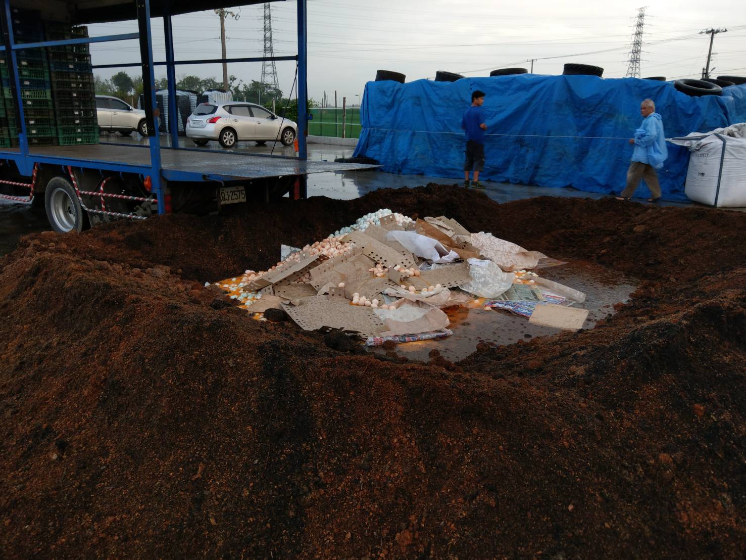 有關縣內3家蛋場經農委會檢驗出殘留芬普尼,彰化縣政府已執行將上游部分封存所有的雞蛋、清查往其它縣市的農產銷售通路,及將相關市面商品做下架回收作業後,在23日下午由彰化縣動物防疫所長董孟治前往二林鎮萬原路進行雞蛋銷毀作業,不再流入市面。 動物防疫所董所長表示,為保障民眾的食品安全及健康,此次總計銷毀40箱約8000顆蛋為連成牧場檢驗出殘芬普尼的蛋,全數將蛋丟置到堆肥裡打破掩埋,後續下架及管制的雞蛋就不會回到市場上,請民眾安心選購。