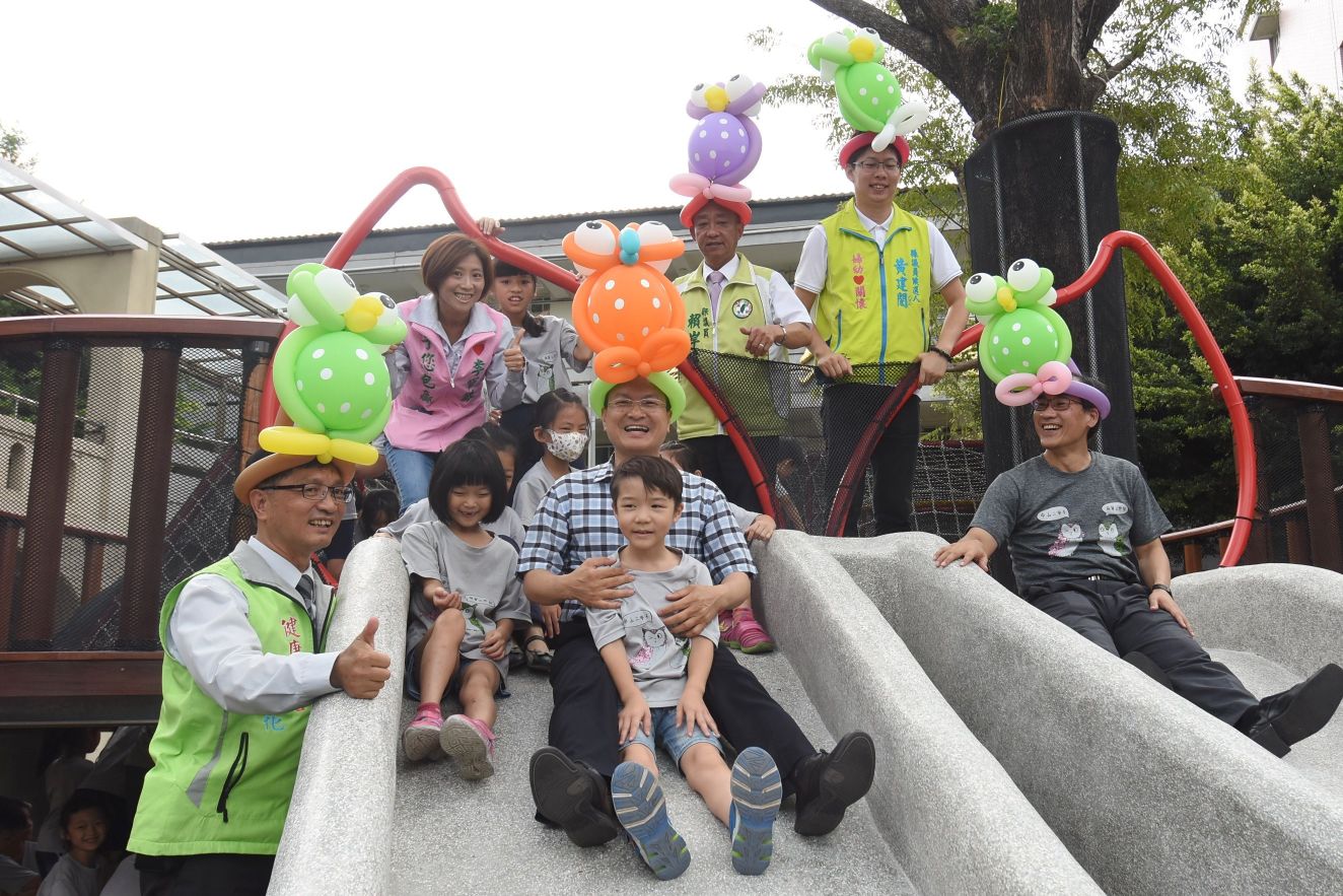 教育是百年大計,投資教育就是投資彰化縣的未來,近年來,彰化縣政府在魏縣長「前瞻、策略、博雅」的典範領導下,積極推動綠能政策並落實「取之於彰化、用之於彰化」之回饋精神來照顧兒童。彰化縣政府於106-107年共編列2,219萬元協助各校創建多元化的創意遊戲空間,落實兒童遊戲安全的把關,全面照顧到每個孩子的遊戲權利,讓學校師生、家長及社區民眾擁有更好的遊戲與運動休閒環境。中山國小是彰化縣優先示範推行創意遊戲場設施實施計畫學校之一,也是縣內繼彰化市民生國小、信義國中小、芬園鄉文德國小之後的第四座創意兒童遊戲場設施,以【領角鴞樂園】為名的創意遊戲場,28日上午在全校師生矚目與期待下啟用,彰化縣長魏明谷與會,期望新創意遊樂場的啟用,能夠給孩子更多元、舒適且安全的遊憩空間。 魏縣長表示,縣府已陸續投入二千多萬元經費,改善中山國小校園設施,這次中山國小以校園吉祥動物「領角鴞」為主題的創意兒童遊戲場設施完工啟用,全新的遊戲場不僅有軟墊、人工草皮鋪面等安全設備,更結合創意與趣味探索,小朋友在這裡遊玩也能學習成長,歡迎家長們帶小朋友來這裡運動、促進親子關係。未來將陸續建置縣內其他學校的創意遊樂設施。 中山國小校長王春堎表示,「領角鴞」也就是貓頭鷹,是中山國小的校鳥,每年都會來到校園築巢,與小朋友打成一片,幾乎是校園中的一份子,這次縣府補助170萬元施作遊具,感謝魏縣長縣府團隊的支持與協助,領角鴞樂園配合特色課程,並兼顧學生需求,包覆在叢林之中,讓小朋友可以在玩耍之外,體認到學校特色課程頒訂的意義與價值,並結合戶外教育課程,也可讓小朋友訓練體適能,非常有意義。 中山國小創意兒童遊戲場設施以「探索」為主題設計,運用中山國小吉祥物領角鴞的特徵,將其垂直向度重疊讓孩子在領角鴞裡外遊走攀爬上上下下促進學童探索及發現的學習過程,另外,也從學生的需要及學校生態特色出發保留完整的樹木群,以接近自然顏色的人工草皮作為安全鋪面,遊戲場設有滑梯、螺旋攀爬架、防墜網和瞭望台,充份體現孩子的需求也兼顧安全性、統整性、發展性、多樣性、挑戰性、創造性與近便性之遊戲場精神,孩子穿梭其中彷彿是森林中的小精靈,整個區域都是孩子的遊戲場。 今天的落成啟用只是開始,在107年度彰化縣政府投入更多資源打造深具校本特色的創意遊戲場,更結合了共融式的概念,兼顧每個孩童遊戲的權力,未來,彰化縣政府將持續推動這項優質計畫,興建有趣、創意又安全的遊戲設施,讓每個小朋友都能擁有多彩繽紛的童年回憶。 與會貴賓彰化縣議員賴岸璋、林世賢、彰化市長邱建富、中山國小校長王春堎、中山國小家長會長楊澤民以及各級民意代表與地方仕紳等人。