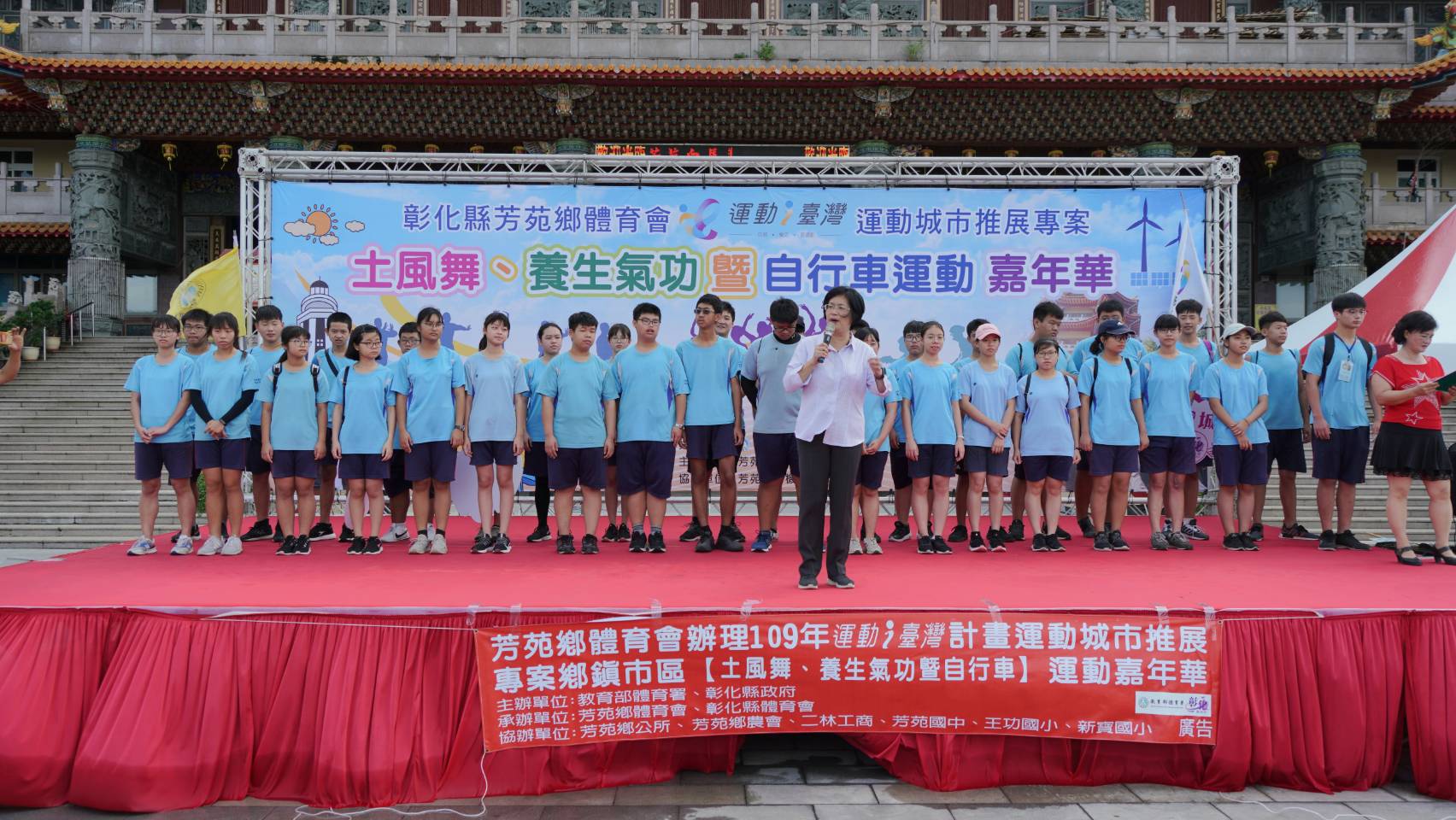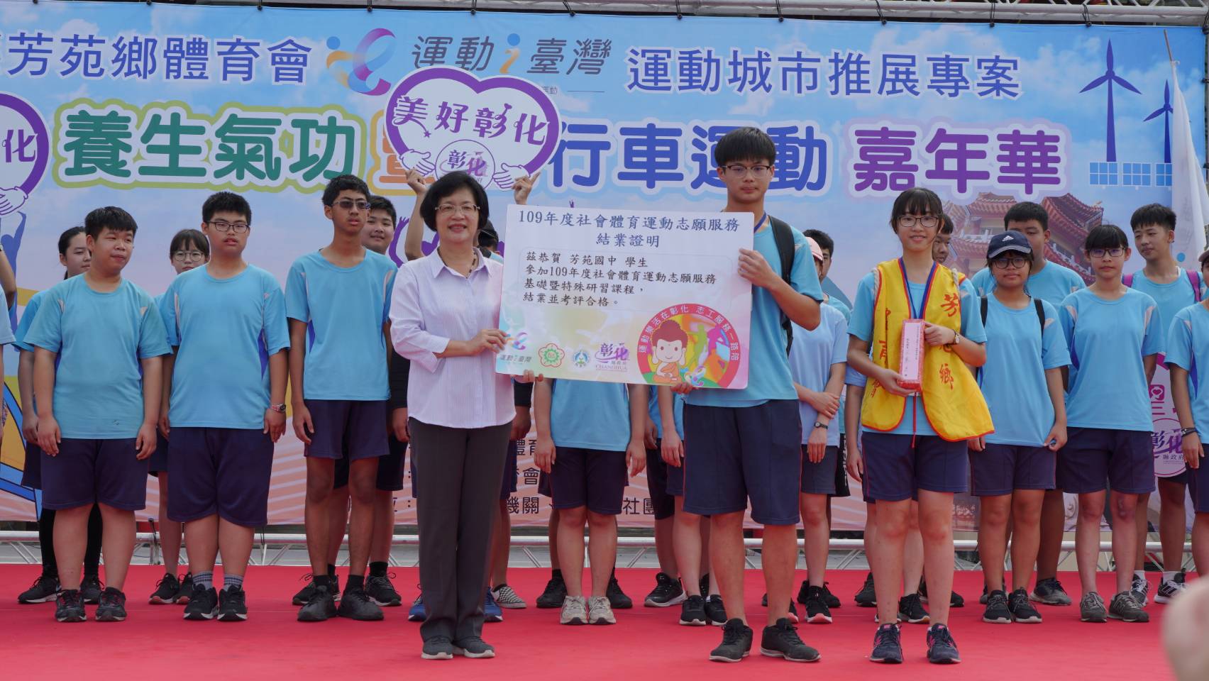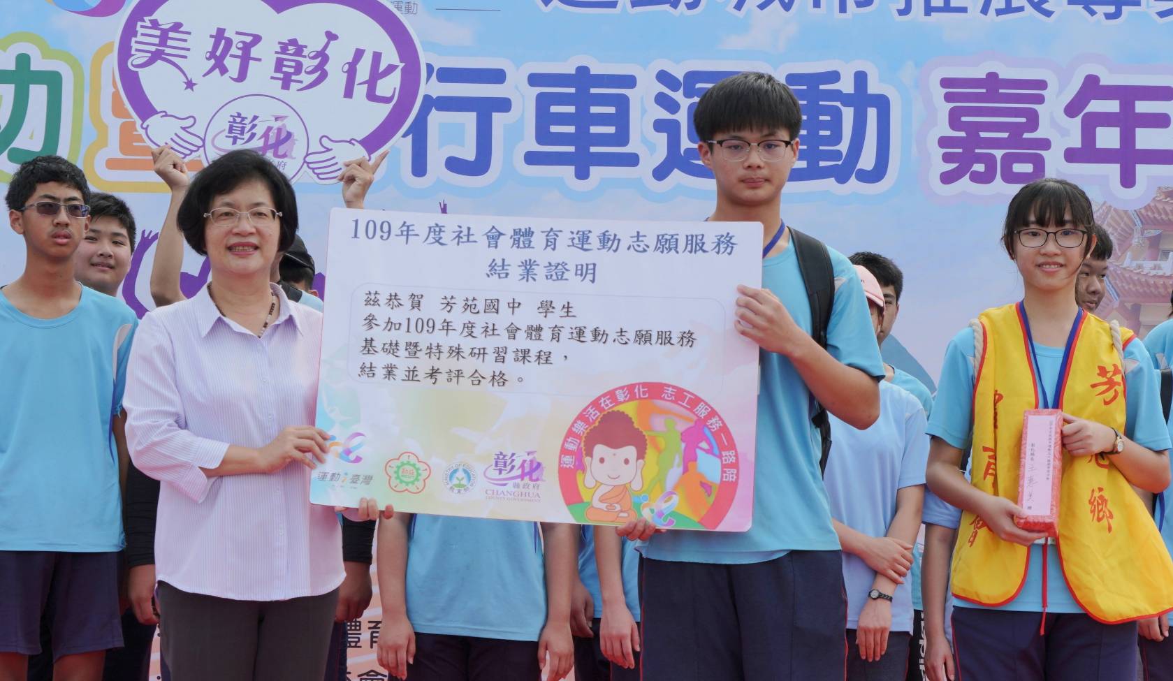 彰化縣長王惠美30日一早到芳苑普天宮參加由芳苑鄉體育會辦理的運動i臺灣「土風舞、養生氣功暨自行車」活動,芳苑鄉體育會理事長黃榮和、教育處長陳逸玲等人與會,時值新冠肺炎,王縣長鼓勵大家走出戶外,多運動,好處多多,促進新陳代謝、增加身體的免疫能力,還能紓解身心壓力,希望透過推廣運動將運動融入大家生活, 一起享受運動所帶來的幫助。感謝主辦單位彰化縣芳苑鄉體育會,也感謝芳苑國中的志工團隊,熱心積極服務協助體育運動推動,運動帶來健康,凝聚社區團結的向心力,讓我們一起為健康幸福打拚。 「土風舞、養生氣功暨自行車」活動內容趣味多元豐富,同時有土風舞、養生氣功及自行車三項活動,另外還有棒球九宮格體驗,讓所有年齡層縣民無壓力參加,藉此喜愛運動,更提升本縣運動風氣。增進身體抵抗力,疫起對抗疫情。 彰化縣推動全民運動績效卓著,除主辦單位用心規劃外,更要歸功於默默付出的志工團隊。本縣i運動大使團迄今已經培育近1,000位的運動志工,熱心奔走至本縣各鄉鎮市協助推動各項體育活動。特別的是,今日活動是由受過志工訓的芳苑國中國三學生擔任志工,感謝芳苑國中於防疫期間妥善規劃課程,善用國中會考後時間,引入公部門資源,安排國三學生參加志工培訓活動,不但讓學生能體驗「助人是最快樂的學習」,也讓我們的志工團隊注入新血,讓同學們能有為社會大眾服務的機會,真正力行108課綱的「共好」精神。 近年來縣府積極配合教育部體育署政策推動「運動i台灣」計畫,打造彰化「人人想運動、處處可運動、時時能運動」場域,建立幸福宜居健康樂活長壽大縣,並結合大專院校、鄉鎮市社區的運動協會等舉辦許多運動賽事。惠美希望透過各鄉鎮市舉辦多元運動,結合i運動大使團傳播行銷運動服務理念,吸引縣民都能自發、樂活、愛運動。 與會貴賓還有王功國小校長謝格倫、育華國小校長洪文章、芳苑國中校長黃天助、縣政顧問林保玲等各級民意代表與地方仕紳。