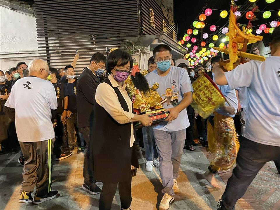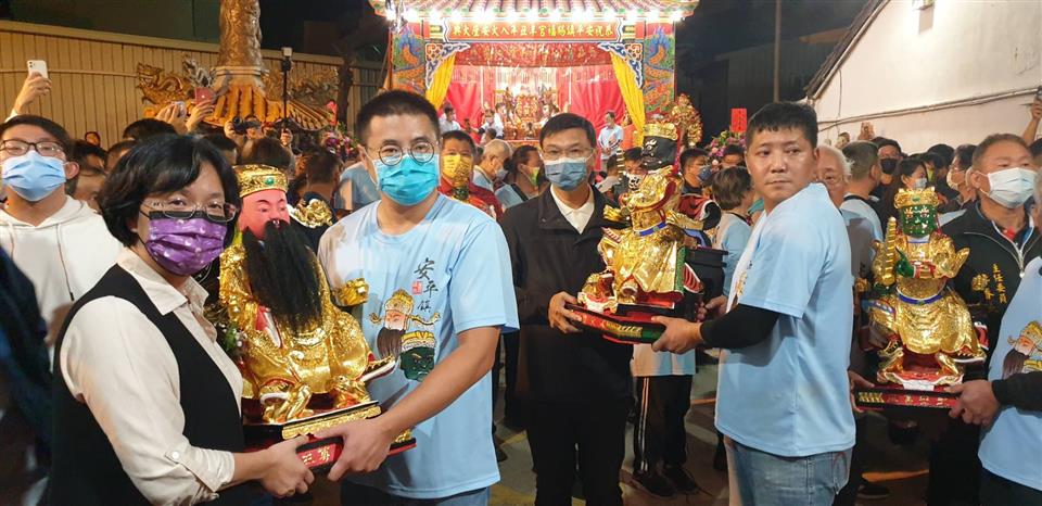 鹿港安平鎮賜福宮寺廟主建物屋頂、樑柱修繕工程,總經費172萬元,由文化局補助60萬元,其餘由廟方自籌,從前年11月開工至今年9月竣工,並於今(28)日奉祀主神之一的文安尊王聖誕千秋之日,在凌晨舉行完工暨入火安座儀式,縣長王惠美與會同慶,縣府強調執行老屋活化再利用補助計畫。光在鹿港鎮就已經有28案竣工,而延續的「千帆入港-再造鹿港歷史現場2.0」計畫正執行中,歡迎民眾踴躍申請。 文化局表示,彰化縣政府為保存地方傳統文化風貌,透過積極爭取文化部「再造歷史現場」計畫專案經費挹注,辦理「彰化縣鹿港鎮歷史老屋活化再利用補助計畫」,核定補助鹿港安平鎮賜福宮寺廟主建物屋頂樑柱修繕計畫,工項包含屋頂及屋脊整修、山牆整修及地坪整修等,在前(108)年11月23日開工,去(109)年8月16日舉行上樑儀式,於今(110)年9月15日執行完竣。配合地方信仰風俗,選在今日舉辦完工暨入火安座儀式。 文化局指出,早年鹿港聯外道路主要可分為南路、北路和東路,鹿港安平鎮賜福宮即是位於東路上的古老角頭「安平鎮」,在道光年間的《彰化縣志》中已可見「安平鎮」地名,原本的安平賜福宮由地方士紳創建於清嘉慶25 年(1820),明治 29 年(1896)安平鎮遭祝融肆虐,安平賜福宮也遭焚燬,現今建築主體為昭和 4 年(1929)由許廷臣、許塗、許貓江發起募捐,於原址重建。安平鎮賜福宮建物本體雖不具文資身分,但為鹿港地區少見尊祀文武尊王的廟宇,展現角頭廟與在地居民緊密人文歷史關係的文化特色。 文化局表示,鹿港安平鎮賜福宮奉祀的「文武尊王」為早年由移民跨海帶至鹿港,從武安尊王神像可見早年泉州系統作法雕製的工藝技術及鹿港粧佛工藝交織的歷史脈絡,此外,昭和 4 年(1929)重修時謙和商行所贈的「節重睢陽」匾也作為賜福宮與商行之間關係與人文脈絡的印記,具有相當的歷史意義,縣府於108年2月13日依文化資產保存法規定指定此兩項古物為本縣一般古物,也期待透過本次補助修繕工程的進行,改善廟內近年來漏水及結構疑慮,除了維護信眾參拜安全,也能讓廟中古物妥善保存。