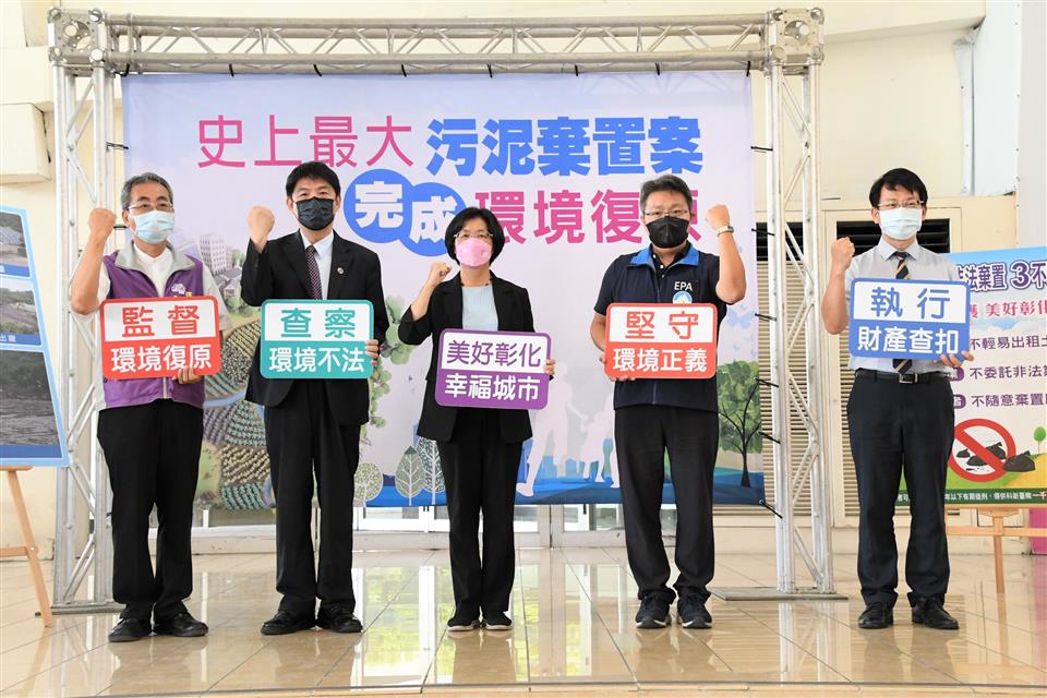 彰化縣政府聯合檢調偵破喧騰一時之冠昇環宇、同開科技、長信環保等三家知名廢棄物處理機構將未經合法處理的汙泥,輾轉外運至中部縣市棄置或回填,總數量逾14萬公噸一案,22日上午在縣府中庭宣告完成環境復原,縣長王惠美、臺灣彰化地方檢察署檢察長洪家原、環保署環境督察總隊中區環境督察副大隊長石秉鑫等人出席,相關被告經彰化地方法院判決,刑期最高者判處11年徒刑。其中二水鄉場址,被堆置之汙泥1萬餘公噸,經彰化縣環保局將清理義務人移送行政執行署扣押財產強制履行後,率先清完現場汙泥1萬4,100公噸,現場另來自其他產源的廢玻璃纖維125.69公噸也完成清理,相關被告付出慘痛代價,王縣長呼籲杜絕廢棄物非法棄置三不政策,地主不輕易出租土地、事業不委託非法業者、清除業者不隨意棄置廢棄物。請大家愛惜腳下的土地,一起維護環境,有發現任何環境的問題,請與環保局聯繫。 王縣長表示,近年來有許多不肖業者貪圖一時之便,隨意傾倒廢棄物於本縣沿海、山區或者是向不知情的鄉親承租廠房,惡意棄置,破壞彰化的環境,針對縣內多起重大事業廢棄物棄置案的查處,在此特別感謝彰化地檢署的大力協助,作為處理汙泥案很重要的支柱,從前些年的偷排電鍍廢水案,到近年來的食品汙泥案、廢木材案及無機汙泥案,地檢署是第一線執法人員最強而有力的後盾。另外,也特別感謝行政院環境保護署,跨區一路循線向上追查最大元凶,這些都是仰賴彰化縣檢、警、環平台多年合作的經驗傳承,才能屢屢偵破跨縣市的重大環保犯罪。 王縣長指出,本案最主要受汙染是在二水地區,約1萬多公噸的汙泥,透過檢、警、調、環等單位的聯合案件偵破後,還要讓非法者付出代價,面對刑責,清除處理廢棄物回復環境樣貌,是縣府更加重視的。此次經由行政程序清查其財產,迅速移送行政執行署桃園分署強制執行,查封名下動產及不動產,總值約1億1千500多萬元,迫使行為人積極清理,回復土地樣貌。 彰化地方檢察署檢察長洪家原表示,今天可以有機會說明史上最大的工業汙泥案,在限期清除之後,恢復土地正義,現在整個環保犯罪越來越平台化、企業化、結構化,所有的執法單位也不能單打獨鬥,一定要團隊合作,像這樣動員500多人,跨縣市搜索、查獲4萬公噸的汙泥,一定要靠大家的決策能力,在大家盡心盡力之下,起訴了30多人,除了3家廢棄物處理機構之外,也將中下游業者一併查獲,起訴了近10家公司,依其犯罪,一審分別判決11年有期徒刑不等,可說是重罪,不單如此,本案除了警政協力,還有3個重要意義,第一點,追查犯罪不法所得不遺餘力,在這個案子除了重判之外,也追查2億6千多萬犯罪不法所得,連同罰金、支付公款共約有3億7千多萬元;第二點,在強力要求及縣府假扣押行政訴訟的壓力之下,業者限期清除二水1萬4,100公噸的廢棄物品,還給土地正義,今天如果行為人不負起責任,國庫可能需要支付1億4千多萬清理廢棄物,因此節省了這筆花費;第三點,其實全國存在很多假的環保團體,行廢棄之實,這個案子,3家業者甚至有的是上市公司,但他們卻違反廢棄物清理法的規定,主要就是為了牟取不法暴利,未來如何防堵這樣的漏洞,仍有待各單位共同努力及法規修訂。 彰化地方檢察署檢察長洪家原指出,透過這個案件也告訴各界業者,檢察、警察、調查站、環保、稅務機關單位持續關注,並進行查辦,民眾不要存有僥倖心理,最後,再次感謝所有參加團隊的人員,此次也彰顯了彰化的國土偵辦團隊達成了環境正義的要求,達到警惕不法人士不敢再進行違法行為的效果,地檢署會繼續努力,再創佳績,維護環境的正義。 環保署環境督察總隊中區環境督察副大隊長石秉鑫表示,非常感謝王縣長帶領的縣府團隊與彰化地檢署洪家原檢察長帶領的檢調團隊與環保署共同破獲史上最大的史上最大汙泥棄置案,未來將持續與縣府團隊及彰化地檢署合作,持續打擊環境犯罪。 環保局表示,二水鄉遭棄置汙泥案,107年因彰化環保局接獲民眾檢舉,指稱二水某砂石場堆置物發出惡臭,經環保局發現有異並即通報「檢警環查緝國土犯罪聯合小組」平台,由彰化地檢署組成專業小組,由王銘仁主任檢察官及李秀玲檢察官指揮調度中央與地方之環保、警察、調查站、稅務機關等龐大的人力物力跟監、搜索、抽絲剝繭比對資料。歷經18個月蒐證,發動30餘次偵查與搜索,發現同開科技、冠昇環宇及長信環保公司3家廢棄物處理業者,收受國內多家知名電子、精密機械、塑膠廠委託清理的事業廢棄物,為節省成本及紓解廠內堆置量,將收受之汙泥未依許可內容添加相關配比物料後,即以「人工粒料」名義透過清運業者,傾倒在大安溪、濁水溪等河川及農地,棄置地點遍布中部地區包括苗栗縣、台中市、南投縣、雲林縣及彰化縣5個縣市,不法獲利所得逾6億元。其中二水鄉場址,棄置數量高達1萬3,355公噸,該地承租人甚至伺機混合場址內其他廢棄物外運至南投、雲林縣回填或棄置。 案經司法機關偵辦起訴後,去年11月底彰化地方法院依相關被告犯罪情節輕重判刑,刑期最高者達11年徒刑。相關被告最高被處750萬元罰金、公司最高被處罰金1,700萬元,被追繳犯罪所得最高者4,444萬餘元。彰化縣環保局在確認無證據保全必要後,立即依據廢棄物清理法第71條規定責請清理義務人限期清除,並在去年9月間移送法務部行政執行署扣押財產強制執