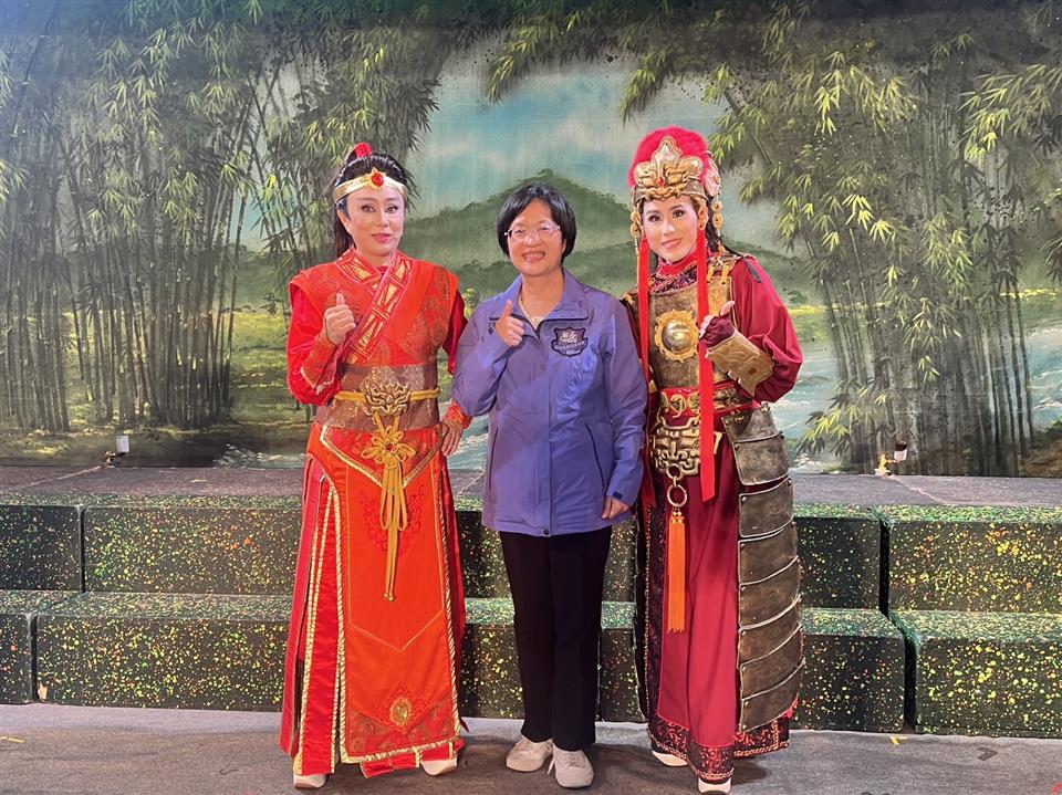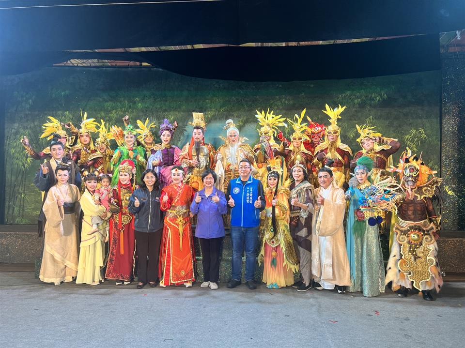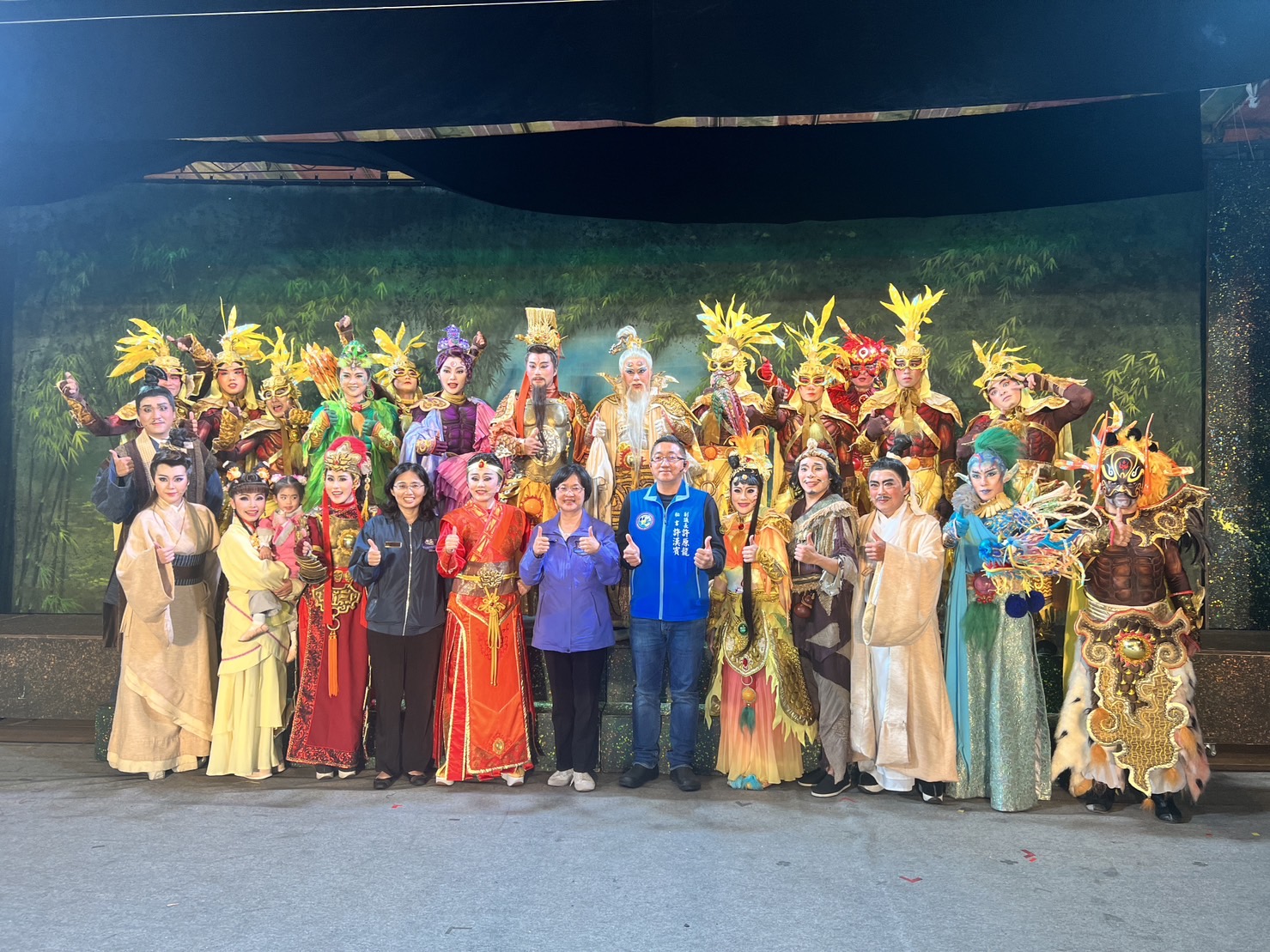 「建縣三百大放藝彩-鄉鎮藝術巡演」活動,今年再度在彰化八大生活圈規劃八場精彩的表演活動,前四場已分別在社頭、北斗、和美、溪湖演出,第五場次於今(3/25)日晚間在彰化市陽明運動公園,由傳統藝術重量級演出團隊「明華園戲劇總團」帶來《蓬萊仙島漢鍾離》,這齣穿越千年時空的史詩級大戲從未在戶外演出過,明華園總團為慶賀彰化建縣三百年特別獻出戶外首演,邀請民眾共享,縣長王惠美也蒞臨欣賞。明華園總團以一級的陣容卡司,旗艦級的服裝與舞台特效,讓今晚來觀賞的民眾大飽眼福。 明華園戲劇總團創立迄今九十四年,是台灣歷史悠久的歌仔戲團,讓本土歌仔戲站上國際舞台,演出遍及世界五大洲。以親切活潑的表演方式、活潑奔放的演出形態,搭配瑰麗壯闊、氣勢磅礡的舞台,打造魔幻絢麗的東方音樂劇場,顛覆了傳統戲曲的刻板印象,將歌仔戲加以創新及精緻化,可謂國內傳統藝術表演團體的第一品牌。 《蓬萊仙島-漢鍾離》是一齣波瀾壯闊的史詩大戲,以高規格的奇幻舞台再現,闡述著穿梭千年的神鬼交鋒。無敵小生孫翠鳳更在劇中由凡人化為人面獸身的「半獸人」,身著超過二十公斤的行頭與敵人對戰,挑戰超高難度演出。這部戲展現了明華園總團的傳承軟實力,不僅在視覺上呈現魔幻瑰麗的舞臺氛圍,就連演員們身上的服裝也是特別華麗精緻,是明華園特別請來北京奧運的服裝設計師-李銳丁操刀設計,而劇中氣勢磅礴的閱兵大典也是一大亮點。此外,本劇更呼應明華園其他八仙系列劇作,穿插描繪首位成仙的李鐵拐登上蓬萊後的景況,卻是完全顛覆眾人的想像。《蓬萊仙島-漢鍾離》出動高規格的服裝布景道具設備,動員明華園藝術家族二、三、四代與新生代菁英聯合演出,彰化民眾齊聚彰化陽明運動公園,一起為這場史詩鉅作的戶外首演歡喜開箱。 慶賀彰化今年建縣滿三百年,彰化縣政府擴大規劃民眾的藝文生活,鄉鎮藝術巡演還有3個場次,3/26(日)下午3:00在二林鎮圖書館演藝廳有彰化子弟徐崇育&Jazz superme爵士樂團《大河精神》的演出;4/3(一)清明假期晚間7:30在鹿港鎮立體育場有民歌演場會,將會看到于台煙、凃佩岑、羅吉鎮、葉佳修、王海玲以及潘越雲等精彩演出,另為回應歌迷的殷殷期待,文化局特別於鹿港場加碼安排施孝榮演唱;4/23(日)晚間7:30在員林市圓林園還有身聲劇場帶來《希望之翼》高蹺舞蹈表演,內容豐富精采,所有場次免票入場,歡迎鄉親屆時一同共襄盛舉。 與會貴賓有立法委員黃秀芳、彰化市長林世賢、副議長許原龍辦公室秘書許漢賓、文化局長張雀芬、彰化縣職業總工會理事長許川林、光復里長湯惠釧、興北里長劉朱英眉、地方仕紳及民意代表等。