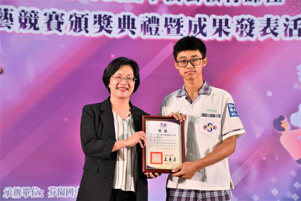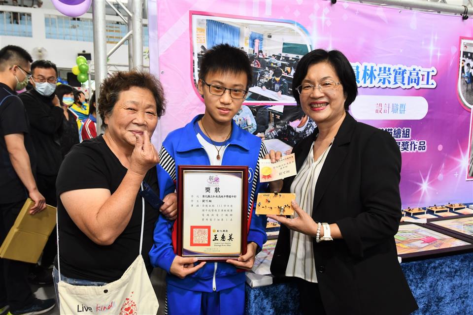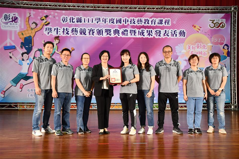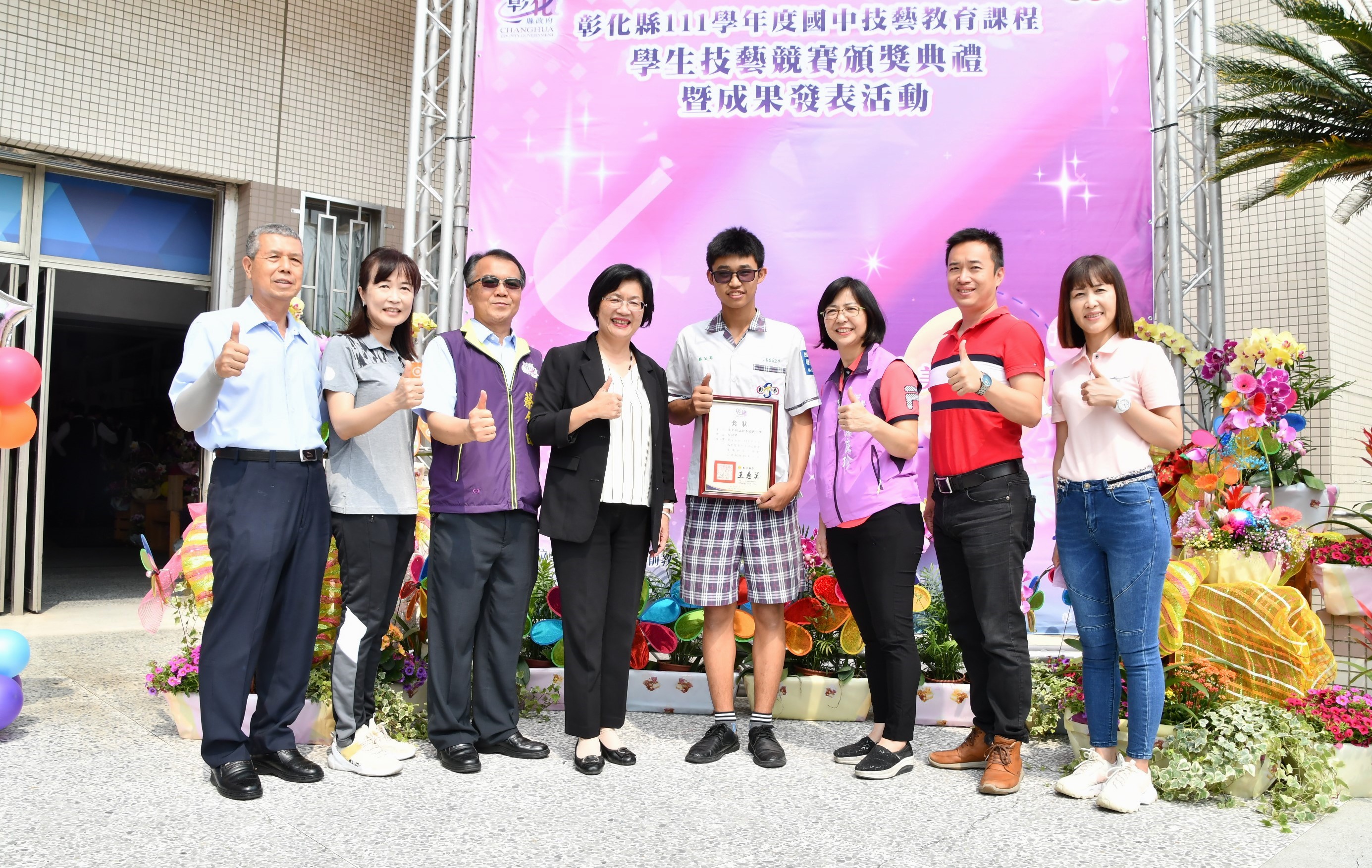 彰化縣111學年度國中技藝教育課程學生技藝競賽頒獎典禮暨成果發表活動,今(13)日上午在社頭國中活動中心舉辦,彰化縣長王惠美與會表揚,王縣長表示,恭喜得奬的185位傑出同學,在彰化縣111學年度技藝競賽中,分為12職群,37組來競賽,得獎的同學從2,500位參賽同學中,脫穎而出,相當不容易,特別感謝開辦技藝教育學校,以及13所高中職予以指導,還有學校校長、老師對技職教育的推廣及支持,讓彰化的國中小學生,在縣內就能接受到技職訓練,從「做中學」、「學中做」,務實致用,比別人更早瞭解到自己的興趣與能力,進而接觸到技藝課程,不僅對於未來的求學、求職是非常重要的助力,也能及早培育專業人才。 王縣長表示,彰化縣目前在彰安、大同及原斗國中小,設立三間職探中心,積極辦理職業試探體驗課程,在111學年度規劃辦理240場,約提供5,000位學生參加課程,讓孩子們及早打下良好的基礎,透過職業試探體驗課程,瞭解自己未來的方向,縣府也會繼續推動技職教育,向上延伸、向下扎根,讓孩子們有更好的發展,為地方、社會培育出更好的人才。 教育處表示,室內配線組第一名彰泰國中蔡佑昇同學,國三參加技藝課程,平時認真上課之外,也利用假日時間繼續學習技術,遇到困難時也主動請教老師及身為水電師傅的父親來教導,讓他能克服困難獲得好成績;佑昇亦努力參加勞動部全國技能競賽中區分賽,獲得電氣裝配職類第一名的優異表現,未來將代表彰化縣參加第53屆全國技能競賽青少年組,與全國優秀選手角逐全國第一。 教育處指出,活動現場展示技藝班靜態作品展與辦理動態體驗活動,並結合各技術型高中、勞工處、學生輔導諮商中心、彰安職探中心、樂活襪之鄉博物館、芬園鄉農會以及勞動部勞動力發展署中彰投分署辦理等多元活動,讓大家動手體驗職群實作課程,讓參加學生與來賓更了解本縣推動技藝教育成果。另外,國中技藝課程讓國三同學有一學年時間到技術型高中體驗2個職群課程,學習基礎知識跟技能,透過動手做的學習活動讓學生找到自己的興趣與能力,提升興趣跟自信心,協助未來選擇就讀的學校及科系。 與會貴賓還有縣議員蕭妤亘、鄭俊雄、社頭鄉長蕭浚二、社頭鄉民代表會主席陳慶福、社頭鄉農會總幹事蕭良珍、芬園鄉農會總幹事黃翊愷、教育處長蔡金田,彰化縣各級學校家長會協會理事長黃榮輝、彰化縣各級學校家長會聯合會理事長黃筠婷、彰化縣親師家長協會理事長巫松昀、彰化縣教師會理事長方仁瑞、中彰投分署TCN創客基地經理賴碧棻、各級民意代表與地方仕紳等。 備註: ◎本縣111學年國中競賽第一名37位同學有: 機械職群車床工組秀水國中李秉諺、鉗工組秀水國中陳嘉佑、機械製圖組彰泰國中蘇宗和、電腦輔助製造組花壇國中林聖哲、機電整合組大同國中蕭暉諺、鑄造組彰安國中林侑維;動力機械職群機車修護組大村國中江均柔、汽車修護組信義國中小楊忻諺、飛機修護組大村國中黃忠翔;電機與電子職群工業配線組秀水國中陳柏皓、室內配線組彰泰國中蔡佑昇、實用電子組和美高中(國中部)劉可翔、資訊應用組彰興國中吳岳穎、家庭電器維修組埔心國中劉柏鑫;土木與建築職群木工組秀水國中林威同、泥水工砌磚組溪湖國中施陳彥宇、建築製圖組芬園國中蕭瑀嫻;化工職群大同國中吳庭瑜;商業與管理職群中英文文書處理組花壇國中張毓香、商業記帳組二林高中(國中部)洪浚睿;設計職群基礎描繪組明倫國中蕭育中、空間設計組明倫國中王宣筑、視覺傳達組陽明國中陳淯蓁、流行飾品製作組明倫國中李妗娟、多媒體動畫組田中高中(國中部)林洧丞;農業職群農藝技術組大同國中楊濠澤、園藝技術組大同國中劉芷妘、畜產保健組明倫國中林承漢;食品職群中式麵食組芬園國中許語喬;家政職群美容美髮組田中高中(國中部)蔡雅榛、中餐製作組溪陽國中蔡宜欣、幼兒保育組溪陽國中廖芊瑄、服飾製作組萬興國中朱家嫻;餐旅職群烘焙組伸港國中王宥程、觀光組員林國中江珈君;水產職群鹿港國中黃志文、漆作裝潢組鹿港國中張朝程。 ◎111學年開辦技藝教育學校(21校感謝狀): 國立秀水高級工業職業學校、國立彰化師範大學附屬高級工業職業學校、彰化縣私立大慶高級商工職業學校、國立員林崇實高級工業職業學校、彰化縣私立達德高級商工職業學校、國立二林高級工商職業學校、國立彰化高級商業職業學校、國立北斗高級家事商業職業學校、國立員林高級農工職業學校、國立員林高級家事商業職業學校、國立永靖高級工業職業學校、臺中市明台高級中學、國立鹿港高級中學、彰化縣立和群國民中學、彰化縣立彰德國民中學、彰化縣立鹿鳴國民中學、彰化縣立伸港國民中學、彰化縣立鹿港國民中學、彰化縣立芳苑國民中學、彰化縣立萬興國民中學、彰化縣立大城國民中學。 ◎111學年承辦技藝競賽及成果展學校(2校感謝狀): 彰化縣立芬園國民中學、彰化縣立社頭國民中學。