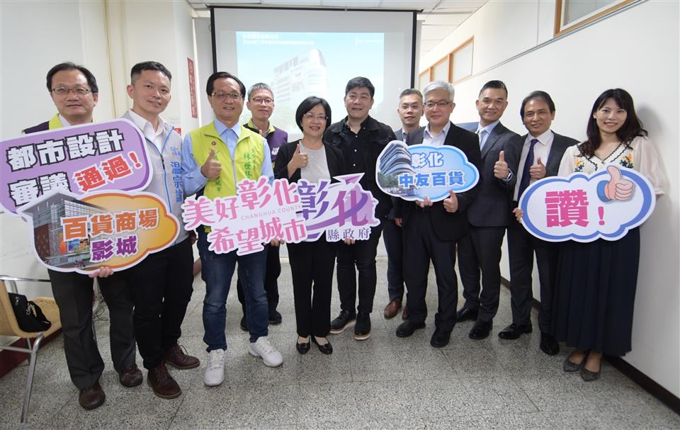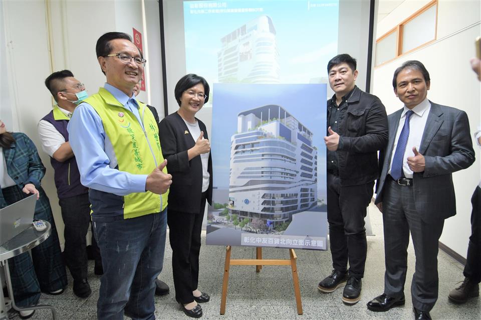 中友百貨為彰化市第一間百貨公司,建築執照於4月20日核准,於今(27)日上午在縣府6樓新聞處咖啡藝廊辦理中友百貨都市設計宣傳記者會,彰化縣長王惠美、彰化市長林世賢、益彰股份有限公司總經理劉嘉誠等人與會,由三門聯合建築師事務所副總李式斌簡報,正式揭曉建築立面設計,將打造地下4層、地上21層百貨商場與停車場共構大樓,整體建築外觀以白色系為主色調,結合蝴蝶翩翩飛舞的意象,期望打造彰化第一座地標式建築。 王縣長表示,之前聽到傳聞說縣長選舉結束後,中友百貨公司就沒有了,事實上並不是如此,彰化建縣300年,好不容易迎來第一間百貨公司,大家都很期待,雖然還有很多行政程序正在積極進行,縣府團隊對於在提交審查、建照等各方面,給予大力協助,終於在4月20日中友拿到建照,後續期待盡速處理五大管線的部分,再進入正式動工,本案目前總投資額增列到43億,預計打造地下4層、地上21層大樓,未來將變成彰化市的新地標,最重要的是感謝公司願意配合將整個基地往內縮,同時認養鄰近的成功公園,未來整體區域會變成休閒、採購很好的場域,也相信能夠提供更多工作機會給青年朋友,創造出更多產值,讓彰化的鄉親更加幸福。 益彰股份公司總經理劉嘉誠表示,感謝王惠美縣長縣府團隊對這個建案的支持,在建管或建照申請上給予大力支持與協助,也感謝市公所對本案的大力推動,目前將盡速完成開工前準備文件,也希望縣府持續協助,完成審查,希望能盡速開幕,為廣大彰化縣民服務。 益彰股份公司發言人王勝豐副店長表示,本案預計下個月準備圍籬,希望能夠在上半年動工,總投資金額為43億,目標也是大家最期待的,預計將在民國115年底前開幕。 彰化市長林世賢表示,這是縣市合作的成果,也是最佳典範,感謝王惠美縣長縣府團隊很快通過建照,期待中友能夠快速蓋好,未來將是彰化的新地標,感謝彰化縣政府的幫忙,讓彰化更好更進步。 建設處表示,彰化市第二停車場(停五)基地面積7109平方公尺,計畫興建地上21層、地下4層,一幢一棟建築物,總高度達84.7公尺,結構系統採鋼骨結構,為停車場共構百貨商場設計。建物北側於B2F~11F分別設有商場、餐飲場所及展場空間,另於12F~15F規劃電影院。南側於B1F~B4F規劃1200輛機車停車位,8F以上規劃700輛汽車停車位,將可紓解鄰近商圈停車位不足問題。 建設處表示,彰化中友百貨的建築外觀設計以白色系為主,以簡潔純粹及環繞向上的線條展現現代建築風格。同時結合外環車道設計,立面開窗及線條切割以蝴蝶翅膀意象形塑,也象徵彰化市的蛻變與重生。交通動線上,本案汽車動線採單向進出,以長緩坡繞行建築外圍方式,約一圈距離即可抵達8F停車層,減少車輛繞行而上的不適感,是設計的一大巧思。 建設處表示,中友百貨是彰化第一座經過BOT規劃設計的地標式建築,因此縣府團隊高度重視,於交通、都市設計及建築方面給予最大的協助,交評都審與建照同步審查,交評2月17日通過後,都審隨即於今年4月14日核定,並同步於 6日內完成核發建築執照,顯示縣府推動本案的決心。全案採人車動線分離設計,除要求完善交通動線安排及管制措施外,以25公尺旭光西路為主要入口,退縮留設寬達10公尺人行開放空間,並要求認養東側成功公園,延續整體鋪面與景觀規劃,提供未來舉辦各項表演活動、主題市集的休閒場域。 與會貴賓有彰化市長林世賢、益彰股份有限公司總經理劉嘉誠、經理簡聰政、王勝豐、襄理彭士倫、媒體公關陳彥雯、專員劉美雅、王道銀行協理張子文、資深經理鄭筱儒、三門聯合建築師事務所副總李式斌、經理康庭彰、建設處長劉玉平、新聞處長李俊德、交通處代理處長許俊宏、各級民意代表與地方仕紳等。