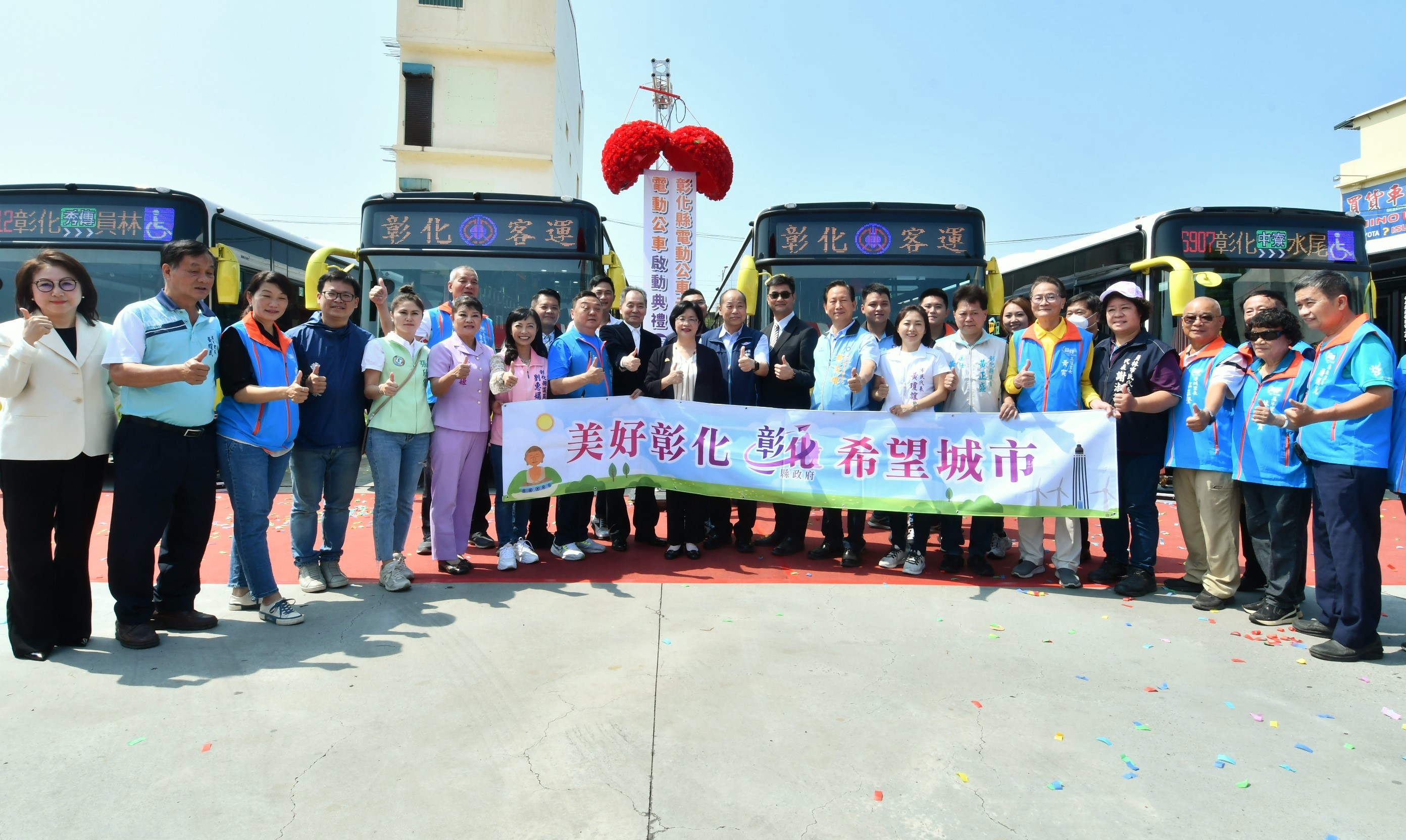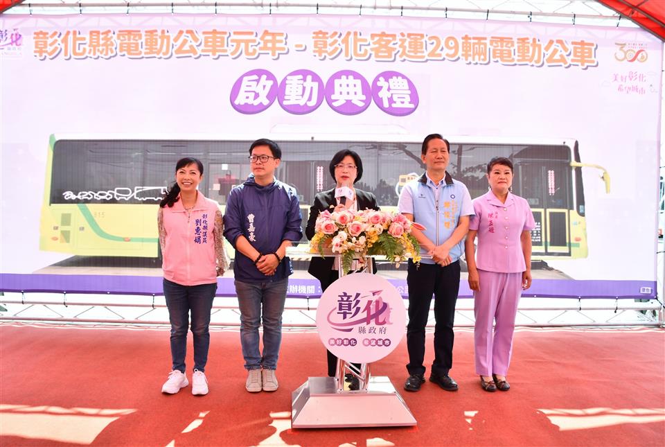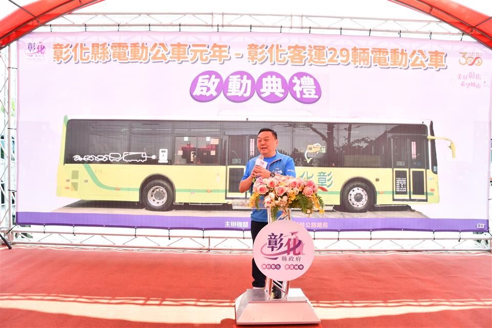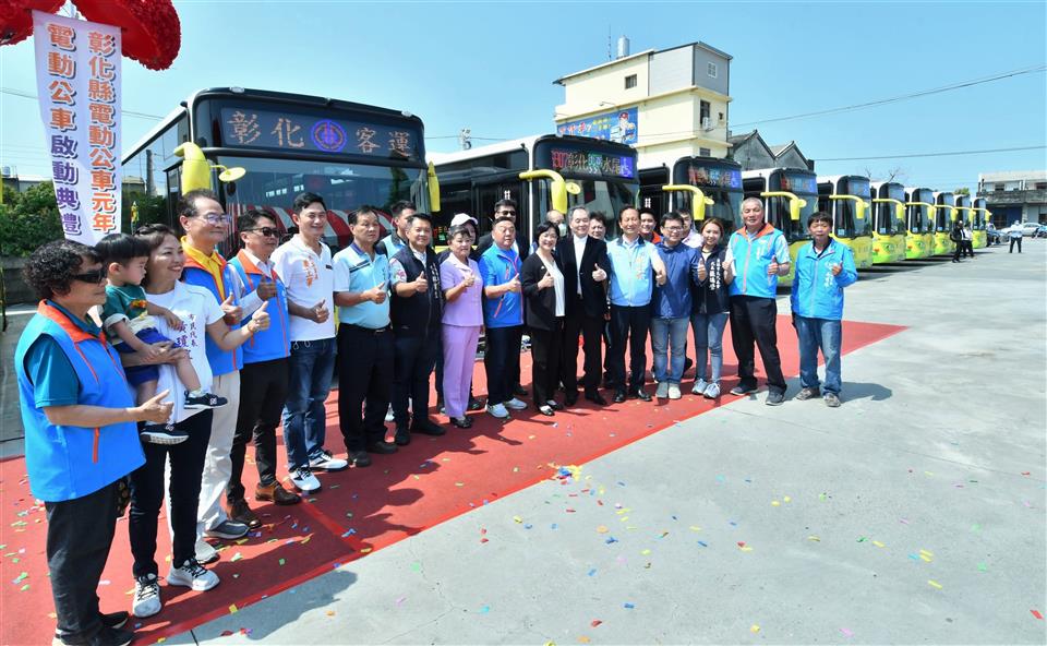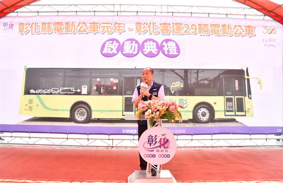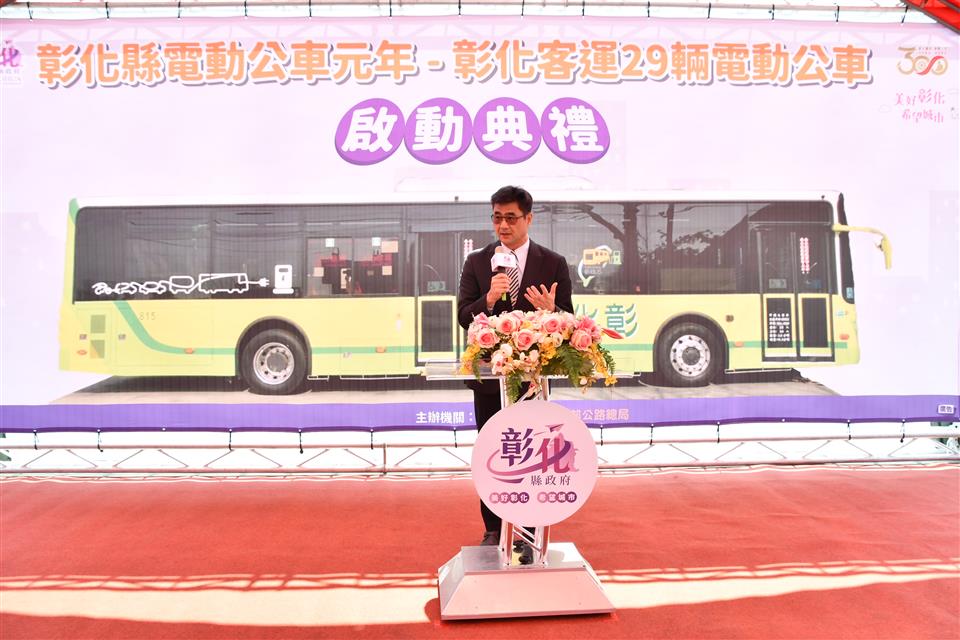 彰化縣建縣300年,28日上午在彰化客運員林站辦理電動公車啟動典禮,彰化縣長王惠美、交通部公路總局臺中區監理所所長楊聰賢、彰化汽車客運股份有限公司董事長黃錦椿、成運汽車製造股份有限公司董事長吳定發、員林市長游振雄等人與議員、民代與會,王縣長表示,今年可說是彰化縣的電動公車元年,縣政府協助縣內客運業者向交通部公路總局爭取補助購置電動公車34輛,彰化客運公司獲中央補助2億300萬元,自行負擔9541萬元,合計2億9841萬元,向成運汽車製造股份有限公司採購29輛電動公車,加上今年2月7日,員林客運啟動2部電動巴士從員林經過溪湖到二林,彰化開始有電動公車上路之後,目前彰化縣已有31輛電動公車,上路服務鄉親,電動公車不僅減輕環境汙染,啟動後非常安靜,沒有噪音,全面提升公車更好的服務品質,歡迎縣民朋友多加使用。