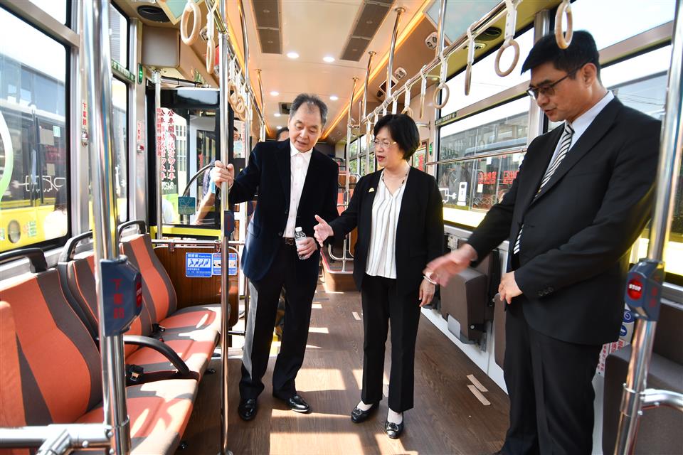 交通處表示,電動公車為增加駕駛安全性,有許多特性,包括增加防瞌睡系統、具駕駛人身份識別之數位式行車紀錄器、環景(全週)顯示系統、酒精鎖、盲點警示系統(BLIS)、胎壓偵測系統(TPMS)、車道偏離警示輔助系統(LDWS)等七大安全警示系統,可有效保障整體安全性。電動公車也是無障礙低底盤公車,方便高齡族群及身障民眾使用,創造友善且平權的公共運輸環境。