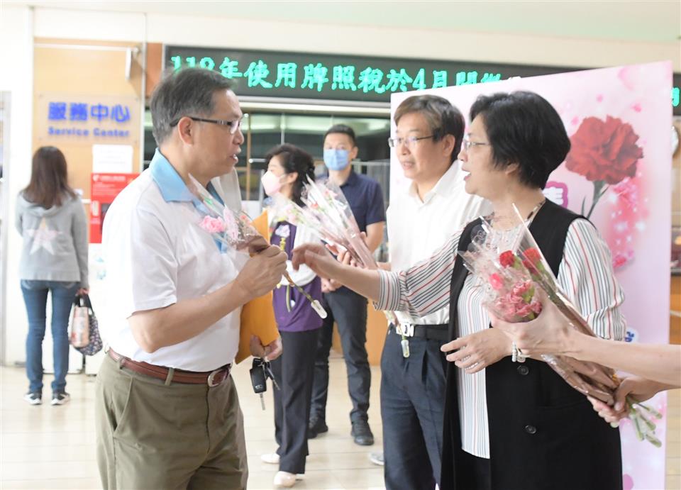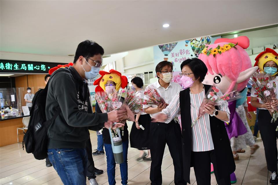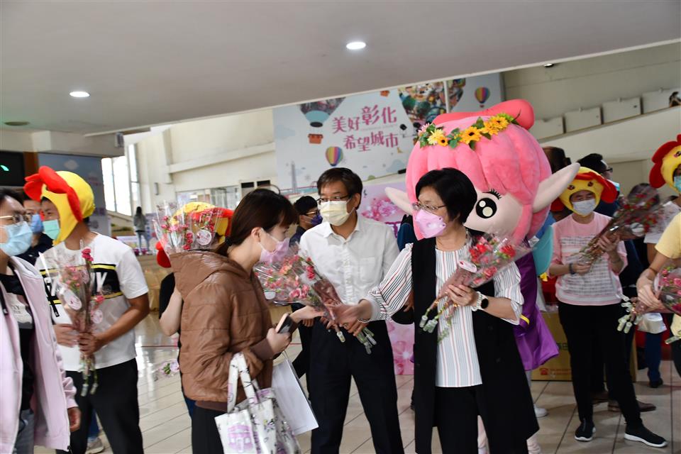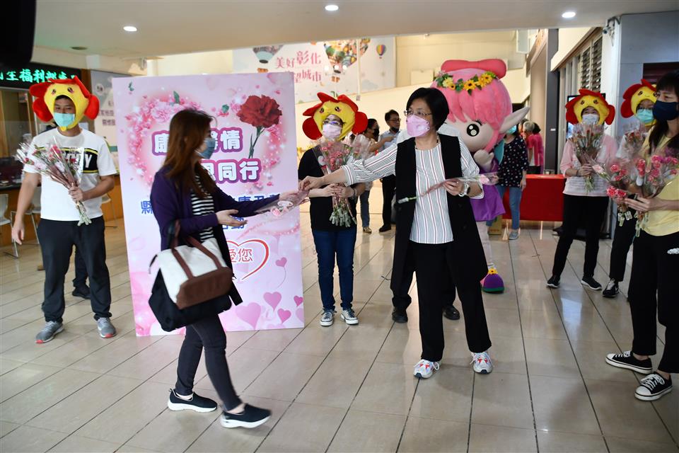 在母親節前夕,為感謝天下媽媽的辛勞,同時藉此行銷彰化在地優質花卉,彰化縣長王惠美特別在11日一早準備彰化在地生產的康乃馨,偕同本縣吉祥物花仙子,於縣府一樓側門分贈前來上班的縣府員工或洽公民眾,分享好馨情並祝福所有媽媽們母親節快樂。此次活動除了表達感謝之外,也期盼能夠提升同仁之間的凝聚力,加強溝通與互動。 王縣長表示,母親節即將來臨,祝天下的媽媽「母親節快樂」。彰化縣是康乃馨的最大產地,佔全國總面積90%,可以藉由花卉來傳達對媽媽的感謝。愛要即時,記得買個花,或者請媽媽吃個飯,表達一下謝意,多關心父母。此外,至9月30日前,還有為了顧及大家的健康,辦理做癌症篩檢送健康振興券的活動,最高可領到600元,記得帶媽媽一起做健檢,顧健康。 農業處表示,每種花都有花語,康乃馨代表的花語是「媽媽我愛您」,一束康乃馨,傳遞一份幸福與感謝,不僅能表達對母親的孝心,也能促銷彰化縣縣產花卉,期望讓廣大消費者了解國產康乃馨的優質與優美,讓我們用實際行動一起來支持農業及感謝媽咪,並藉由康乃馨對偉大的母親表達最大敬意與愛意,讓媽咪天天都有好馨情,讓美麗的花卉融入生活,使生活充滿幸福的味道。 「康乃馨情‧感恩同行」縣府快閃活動,為讓同仁在忙碌的工作中暫時放下繁瑣的工作,感受來自上級的關懷,提升工作滿意度,營造更加溫馨的工作氛圍,以更好地服務民眾,共同創造更美好的未來。