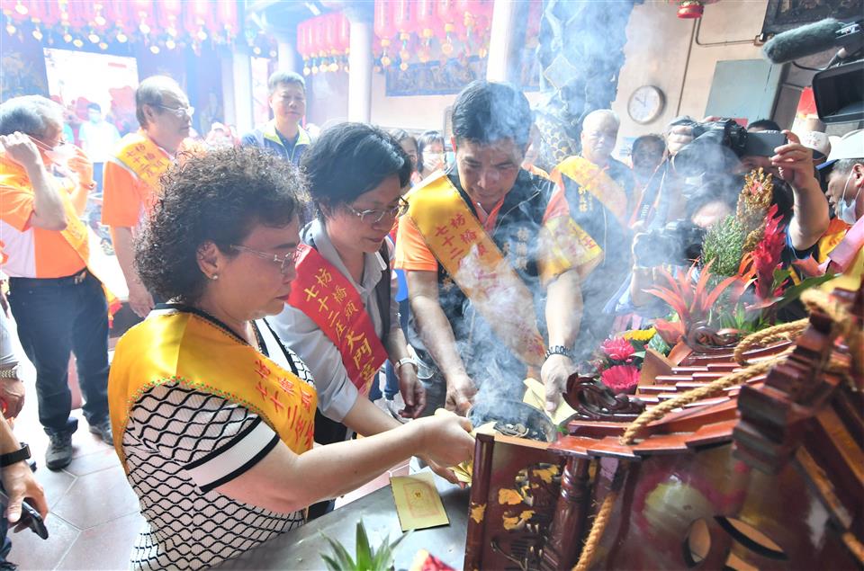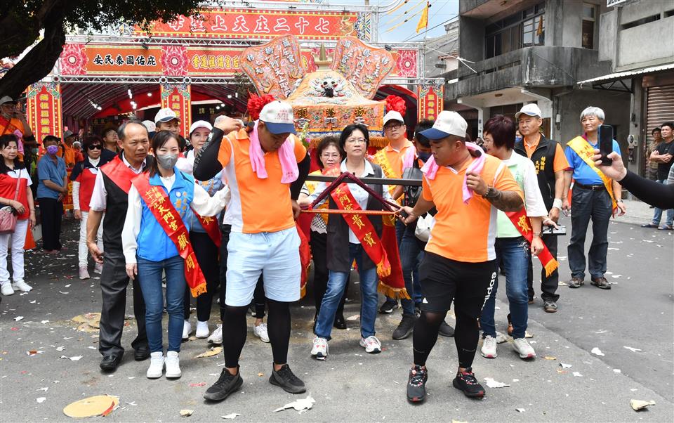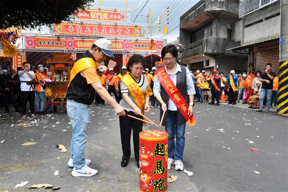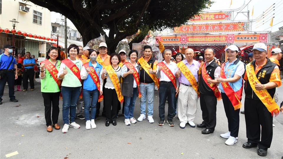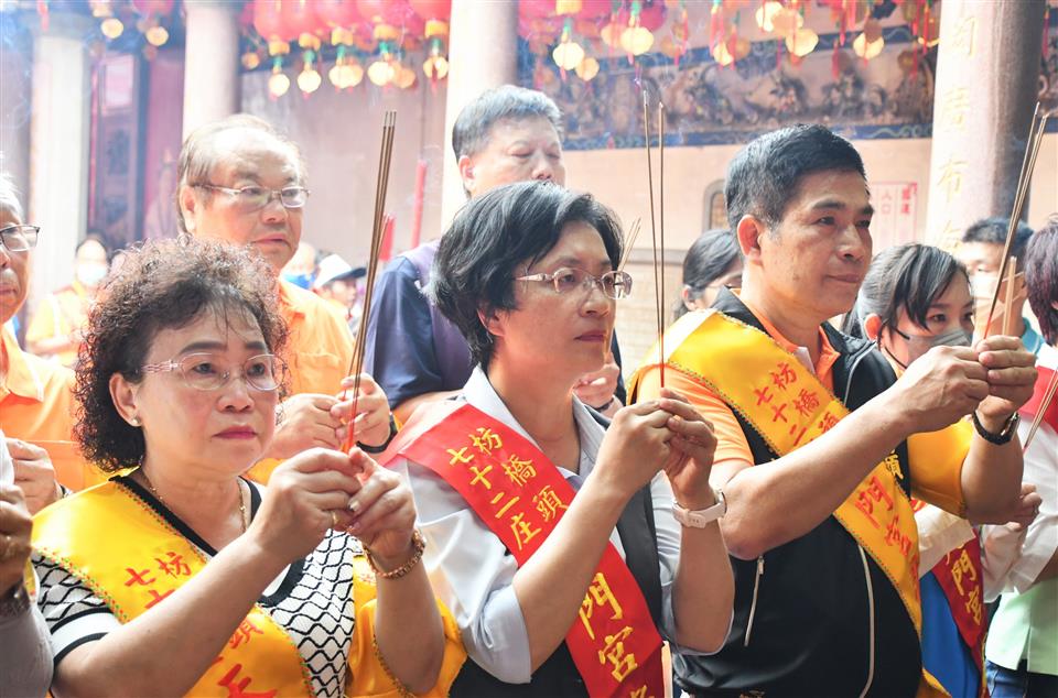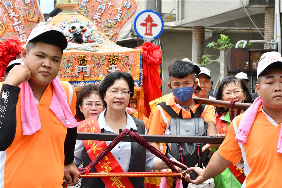 縣府支持並保存文化民俗活動,彰化縣無形文化資產「社頭枋橋頭七十二庄迓媽祖」,今(112)年原預計為連續進香第三年,去年因疫情延期,今年是110年起第2年進香,明(113)年是最後一年第3年謁祖進香。今(5/18)日中午12時在社頭枋橋頭天門宮舉行起駕儀式,由縣長王惠美與枋橋頭各庄庄頭代表恭迎天上聖母聖駕,展開跨9個鄉鎮、50多個宮廟聯合謁祖進香民俗活動。 「社頭枋橋頭七十二庄迓媽祖」歷史可追溯至清朝康熙年間,福建移民大量進入彰化平原開墾,多元族群及聚落開散,早期彰化地區因漳、泉、粵等族群械鬥不斷,粵家人為自保,乃聯合漳洲人籌組七十二聚落,擴大重建枋橋頭天后宮,旁建恭奉粵人守護神三山國王的鎮安宮,以示粵、漳之團結。 枋橋頭天后宮原先每隔十二年一次前往大陸湄洲祖廟進香,直到一次遇強颱致無法如期在媽祖生日之前回鑾,後為顧及安全,湄洲祖廟指示枋橋頭天后宮改往鹿港天后宮謁祖進香,鹿港天后宮也將一尊湄洲媽分靈至枋橋頭,光緒16年(西元1890年),為避免宮名重複乃改名為「枋橋頭天門宮」,並約定每隔12年前往鹿港天后宮謁祖進香,但為了讓信徒容易記,從民國80年起,改為每逢民國尾數為0的年,連3年至天后宮進香。 縣府致力保存傳統特色文化,「社頭枋橋頭七十二庄迓媽祖」民俗活動,於民國103年登錄縣級民俗類無形文化資產,傳承百餘年,延續傳統謁祖進香儀式,以庄聯形式祭祀,極具組織性之民俗活動,展現七十二聚落之間藉由共同信仰緊密連結。 與會貴賓有立法委員陳素月、縣議員詹琬惠、縣議員蕭妤亘、社頭鄉長蕭浚二、枋橋頭七十二庄大總理康素珠、枋橋頭天門宮主委劉清尊、鄭俊雄議員夫人田春蓮、縣政顧問陳俊成、文化局長張雀芬、民政處長賴致富、縣府秘書劉兆祐、社頭鄉民代表會主席陳慶福、地方仕紳及各級民意代表等。