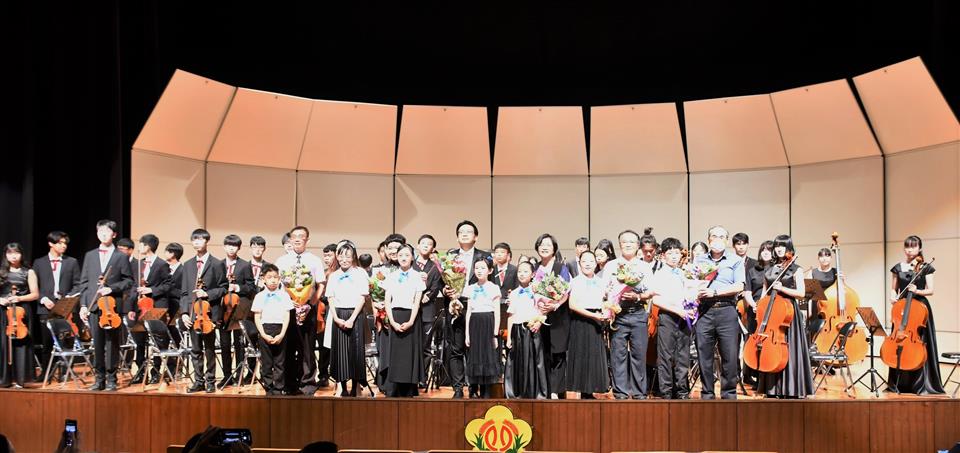 彰化縣政府所屬「彰化縣立青少年管弦樂團」暨「彰化縣立兒童弦樂團」,於今(28)日在彰化演藝廳舉辦112年度公演「嶄新的世界音樂會」。彰化縣長王惠美與會聆聽。歷經3年多疫情起伏的影響,即使曾因疫情而停止團練採線上練習,團員仍持續地精進、穩扎穩打,「嶄新的世界」象徵疫情雨過天晴,萬物蓬勃起飛,演出曲目以迪士尼動畫片阿拉丁發想,主角阿拉丁和茉莉在神奇的地毯上將會一起發現的新世界,適逢畢業季,也意寓畢業生嶄新的世界到來。 王縣長表示,彰化縣有青少年管弦樂團、兒童弦樂團,都是在南郭國小進行訓練,在每年暑假時間辦理選拔優秀團員,讓有天賦的孩子能夠加入樂團,這也是彰化縣音樂人才培育非常好的搖籃。特別感謝指揮、校長及師長們非常用心培育,讓孩子們都有最好的學習,近年來受疫情影響,沒辦法進行團練,於是透過網路進行相關訓練,讓孩子們持續不斷精進技巧,累積經驗。今天演出的水準非常高,主題是「嶄新的世界音樂會」,疫情過後,相信會是個嶄新的開始,現在正好是畢業季,表演內容也結合阿拉丁神話,象徵孩子們能夠坐著魔毯邁向新的世界。 王縣長表示,縣府與長榮交響樂團、國立臺灣交響樂團合作,兩弦樂團每年都會進行公演,透過人才訓練,期許他們以後可以像知名音樂家一樣有傑出成果,非常重要是感謝家長願意支持,因為有您們的支持才有這麼多優秀的孩子,縣府未來也會繼續努力做好銜接,讓有才能的孩子在舞台上發光發熱。 教育處表示,每次公演兩弦樂團都帶來嶄新、多元的曲目,「嶄新的世界音樂會」由兒童弦樂團揭開序幕,精心挑選慢板(拉赫曼尼諾夫)、航海(西邑由記子)、藍色迴旋曲(羅伯特•朗菲爾德)等經典樂章;再由青少年管弦樂團演奏魔笛序曲(莫札特)、阿拉丁(亞倫•孟肯)、斯拉夫舞曲第二號及第三號(德佛札克)、D 大調第 35 號交響曲第一樂章、第四樂章(莫札特)。藉由動人音符傳遞正向能量,展望美好的未來。 教育處表示,縣府於民國99年及100年陸續成立青少年管弦樂團與兒童弦樂團,並於每年暑假辦理團員甄選,提供喜好音樂的彰化學子學習成長的機會;獲錄取的團員只要備妥樂器,不需繳任何費用,即可在南郭國小優質的環境進行團練。兩弦樂團除了年度公演外,歷年來也擔任本縣多項大型活動展演,例如108年耶誕感恩音樂會、109年元旦升旗典禮、110年彰化囝仔好幸福活動及111年慶典音樂會,皆廣獲好評,積累了團員的演出經驗。 與會貴賓還有教育處長蔡金田、青少年管弦樂團指揮莊凱圍、兒童弦樂團指揮廖育萱、南郭國小校長王春堎、民生國小校長洪榮炎、副議長許原龍秘書許漢賓等人。