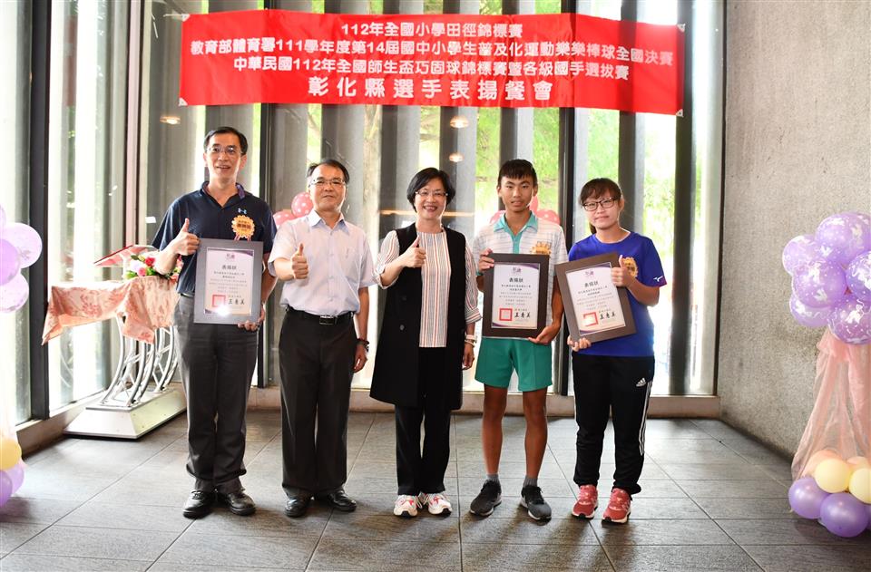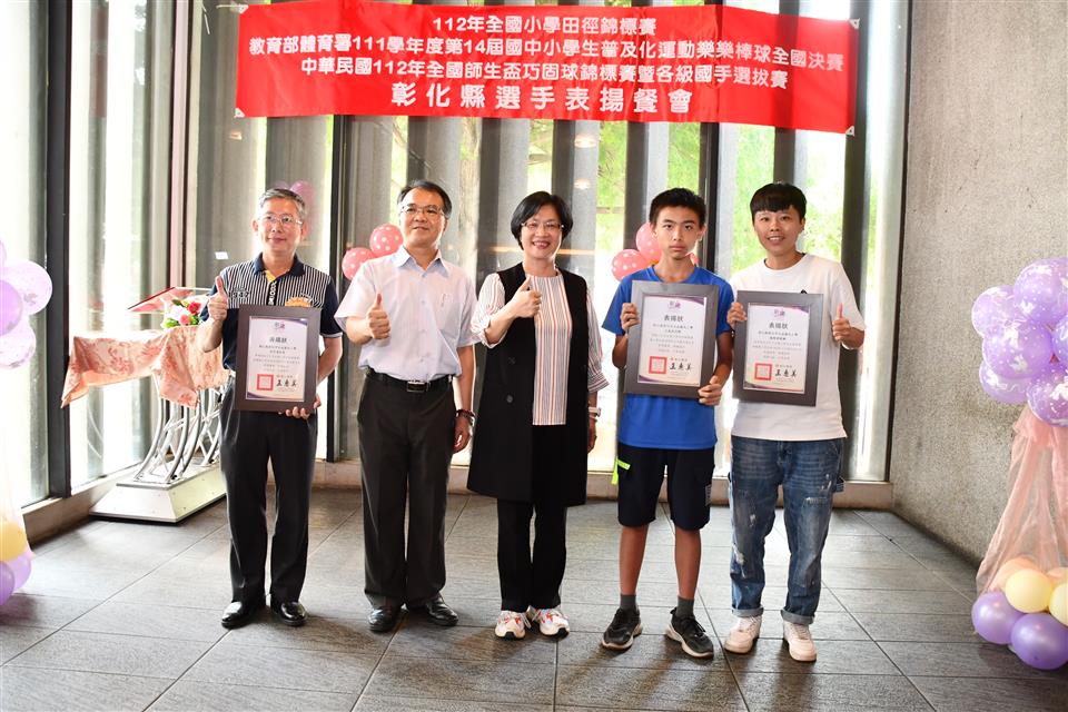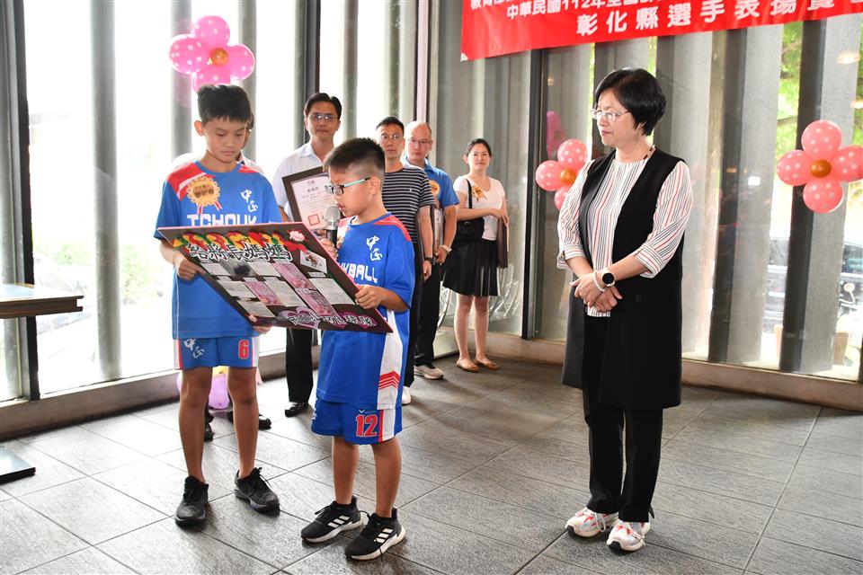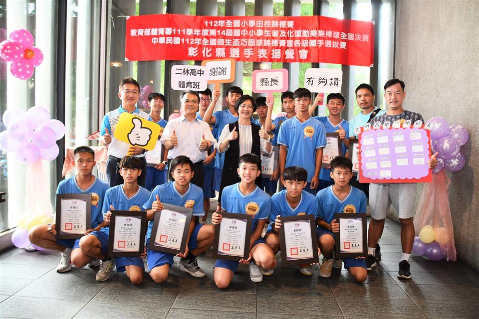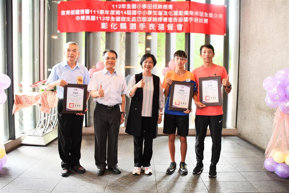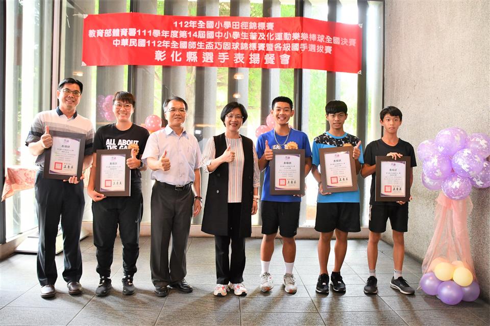 彰化縣國中小代表隊在三項全國賽事成績亮眼,一是「112年全國小學田徑錦標賽」榮獲1金2銅的佳績,在國小男生組總積分排名全國第三;二是「教育部體育署111學年度第14屆國中小學生普及化運動樂樂棒球全國決賽」頂番國小榮獲國小五年級組全國第二;三是「中華民國112年全國師生盃巧固球錦標賽暨各級國手選拔賽」田尾國小榮獲國小女生甲組冠軍,中正國小榮獲國小男生丁組亞軍以及二林高中榮獲國中男生甲組季軍,成績表現優異。為獎勵優秀國中小選手,彰化縣長王惠美於今(31)日中午邀請選手們在彰化市大象牛排館共進午餐,並勉勵選手再接再厲,持續努力精進,不斷自我超越,未來能有更亮眼的表現,為彰化爭光。 王縣長表示,感謝所有校長與老師們的用心,讓彰化囝仔有傑出的成績,在「112全國小學田徑錦標賽」勇奪1金2銅,由育英國小陳均愷在60公尺徑賽以7秒61跑出金牌,文開國小蔡瑋澄以14公尺92的成績在小男鉛球決賽擲出銅牌,伸仁國小陳宥嘉出賽小男全能項目榮獲銅牌,奪得佳績,彰化縣共11校13位選手榮獲各項目全國前八名,充分展現絕佳的運動天賦。 王縣長指出,另外,在「教育部體育署111學年度第14屆國中小學生普及化運動樂樂棒球全國決賽」睽違8年再度辦理全國決賽,頂番國小一路過關斬將,奮戰到冠亞軍戰,全班利用早自習、午休練習,寒暑假學長姐還返校擔任助理教練,得到全國第二並非偶然,學生們勤奮不懈的精神,令人感到佩服。還有,在「中華民國112年全國師生盃巧固球錦標賽暨各級國手選拔賽」也有優異表現,田尾國小榮獲國小女生甲組冠軍,即將赴新加坡參加「世界青少年巧固球錦標賽」,中正國小榮獲國小男生丁組亞軍以及二林高中榮獲國中男生甲組季軍,期勉選手們能將平時辛苦訓練成果充分展現出來,勇奪冠軍,為國爭光。 王縣長進一步指出,今天也傳來好消息,平和國小赴美參加「2023年美國加州盃國際曲棍球分齡錦標賽」再勇奪冠軍,達成四連霸。縣府未來將持續整合小學至大學的體育資源,讓體育選手能夠好好地在運動場上發光發熱,無論在升學或是職業選手生涯上,希望都能有更好的出路,感謝體育小將為彰化縣爭取到亮眼的成績,祝福所有選手能持續突破自我,再創佳績。 與會人員還有教育處長蔡金田、育英國小校長林振茂、文開國小校長詹雪梅、伸仁國小校長熊黛綾、信義國中小校長曹建文、大成國小校長吳宗達、員林國小校長蕭勝斌、埔鹽國小校長陳啟明、東芳國小校長陳錦廣、大榮國小校長胡慧嘉、田尾國小校長王錦鴻、中正國小校長謝鴻達、二林高中校長黃洲海、平和國小主任鐘詩瑩、頂番國小主任蘇淑君。