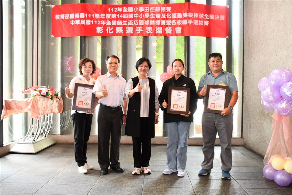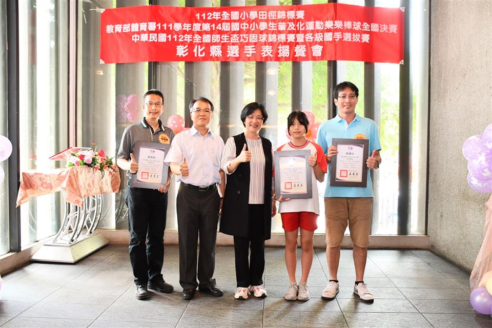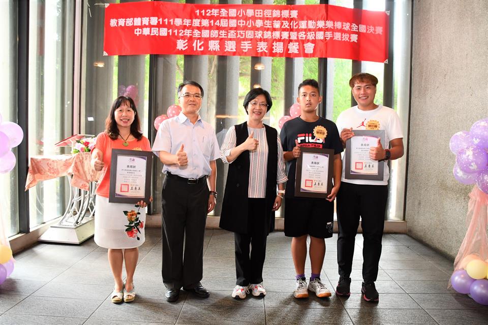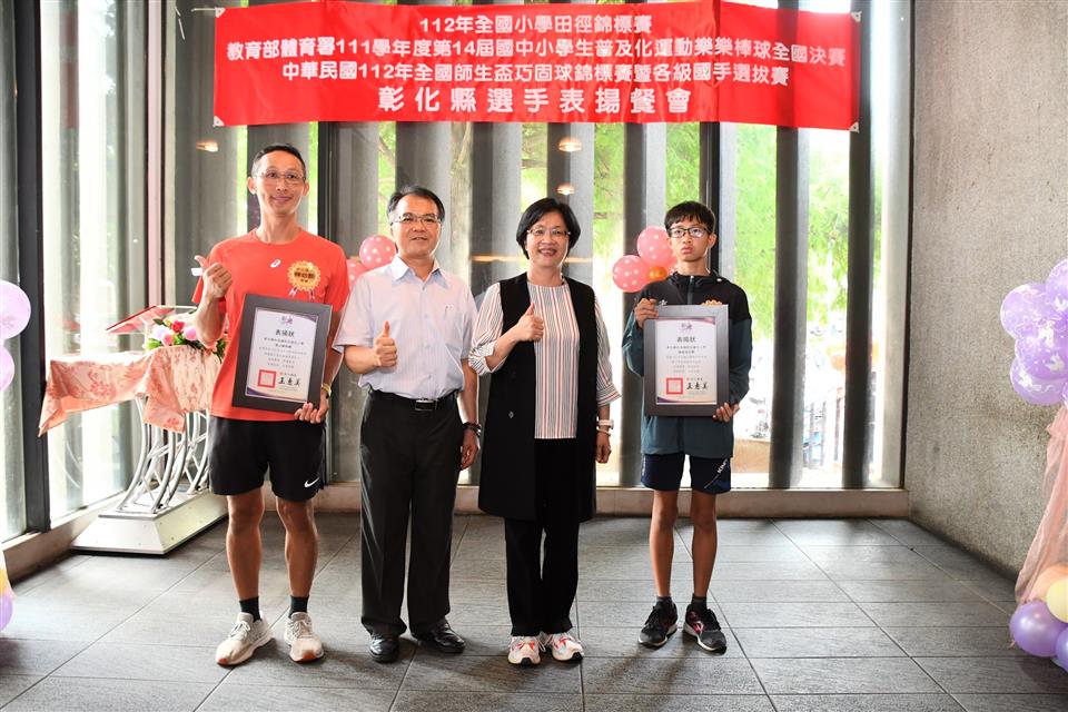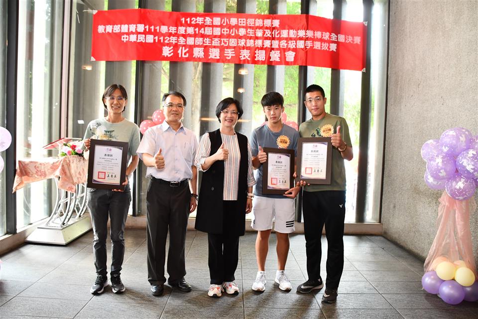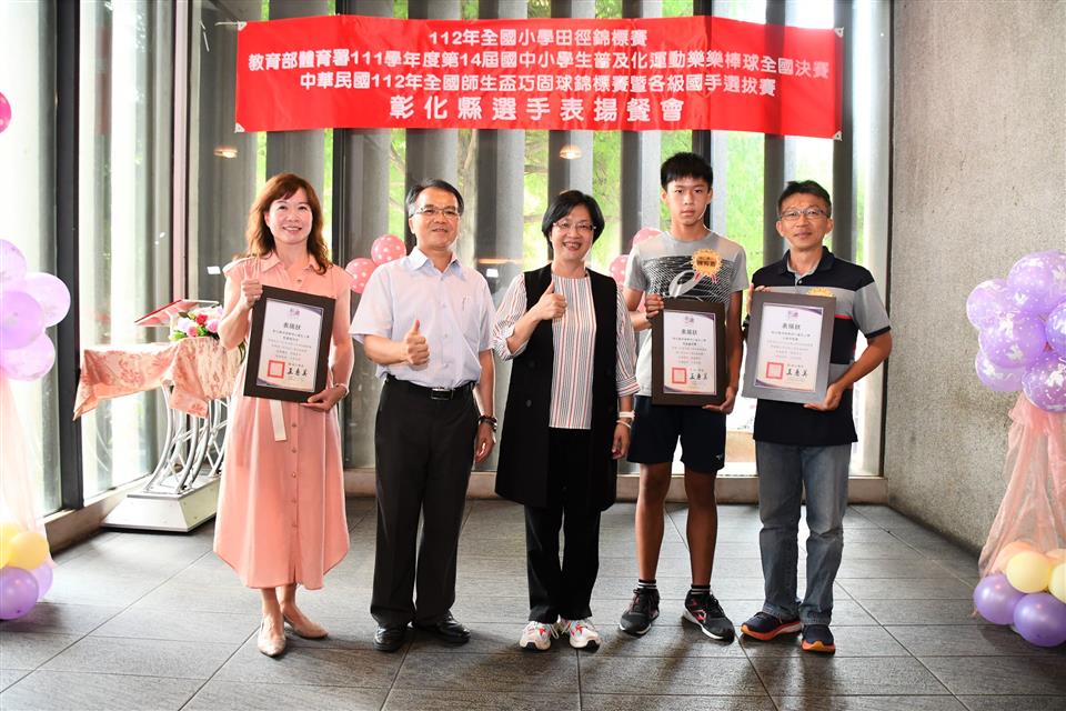 彰化縣國中小代表隊在三項全國賽事成績亮眼,一是「112年全國小學田徑錦標賽」榮獲1金2銅的佳績,在國小男生組總積分排名全國第三;二是「教育部體育署111學年度第14屆國中小學生普及化運動樂樂棒球全國決賽」頂番國小榮獲國小五年級組全國第二;三是「中華民國112年全國師生盃巧固球錦標賽暨各級國手選拔賽」田尾國小榮獲國小女生甲組冠軍,中正國小榮獲國小男生丁組亞軍以及二林高中榮獲國中男生甲組季軍,成績表現優異。為獎勵優秀國中小選手,彰化縣長王惠美於今(31)日中午邀請選手們在彰化市大象牛排館共進午餐,並勉勵選手再接再厲,持續努力精進,不斷自我超越,未來能有更亮眼的表現,為彰化爭光。 王縣長表示,感謝所有校長與老師們的用心,讓彰化囝仔有傑出的成績,在「112全國小學田徑錦標賽」勇奪1金2銅,由育英國小陳均愷在60公尺徑賽以7秒61跑出金牌,文開國小蔡瑋澄以14公尺92的成績在小男鉛球決賽擲出銅牌,伸仁國小陳宥嘉出賽小男全能項目榮獲銅牌,奪得佳績,彰化縣共11校13位選手榮獲各項目全國前八名,充分展現絕佳的運動天賦。 王縣長指出,另外,在「教育部體育署111學年度第14屆國中小學生普及化運動樂樂棒球全國決賽」睽違8年再度辦理全國決賽,頂番國小一路過關斬將,奮戰到冠亞軍戰,全班利用早自習、午休練習,寒暑假學長姐還返校擔任助理教練,得到全國第二並非偶然,學生們勤奮不懈的精神,令人感到佩服。還有,在「中華民國112年全國師生盃巧固球錦標賽暨各級國手選拔賽」也有優異表現,田尾國小榮獲國小女生甲組冠軍,即將赴新加坡參加「世界青少年巧固球錦標賽」,中正國小榮獲國小男生丁組亞軍以及二林高中榮獲國中男生甲組季軍,期勉選手們能將平時辛苦訓練成果充分展現出來,勇奪冠軍,為國爭光。 王縣長進一步指出,今天也傳來好消息,平和國小赴美參加「2023年美國加州盃國際曲棍球分齡錦標賽」再勇奪冠軍,達成四連霸。縣府未來將持續整合小學至大學的體育資源,讓體育選手能夠好好地在運動場上發光發熱,無論在升學或是職業選手生涯上,希望都能有更好的出路,感謝體育小將為彰化縣爭取到亮眼的成績,祝福所有選手能持續突破自我,再創佳績。 與會人員還有教育處長蔡金田、育英國小校長林振茂、文開國小校長詹雪梅、伸仁國小校長熊黛綾、信義國中小校長曹建文、大成國小校長吳宗達、員林國小校長蕭勝斌、埔鹽國小校長陳啟明、東芳國小校長陳錦廣、大榮國小校長胡慧嘉、田尾國小校長王錦鴻、中正國小校長謝鴻達、二林高中校長黃洲海、平和國小主任鐘詩瑩、頂番國小主任蘇淑君。