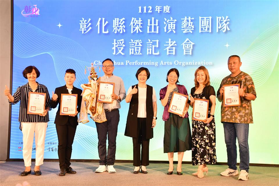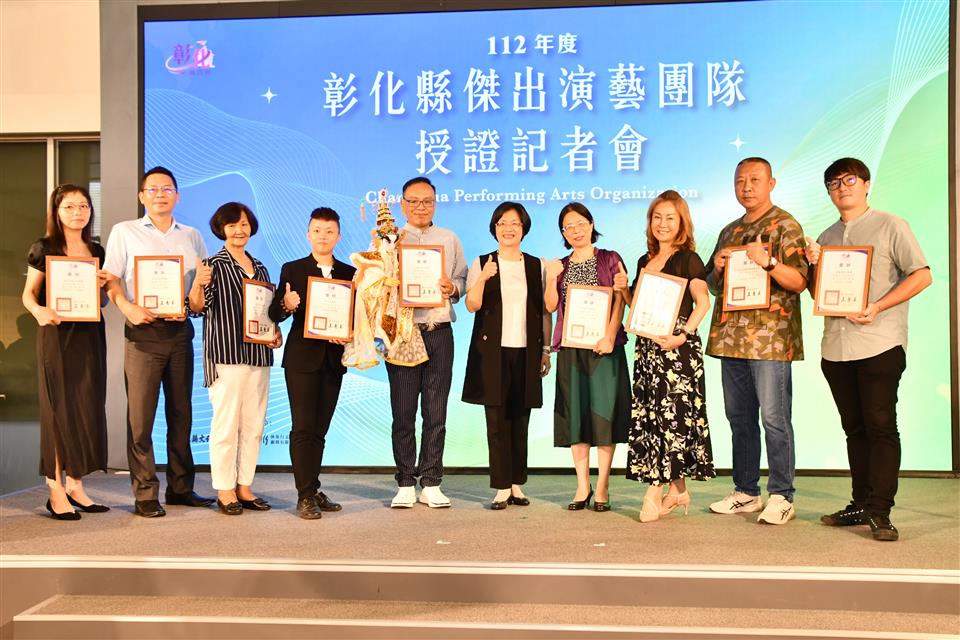 為形塑彰化縣藝文品牌,6月9日上午於縣府中庭首次舉辦傑出演藝團隊授證記者會,由彰化縣長王惠美親自授證,本次共9個演藝團體獲選,王縣長嘉勉並感謝其於表演藝術努力耕耘的成果,期許團隊勇於創新、持續發表優質作品。 王縣長表示,縣府團隊用心扶持地方表演團隊,包括積極爭取文化部地方扶植傑出演藝團隊計畫,引介表演藝術專業師資,開設專業課程、工作坊,媒合跨縣市交流、演出,不斷整合縣內表演藝術資源,提升縣內傑出團隊營運能量。今年度由陳麗香歌仔戲團、光興閣掌中劇團、新和興總團、員圓舞蹈團、王功兩廣國術龍獅戰鼓團、萍蓬草兒童劇團等6團獲選傑出演藝團隊殊榮;其次,彰藝園掌中劇團、彰化青年管樂團、就是木笛室內樂團等3團獲選潛力演藝團隊。縣府團隊近年來勇於嘗試,努力爭取文化部、國藝會、傳藝中心等中央單位計畫,走出彰化拓展跨縣市、國際演出文化交流,值得嘉許。 王縣長指出,112年彰化縣傑出演藝團隊入選中央單位年度計畫支持,包括:「陳麗香歌仔戲團」、「光興閣掌中劇團」獲選國立傳統藝術中心〈傳統藝術開枝散葉-民間劇場重塑計畫〉;新和興總團獲選國立傳統藝術中心《承功—新秀舞臺》匯演計畫;還有彰藝園掌中劇團獲選國立傳統藝術中心「傳統藝術接班人-駐園演出計畫」。其中,新和興總團第四代江怡璇獲選文化部文化資產局「重要傳統表演藝術」廖瓊枝老師傳習藝生,彰藝園掌中劇團第三代傳人陳韋佑也是「文化部重要傳統藝術布袋戲保存者陳錫煌」傳習藝生,兩位傳藝青年獲大師親自指導,歷經4年終於順利通過考核結業,值得讚許,也期待團隊夥伴勇於創新、持續深耕,形塑彰化藝文品牌。 王縣長表示,縣府今天也特別邀請跨縣市場館、團隊、本縣優質企業建大工業股份有限公司、美利達工業股份有限公司等、還有工策會及各界藝文人士與會,好的表演要有更多的觀眾來欣賞,今年傑出演藝團隊的成果演出,將從7月到10月陸續在員林演藝廳上演精彩好戲,歡迎鄉親、企業界及愛好藝文者一起來支持優秀的演藝團隊,也希望藉由搭建這些平台,讓彰化的演藝團隊能不斷發光發熱。 與會貴賓有彰化縣議員陳銌銌、彰化縣文化局長張雀芬、縣府青發處長黃金樺、彰化縣工商發展投資策進會副總幹事陳穎青、陳麗香歌仔戲團創辦人陳莉芸、團長施純權、新和興總團團長江陳咏蓁、當家小生江怡璇、光興閣掌中劇團團長林宏憲、員圓舞蹈團團長陳麗莉、王功兩廣國術龍獅戰鼓團團長巫松軒、萍蓬草兒童劇團團長郭月媚、總監周億芳、彰藝園掌中劇團團長陳韋佑、彰化青年管樂團團長林庭進、公關理事洪楷崴、就是木笛室內樂團行政總監毒憶紋、建大工業股份有限公司總務課長謝楨祥、美利達工業股份有限公司工會秘書鐘毓茹、臺中國家歌劇院經理黃本婷、2023桃園鐵玫瑰藝術節策展人李惠美、那個劇團藝術總監楊美英、鬆勢藝術節策展人簡紫婷、不二擊聲音製造所藝術總監薛詠之、両両製造聚團團長左涵潔、右舍咖啡店長林雅啟、各級民意代表與地方仕紳等。 附表-彰化縣傑出演藝團隊年度公演資訊: • 2023/7/1(六) 19:30 員圓舞蹈團──台灣戰爭三部曲《1949》 @員林演藝廳表演廳 • 2023/8/26(六) 14:30、19:30 萍蓬草兒童劇團──好劇童樂會《格列佛遊記》 @員林演藝廳表演廳 • 2023/9/9(六)14:00、19:00 光興閣掌中劇團──《魔童之心──生與滅之章》 @員林演藝廳小劇場 • 2023/9/10(日)14:30 新和興總團──歷史女性群象系列《紅梅妝》@員林演藝廳表演廳 • 2023/9/16(六)19:00 王功兩廣國術龍獅戰鼓團──《龍珠》@員林演藝廳小劇場 • 2023/10/28(六)-10/29(日) 14:30 陳麗香歌仔戲團《大夢初醒》讀劇 @員林演藝廳小劇場
