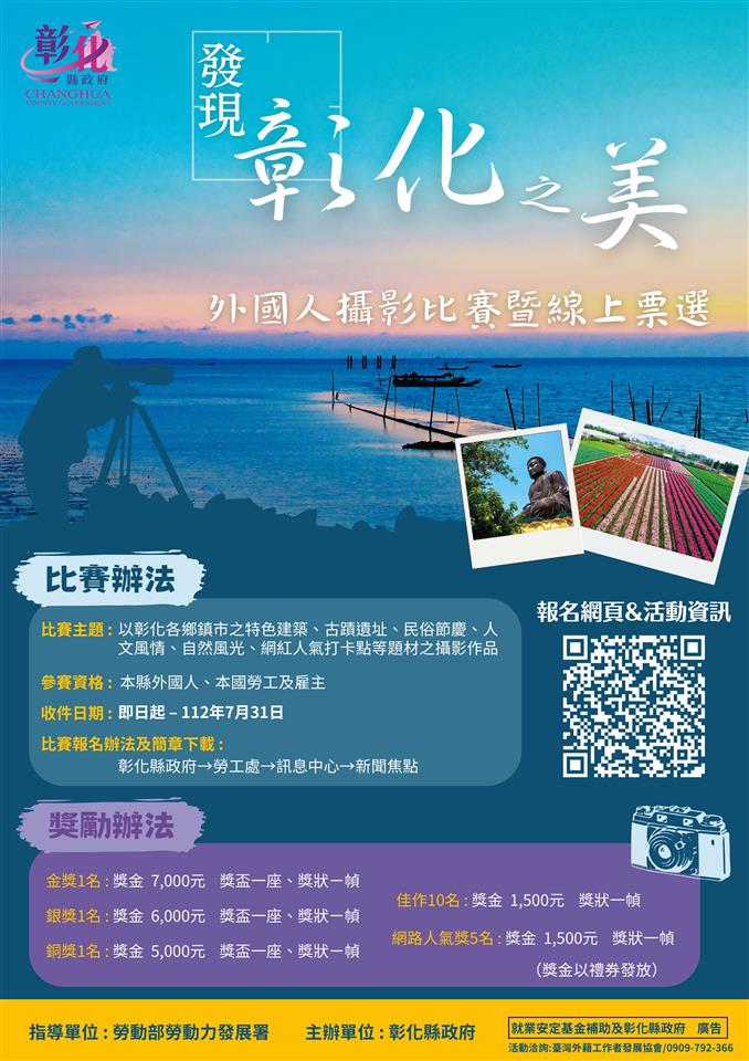 為調解本縣移工之身心健康、工作壓力,進而促進勞資和諧,同時鼓勵雇主重視並落實移工居住安全,彰化縣政府今(21)日上午於縣府6樓咖啡藝廊舉辦「移起樂活@彰化」移工系列活動啟動記者會,4項活動多元且精彩可期,鼓勵本縣移工朋友、勞工朋友及雇主一同共襄盛舉。勞工處長何俊昇表示,「移起樂活@彰化」移工系列活動,包括4個主題,「樂健康」舉辦3項球類比賽,希望移工跟本國勞工朋友們,一起參加比賽;「樂陶冶」讓不喜歡運動流汗的人,可以參加攝影比賽;「樂安居」大家辛苦工作完要舒服的休息,希望移工宿舍能具有特色並住得舒服,所以舉辦宿舍環境評比;「樂悠遊」移工們在彰化這塊土地上打拚,也要體驗在地美食及人文風情,所以舉辦5場次在地輕旅行。縣府透過辦理多元的活動,期待讓彰化更美好,走向世界,也期待成為移工們記憶中的故鄉,歡迎大家踴躍參與。 勞工處長何俊昇表示,彰化是很多中小型企業的原鄉,更是很多產業的故鄉,所以彰化有許多的隱形冠軍,這些成功的隱形冠軍都是靠一雙雙勞工的手去努力才能打拚出來,彰化除了有超過60萬的本國勞工之外,更有超過6萬多的移工,他們帶給第一線工作非常多的助力,所謂的彰化味就是人情味,在濃濃的人情味中,希望移工能融入彰化這塊土地,讓他們不只是工作,更是生活,因此辦理「移起樂活@彰化」活動。 4項移工活動如下: 一、「樂健康-外國人球類競賽活動」:即日起受理報名,並訂於7月30日於鹿港高中辦理排球、籃球及羽毛球三項球類競賽活動,多達18個獎項,讓本縣移工以球會友,友善交流。 活動報名網址:https://reurl.cc/aVaVxl 二、「樂陶冶-發現彰化之美 外國人攝影比賽暨線上票選活動」:即日起受理報名,以彰化縣內特色建築及人文風情等為題材,透過攝影比賽徵集作品,讓移工朋友發現彰化之美,活動多達18個獎項,總獎金高達4萬500元。 活動報名網址:https://bestscenechanghua.com.tw 三、「樂安居-外國人宿舍環境評比競賽」: 即日起受理報名,藉由移工宿舍競賽讓雇主、仲介重視移工住宿環境及安全,活動多達26個獎項,總獎金高達4萬6,000元。 活動報名網址:https://forms.gle/sgF6DBMDoSgwY1C88 四、「樂悠遊-外國人彰化在地輕旅行」: 9月至10月辦理5場次,包括稻香文化之旅及海線西濱小輕旅,藉由實地參觀本縣在地文化特色景點,了解彰化自然風光及風土民情,產生在地工作親切感與歸屬感。 活動報名網址: https://docs.google.com/forms/d/e/1FAIpQLSf1y6fKarbMeHj-EKC-FYf3wJ3uu7rEm5qGU-g6hN94me6g4A/viewform 將持續創造勞資和諧的工作環境,並且加強雇主及企業對移工人權的重視,讓移工朋友都能夠在本縣安心工作,體驗彰化的美、彰化滿滿的人情味。各項活動訊息詳情及競賽規定可至縣府勞工處網站下載(https://labor.chcg.gov.tw/00home/index01.aspx),若有任何相關活動資訊問題,亦可撥打縣府勞工處專線04-7297228洽詢。 與會貴賓有縣議員陳玉姬、內政部移民署中區事務大隊彰化縣服務站主任林弘志、彰化縣專勤隊長黃奕崗、彰化縣工業會秘書長陳永興、社團法人彰化縣新移民協會副理事長楊淑安、理事梁淑芬、彰化縣總工會秘書長温宗諭、縣府勞工處長何俊昇、新聞處副處長張志昇、各級民意代表與地方仕紳等人。