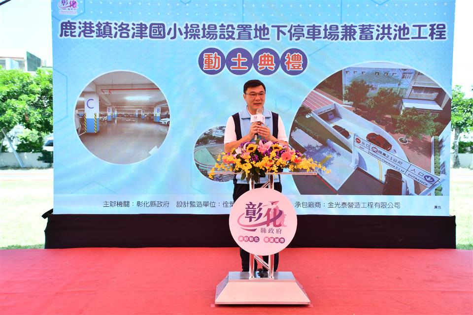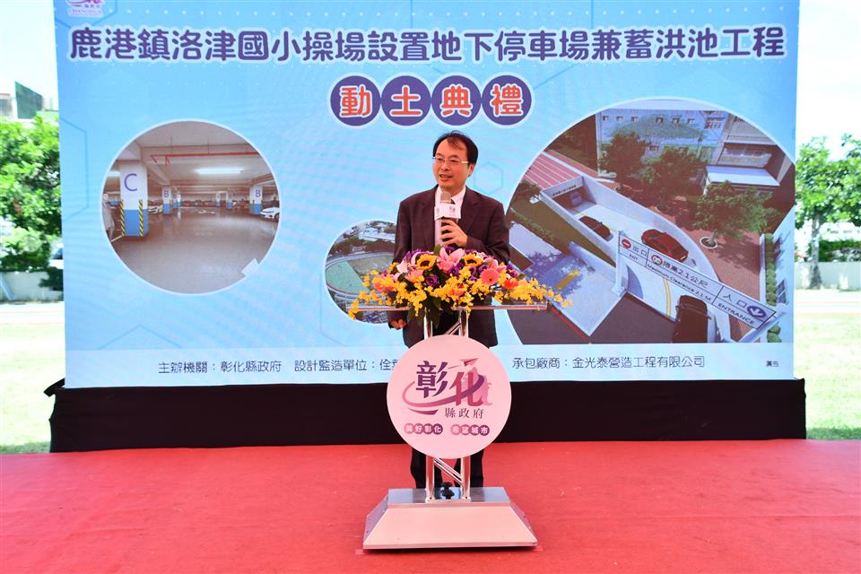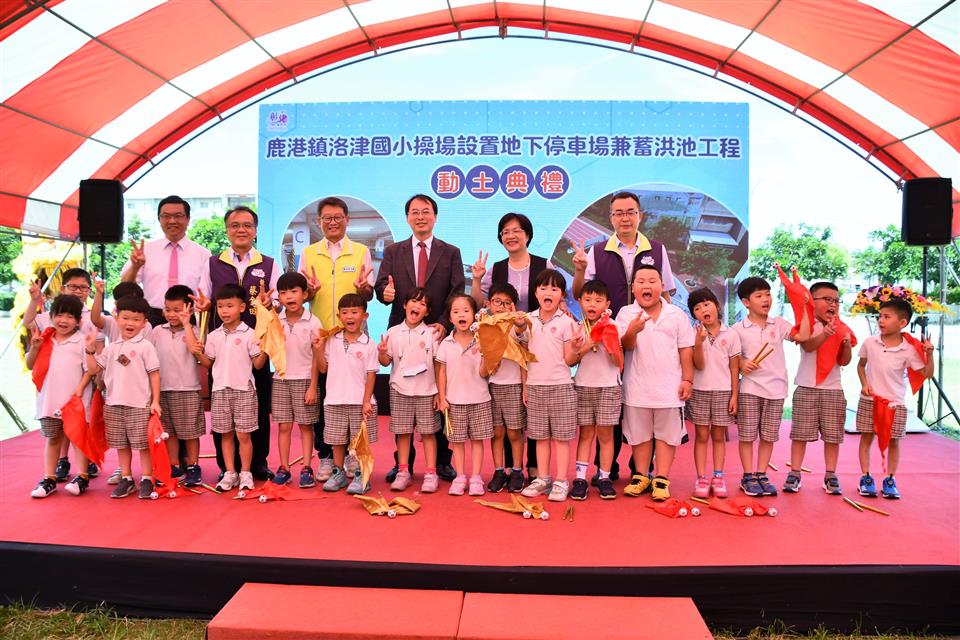 為改善鹿港老街周邊居民逢強降雨易淹水之苦,彰化縣政府積極向經濟部水利署爭取經費,於洛津國小操場下辦理蓄洪池工程;另考量鹿港地區假日停車空間不足,將蓄洪池與停車場結合,共構共建、同層空間共用,平時為停車場使用,遇豪雨則改為蓄洪,成為全國首創停車場兼蓄洪池的案例。6日上午於洛津國小操場舉行動土典禮,彰化縣長王惠美、水利署副署長王藝峰與各級民代等人與會,王縣長表示,為了解決鹿港老街長期以來遇雨則淹的問題,感謝中央水利署補助2.2億元,彰化縣政府在議長謝典林及議員們的預算支持下,自籌約8,000萬元,斥資3億,全國首創在洛津國小蓋地下停車場兼蓄洪池,預計在明年12底前完工,推動全國第一處逕流分擔場域,不僅解決鹿港老街長期淹水的問題,也為鹿港地區爭取更多停車空間,帶動假日觀光效益,同時也讓學校將煥然一新,創造三贏。 王縣長表示,因為極端氣候,導致急降雨,在她做鎮長時,曾連續2週視察老街水災,鹿港老街地勢低窪,但具豐厚的人文,每逢大水常造成膝蓋以上的積水,近年來,在鹿港公會堂設置排水幹線,一直到舊鹿港溪抽水,也設有抽水站,加以改善,這次特別感謝水利署非常支持縣府提出全國第一處的逕流分攤,也是全國首創在鹿港洛津國小興建地下停車場兼蓄洪池,平時可以提供遊客或鄉親舒適的停車空間,預計將提供107個停車位,遇到颱風或強降雨時,蓄洪量體約為1萬2,000立方公尺,如果試辦效果不錯,未來在各都會區也可能朝這個方式努力。 王縣長指出,未來興建的停車場採智慧化停管系統,良好採光,自然通風,設置無障礙廁所及電梯,提供友善環境,在學校操場、司令台、圍牆、植栽、人行道等周邊設施也會一併予以改善。另外,配合旁邊鹿港溪環境,以及鹿港轉運站BOT案、大眾捷運系統延伸設站,一併建設起來,未來鹿港觀光及捷運發展指日可待,期待可以再帶入大量觀光人潮,創造商機,今年是建縣300年,期待這項工程能如期如質完工,讓來鹿港的遊客能夠有好的停車空間,希望鹿港可以走向更國際的觀光城市。 水利署副署長王藝峰表示,鹿港是水利署擺放第一的治水總站,在淹水計畫中,水利署與彰化縣政府合作,在下游河段做整治且新建抽水站,但要在鹿港鎮裡治水很不簡單,因為鹿港鎮是台灣最古老的城鎮之一,有豐富的人文、廟宇、古蹟等,加上街道狹小,如何治水對水利署來說是非常大的挑戰。在王惠美縣長的縣府團隊的協助及委員們爭取預算之下,這次,大膽參考日本鶴見川的治水經驗,在世運的足球館底下挖了停車場也兼做球場,也參考丹麥哥本哈根的治水經驗,不破壞都市,與都市融合進行治水工程,這次在洛津國小的滯洪設施停車場兼蓄洪池,是全國首創,水利署希望讓鹿港鎮盡量不淹水,在工程完成後讓縣民能享受與台北市相同的防洪標準,最重要的是水利署與彰化縣政府合作,把鹿港溪風華再現,今年也將在鹿港溪舉辦全國河川日活動,期待鄉親大家一起來參與,期許治水工程完工後,成為全國治水的標竿。 鹿港鎮長許志宏表示,非常高興看見全國首創的地下停車場兼蓄洪池工程動工,鹿港是個觀光小鎮,時常造成鹿港停車格一位難求,又在颱風季時,常導致鹿港急降雨的淹水,十分感謝中央及王惠美縣長對於工程的支持,也感謝洛津國小校長張榮裕的支持,讓地下停車場兼蓄洪池工程順利動工,相信在完工後,不論是停車或是淹水的問題,以及校園都能大大的改善。 工務處表示,本工程蓄洪量體約為1萬2,000立方公尺,可望達到暫存蓄洪效果,搭配進出水流管制措施,保障人車安全。停車場部分規劃地下一層,可提供107席小型車停車位,包含3席無障礙車位及3席親子車位,停車場除了導入智慧化停管系統,並重視自然通風與採光,也設置無障礙廁所及電梯,達到友善空間;另校園操場、司令台、圍牆、植栽及人行道等周邊設施一併重建,回饋學校及里民新穎又美麗的校園。 與會貴賓有立法委員陳秀寳、經濟部水利署副署長王藝峰、第四河川局長李友平、縣議員藍駿宇、郭燕陵、楊妙月、楊竣程服務團隊、黃俊源服務團隊、凃淑媚服務團隊、施佩妤服務團隊、鹿港鎮長許志宏、鹿港鎮民代表會主席王炫斐、佺葉工程顧問有限公司技師陳信佑、金光泰營造工程有限公司董事張瑞忠、廖源俊、縣政顧問吳文龍、許富足、黃建元、許翠娥、縣府工務處代理處長陳詔慶、新聞處長李俊德、水資處長馬英傑、教育處長蔡金田、洛津國小校長張榮裕、各級民意代表、地方仕紳等。