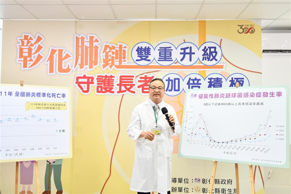 彰化縣於今(7/12)日上午在和美鎮衛生所召開「彰化肺鏈雙重升級,守護長者加倍積極65-70歲彰化長者接種縣購13價肺炎鏈球菌疫苗記者會」,由縣長王惠美、彰化縣醫師公會理事長廖慶龍、診所協會理事長吳祥富及秀傳紀念醫院感染科主任劉克森共同呼籲長者接種肺炎鏈球菌疫苗。王縣長表示,彰化肺鏈雙重升級,一是今年7月起彰化縣再加碼升級13價肺炎鏈球菌疫苗,提醒彰化縣65-70歲的長者,二是自7月13日中午12點起,可以用網路預約,7月24日起開始接種服務,提醒長者踴躍接種,以達預防重於治療之效,讓我們一起守護長者,加倍積極。 王縣長表示,國人十大死因除了第一名的癌症、第二名的心臟疾病,在110年之前,已有連續六年蟬聯第三名的就是肺炎的死亡,去年因為COVID-19的關係,所以111年十大死因的第三名就變成新冠肺炎、第四名為肺炎,謝謝議會在107年就對於23價肺炎鏈球菌疫苗預算的支持,這次更升級為13價肺炎鏈球菌疫苗,在COVID-19疫苗尚未普及前,許多人為了保護肺部,施打的就是這個13價肺炎鏈球菌疫苗,這次總共提供1萬劑疫苗,用完就要再等明年,請大家把握機會,保護好自己及家裏的長者,讓家人更健康、快樂。 王縣長指出,為了保護縣內長者,這次彰化縣開放65-70歲(42-47年次)的長輩可以施打13價肺炎鏈球菌疫苗,謝謝所有138家醫療院所及地方衛生所配合施打疫苗,疫苗將於7月24日開始施打,請鄉親記得事先預約,並請帶著身分證、健保卡,另外,不只是65-70歲的長者要照顧,5歲以下的幼兒及71歲以上的長輩也要照顧,中央也有公費提供施打肺炎鏈球菌疫苗,有需要的鄉親也可以到合約醫療院所施打。 秀傳紀念醫院感染科主任劉克森表示,從105-110年國家資料告訴我們說,在台灣得到急性病會死掉的肺炎居然排第三名,他每天在醫院看到很多鄉親得到肺炎轉而變成重症到加護病房,最後上天堂,這件事值得大家來重視,肺炎中有一種細菌非常兇猛,稱之為肺炎鏈球菌,因為它會跑到腦中、血液中,引發敗血症,特別是5歲以下以及65歲以上的人最容易得到肺炎鏈球菌的感染,如身上又有糖尿病、高血壓、癌症化療、吃類固醇、肺部有慢性肺部疾病的人,得到的機率更高,國家對於小朋友已經有疫苗政策可以預防,而65歲以上老人家的部分就需要大家更努力地來做預防,打疫苗就是最重要的預防手段。 彰化縣醫師公會理事長廖慶龍表示,王縣長真的是非常勤儉持家,把錢都用在刀口上,縣府加碼升級13價肺炎鏈球菌疫苗,保護長者的健康,自新冠肺炎後讓大家也了解到,接種疫苗是非常重要的事,就算是65歲以下的民眾,也可以自費接種疫苗,確保自己的健康,並特別提醒也要接種流感疫苗,醫師公會也會持續推廣,讓縣內民眾疫苗接種率提高。 彰化縣診所協會理事長吳祥富表示,感謝王惠美縣長縣府團隊這麼照顧縣內的長者,因為以前中央是補助23價肺炎鏈球菌疫苗,這次縣長在議會的支持下,不惜重資投入了1萬劑13價肺炎鏈球菌疫苗,提供給65歲以上到70歲的長者使用,鄉親一定要把握,只要符合資格就可以到138家合約院所及衛生所網路登記,請大家把握機會,一起來守護健康。 衛生局表示,肺炎鏈球菌是造成長者死亡的重要原因之一,因本身免疫功能降低或同時感染呼吸道病毒性疾病等,進而引發中耳炎、敗血症、菌血症、肺炎及腦膜炎等導致重症或死亡。彰化縣自107年起積極爭取預算,提供設籍彰化縣長者接種縣購公費23價肺炎鏈球菌疫苗,112年7月起再加碼升級為13價肺炎鏈球菌疫苗,因疫苗製作方式不同影響免疫反應,13價肺炎鏈球菌疫苗保護效果更持久。符合接種對象為設籍彰化縣65-70歲(出生年為42-47年次)且從未接種過縣購公費肺炎鏈球菌疫苗的長者,提供長者更佳的保護力;另同時積極配合中央政策,亦持續提供71歲以上長者公費肺炎鏈球菌疫苗接種。 衛生局指出,為分流接種,衛生局規劃自7月13日中午12點起,開放「彰化疫苗接種預約e點通」提供符合縣購公費接種對象網路預約,並於7月24日起由138家合約醫療院所及衛生所提供接種服務,若不方便使用網路預約,合約醫療院所也同樣有提供電話預約服務。彰化縣衛生局再次呼籲符合13價肺炎鏈球菌疫苗縣購公費接種的長者,請攜帶身分證及健保卡至合約醫療院所或衛生所接種疫苗,接種服務至疫苗用罄為止。提供服務之合約醫療院所名冊,可至衛生局網站/衛生資源/防疫類項下查詢。 與會貴賓有縣議員林小琪、賴清美、彰化縣醫師公會理事長廖慶龍、彰化縣診所協會理事長吳祥富、秀傳紀念醫院感染科主任劉克森、彰化縣衛生局長葉彥伯、和美鎮衛生所主任朱振銓、各級民代與地方仕紳等。 彰化疫苗接種預約e點通 https://wbma1.chshb.gov.tw/VaccineAppointment/Reserve.aspx 彰化縣衛生局網站: https://www.chshb.gov.tw/taxonomy/term/68