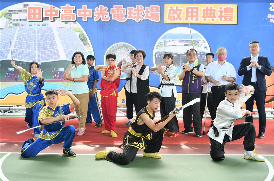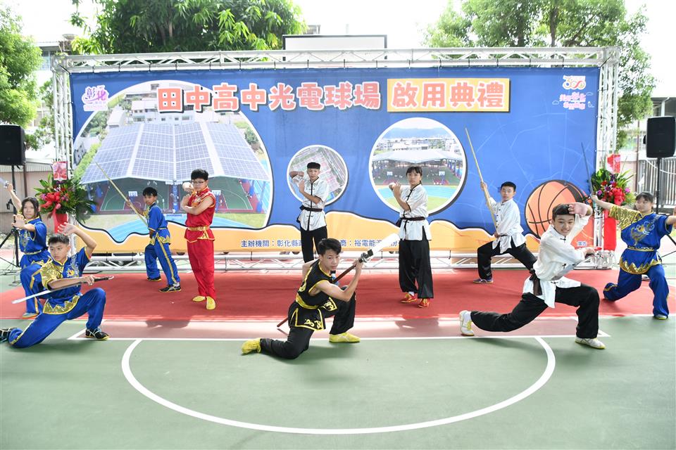 彰化縣校園種電,首座光電球場今(24)日上午在田中高中舉行啟用典禮,彰化縣長王惠美、國民及學前教育署簡任視察陳錫鴻、裕電能源股份有限公司協理葉時能等人與會,開場由田中高中管樂團及武術隊表演揭開序幕,還有SBL聯盟彰化柏力力籃球隊與田中高中女籃隊進行友誼賽。王縣長表示,節能減碳人人有責,感謝裕電能源股份有限公司辦理「彰化縣所屬學校球場設置棚架式太陽光電發電設備公開標租案」,出資來設置20校35座光電球場,提供師生舒適的戶外體育教學環境,對抗極端氣候,總金額高達2億5,000萬元,可打造每年發電量約550萬度,等同於可以供1,352個家庭使用。過去,若是要打造光電球場,每所學校需要中央補助約1,000萬元,如今由裕電能源股份有限公司設置,不僅節省中央政府經費,也創造縣府、學校、廠商的三贏,還有4%售電回饋金,也是全國最高的售電回饋金,未來田中高中光電球場也會再增加更多體育設施,讓師生及社區民眾享有一個更舒適、安全的運動環境,為地球永續發展盡一份心力。 王縣長表示,彰化第一座光電球場在田中高中完工啟用了,由於學生在室外打球十分炎熱,因此建置光電球場,讓學生在打球時非常舒適,並也同時能夠產生電力,也達到節能減碳的效果,可說是一魚三吃,彰化將陸續設置20校35座光電球場,除了田中高中以外,田尾國中的4座光電籃球場也已經完工,接下來還有湖東國小等18校29座光電球場將陸續完工,光電球場全數完工,預計每年發電量約550萬度,等同於可以供1,352個家庭使用,將能夠更加接近淨零碳排的政策目標。在氣候快速變遷的時代,使用乾淨的能源就非常重要,不論是太陽能發電、風力發電甚至是核能發電,都是未來的能源選項,縣府也全力來支持環境永續、節能減碳。 國民及學前教育署簡任視察陳錫鴻表示,他在民國71年從田中高中畢業,到現在有40多年了,看到現在學校不管是軟體、硬體設施各方面都煥然一新,真的非常高興,尤其是建置光電球場的理念都是永續經營,期望學弟妹們未來畢業後,也能為自己的母校付出,一起為教育來打拚,感謝王惠美縣長縣府團隊,還有各民意代表對田中教育的支持,也希望大家未來能繼續支持、鼓勵田中高中。 裕電能源股份有限公司協理葉時能表示,彰化的環境讓他們有目共睹,王惠美縣長把環境打造的非常優越,很高興能有機會來彰化縣服務,裕電能源的母公司是裕隆汽車股份有限公司,期許透過彰化縣政府團隊及裕電能源公司的結合,打造一個舒適環境讓莘莘學子們能夠在這麼炎熱的天氣下,可以做一些運動場合的執行,陸陸續續將彰化縣政府的光電球場一個一個安全、穩定地完成。 教育處指出,標租案由各校審酌校內土地資源及教學需求,再由本府統一標租校園球場土地,依規定引入民間資源投資建置太陽能光電風雨球場。除了鋪設金屬浪板,使用熱浸鍍鋅鋼材,配備高效太陽能電池板和儲能系統外,售電回饋金4%,是全國最高。田中高中的2座光電球場面積達1,170平方公尺,裝置有544片太陽能板,平均每日發電量有696度,一年高達25萬度,也等同於61個家庭的年用電量,光電球場除提供師生及社區居民一個遮陽避雨的優質運動場所外,球場售電回饋金,並做為充實教學設施設備及推動能源教育等經費,不僅增加本縣教育經費來源,更可減少對傳統能源的依賴,降低碳排放量,達到節能減碳的目的。 教育處表示,本次標租案中的田尾國中,4座光電球場也已經完工,面積達2,195平方公尺,裝置1,314片太陽能板,平均每日發電量有1,500度,一年將近55萬度。接下來還有湖東國小等18校29座光電球場將陸續完工,光電球場全數完工,預計每年發電量約550萬度,等同於可以供1,352個家庭使用。此外,考量還有部分學校球場尚未設置光電球場,縣府後續將再辦理標案,持續建置光電球場,讓師生及社區民眾享有一個更舒適、安全的運動環境,為地球永續發展盡一份心力。 與會貴賓還有縣議員鄭俊雄、田中鎮長蕭淑芬、教育部國民及學前教育署簡任視察陳錫鴻、縣政顧問陳首閩、教育處長蔡金田、裕電能源股份有限公司協理葉時能、田中鎮農會總幹事張瑞欣、田中高中家長會榮譽會長張勝明、鄭宗政、三潭國小校長林素鳳、內安國小校長石玲惠、私立達德商工校長許維純、溪湖高中總務主任方壯剛、柏力力籃球隊教練吳俊雄、各級民代與地方仕紳等人。
