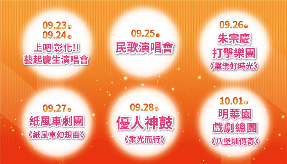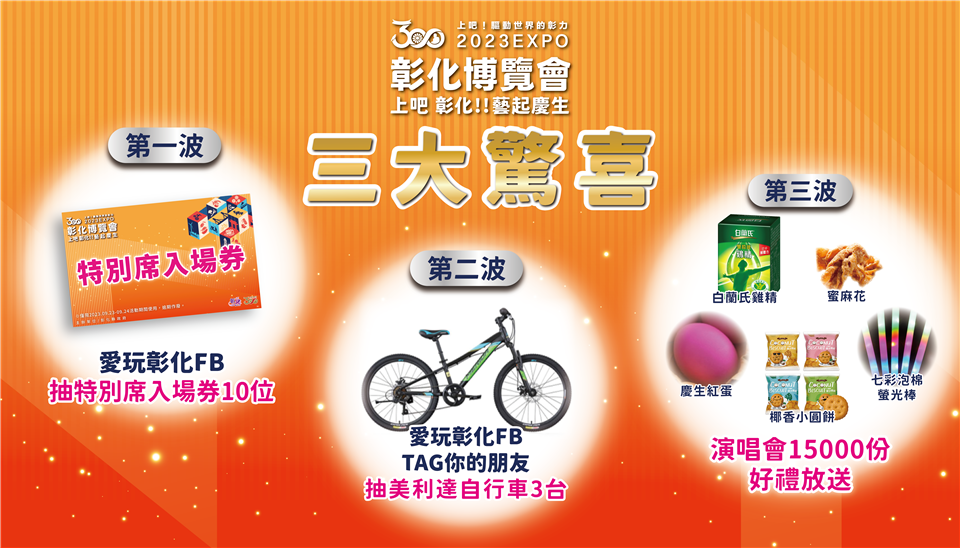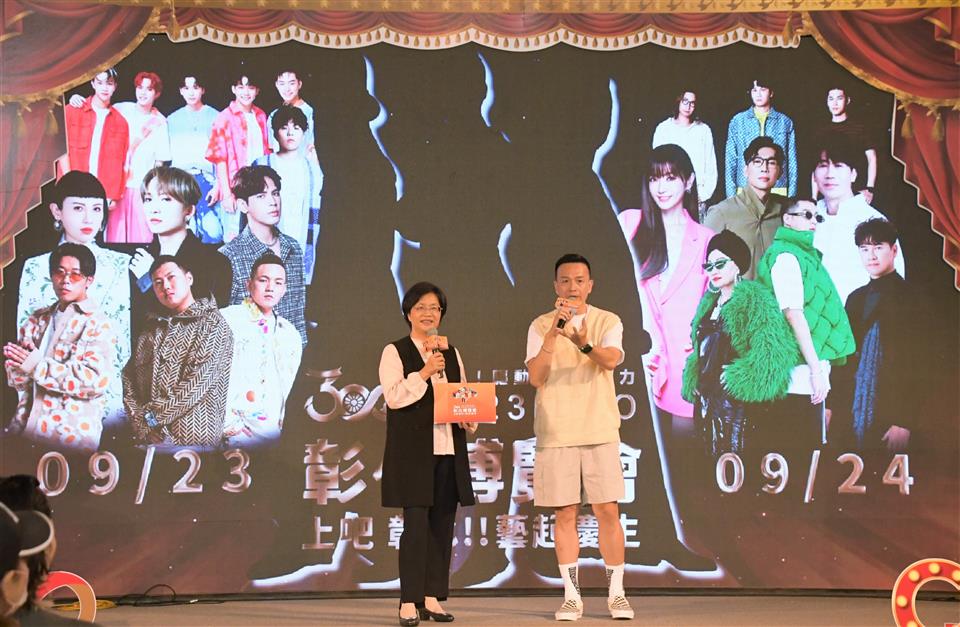 迎接彰化建縣300年慶典活動進入高潮,全台最炙手可熱的「上吧 彰化!! 藝起慶生」演唱會即將在9月23日及9月24日在彰化縣立體育場盛大登場。今(18)日上午在縣府中庭舉辦宣傳記者會,該盛會聚集了超強卡司,包含「超強回憶殺」草蜢、「巨星母子」周湯豪x比莉、「動感天后」謝金燕、宇宙人,九澤CP(陳零九+邱鋒澤)、魏如萱、宋念宇(小宇)、玖壹壹、李聖傑、羅時豐、品冠、麋先生 MIXER、源少年、神棍樂團ZenKwun、許含光、The Tic Tac、打倒三明治Sandwich Fail、芒果醬 Mango Jump等共18組華麗陣容,現場搭配480秒華麗璀璨煙火、300台無人機,陪民眾一起點燃音樂狂潮。 王縣長表示,彰化縣從1723年建縣至今有300年的歷史,感謝先人的用心與努力,讓這塊土地賦予文化,讓鄉親能豐衣足食,歡慶彰化建縣300年,向大家預告縣府自9月23日至10月1日在彰化縣立體育館有彰化300博覽會,展出對於彰化過去、現在以及未來願景的展覽,同時在縣立體育場每天則有不同的演出節目,屆時歡迎大家一起來參與。 王縣長表示,「上吧(台語/三百) 彰化!!藝起慶生」演唱會,一連二天,於9月23日、24日在彰化縣立體育場,9月23日演唱會壓軸是紅遍港台的草蜢,他們在3月在小巨蛋開唱,10月又將在高雄加場的殿堂級唱跳團體,還有5月在台北小巨蛋演出實力歌手的娃娃-魏如萱,剛在海外辦完演唱會,預計11月年底合體辦演唱會的九澤CP,另外,9月24日演唱會由謝金燕重磅開場,壓軸則是6月才在高雄巨蛋辦完演唱會的最潮母子組合比莉跟周湯豪,還有7月在台北流行音樂中心開唱備受矚目的麋先生、獲得2023金曲獎最佳樂團的宇宙人、以及彰化鄉親神棍樂團等表演,匯聚了來自各音樂類型18組最強卡司,這次不用南北、海外到處跑、也不用守著電腦搶票,都在彰化免費唱給大家聽,還有480秒的精彩煙火加無人機秀,記得來彰化還有很多好康等著您。 王縣長指出,除了2天的演唱會來打頭陣之外,接著,9月25日有民歌演唱、26日有朱宗慶打擊樂團、27日有紙風車劇團、28日有優人神鼓、10月1日有明華園總團孫翠鳳帶來為彰化量身打造的紀念大戲《八堡圳傳奇》,此外,9月29日更在員林市圓林園由「明華園總團」孫翠鳳加碼演出,這是特別商請明華園為彰化建縣300年所演出的歌仔戲,大家可以期待一下,歡迎大家前來共襄盛舉。 城市暨觀光發展處表示,這場「上吧 彰化!! 藝起慶生」表演活動讓全國民眾照過來,從最強卡司打開建縣三百序幕,到多元跨界的表演藝術盛宴,還有包括「彰化300博覽會」(9/23~10/1)、逾百攤的「選品市集」及親子活動等,歡迎大家相揪來𨑨迌!此外,為讓全國鄉親共同感受彰化三百歲的喜悅,此外,9月23日至10月1日晚會活動再加碼,有三千顆慶生紅蛋派送,現場贈送在地好禮白蘭氏雞精、田中名產蜜麻花、台灣優格餅乾學院數字蔬菜餅乾…等,共一萬兩千份好禮贈送給現場參與的民眾。接下來兩周的活動場外也將送出限量的贈送餅乾、文創杯墊、青發處環保袋等好禮,讓我們一同歡聚,共度難忘的時光!線上也有慶生祝福串聯,只要透過「愛玩彰化FB」PO文「彰化三百 生日快樂」並tag三位好友,即有機會參加抽獎,得到市價3,980元的美利達自行車。 為避免交通擁擠,彰化縣政府規劃市區接駁車,呼籲民眾踴躍搭乘前往演唱會現場,方便更多粉絲朋友一同參與這場盛會,相關活動資訊請上愛玩彰化FB或彰化縣旅遊資訊網查詢。另彰化縣政府補充提到,本次演唱會邀請草蜢隊跨海演出,依照法規程序申請中。 與會貴賓還有縣議員陳玉姬、洪本成、張春洋、陳重嘉、溪湖鎮長何炳樺、溪湖鎮民代表會副主席黃佳惠、交通部觀光局參山國家風景區管理處秘書蔡崇雄、彰化縣旅遊產業協會秘書長湯凱杰、彰化縣遊覽車商業同業公會理事長詹志啟、台灣優格餅乾學院副總經理曾明哲、白蘭氏健康博物館長余惠芬、台明將副董事長林肇騫、紙風車文教基金會執行長張敏宜、彰化市長樂社區發展協會理事長黃惠足、縣府秘書長陳逸玲、城市暨觀光發展處長王瑩琦、新聞處長李俊德、計畫處長施敏華、文化局長張雀芬、警察局主任秘書程純濱、各級民代與地方仕紳等人。