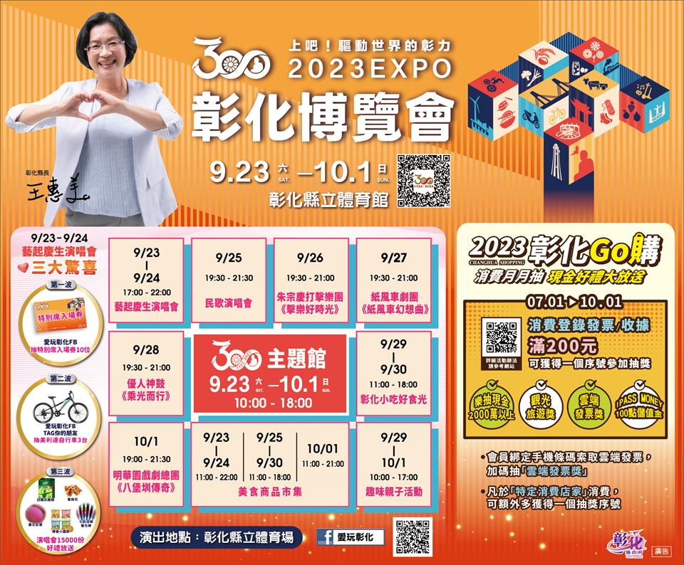 為歡慶彰化建縣300週年,彰化縣政府在彰化縣立體育館舉辦「彰化博覽會」系列特展,以「上吧!驅動世界的彰力」為展覽主題,透過結合AI及AR等多媒體互動科技,回顧彰化的歷史同時也藉此「彰」顯新未來願景。今(9/23)日活動正式開跑,開幕現場嘉賓雲集,彰化縣長王惠美和四位前縣長、各界貴賓、各級民代,共同與會,一起歡慶彰化300,生日快樂!王縣長表示,彰化從清雍正元年,西元1723年建縣到現在,西元2023年,已走過三個世紀,300年來的光輝歲月,靠著歷代先人們的努力,以及與會貴賓及彰化鄉親的支持,帶領這座城巿不斷翻轉向上,這次彰化300博覽會活動將持續到10月1日,在彰化縣立體育館及體育場,有一連串豐富內容及表演節目,300主題館展示彰化300年來的過去、現在與未來,從歷史、從產業甚至是民生,涵蓋食衣住行育樂健美等多元面向,透過博覽會完整呈現,歡迎全國各地好朋友到彰化來體驗獨有的獨特「彰」力,上吧!驅動世界的彰力! 王縣長表示,彰化建縣300年,從過去鹿港千帆的盛況、到彰化平原內陸水運中心的北斗、以及清代貨物轉運站的芳苑,俗語講「一府、二鹿、三艋舺、四寶斗、五番挖」,在台灣發展史上,彰化就占有三席重要的位子,也造就彰化發展出最豐富的人文底蘊與多元產業。彰化又稱半線,早期八堡圳的開採,奠定彰化農業發展的基礎,成就彰化為農業大縣。彰化是台灣重要的穀倉,2顆雞蛋中就有1顆來自於彰化,還有很多像葡萄、花卉、畜產等農產品,產量都是全國第一,也都深受國際友人的喜愛。 王縣長指出,300年來的累積,彰化在工商產業聞名世界,例如全球最大的製鞋廠寶成公司、全球最知名的美利達自行車、世界級的輪胎大廠建大工業與正新橡膠、全球最大的汽車維修零件的車燈廠帝寶工業、立足台灣,揚名大陸的金可隱形眼鏡等,其他如知名品牌及隱形冠軍更是不計其數,像宏碁電腦創辦人施振榮、華碩電腦董事長施崇棠,也都是來自於彰化鹿港,感謝這些企業家他們的用心,引領世界潮流,讓彰化擁有影響趨動世界的彰力,讓彰化在全球版圖中占有一席之地。 王縣長指出,彰化300博覽會系列活動,正式展開,回顧彰化的歷史同時,也藉此「彰」顯新未來的願景,這次活動必看的「300主題館」,打造四大特色主題展區,以多媒體互動科技,讓您可以一次體驗AR投影、裸眼3D立體影像、沉浸式區域及AI互動問答等方式,深入了解彰化的過去、現在及未來,也讓觀展的鄉親,有全新的五感體驗。 王縣長進一步指出,系列活動除了在白天必看的「300主題館」之外,晚上也規劃一系列慶典活動,包括有連續3天唱好唱滿的演唱會,共邀請25組以上最強卡司歡唱,還有優人神鼓、紙風車劇團、朱宗慶打擊樂團及國寶級明華園戲劇總團等一系列免票入場的藝文饗宴,更有鄉親最愛的彰化美食小吃宴,我們網羅500碗好吃的美食小吃,給大家盡情的大啖美食,沒有搶到報名的朋友不用傷心,我們在美食商品市集規劃每天不同時段的彰化小吃及500碗餐點品項,讓現場民眾也能大飽口福,中秋連假還有適合全家大小一起同樂的趣味親子活動,歡迎全國各地朋友9月23日到10月1日一定要到彰化博覽會,體驗獨有的獨特「彰」力! 王縣長表示,過去300年來,我們的先人在這塊土地世代打拚,代代相傳,打下良好的基礎,讓我們可以大聲說,「我彰化,我驕傲」,未來,我們和代代子孫也傳承先人的「骨力」、「打拚」的精神,繼續向下一個300年邁進,大家繼續攜手努力,讓彰化更美好,再寫下下一個300年的彰化新篇章。 前縣長周清玉表示,彰化舊名叫「半線」,有山、有水、人溫暖,一府二鹿三艋舺,從過去到現在都有名聲,南來北往,不論山線海線都要經過彰化,因此,彰化有很好的基礎,豐厚的歷史,重要的地理位置,也有全台灣第一個台語創意園區,在卦山村上也有年輕藝術家,彰化的每項物產都很豐富,身為彰化人以彰化為驕傲,不論在文化、建設、教育等各項發展上,彰化一定都是台灣之光。 前縣長阮剛猛表示,彰化縣地靈人傑,是個好所在,剛剛王縣長說的「一府二鹿三艋舺四寶斗五芳苑」,過去的五個繁榮城鎮,彰化就占了三個,彰化有輝煌的歷史,希望彰化未來繼續向前。王縣長從政資歷豐富而完整,當過議員、立委、鎮長及縣長,相信王惠美縣長能帶領彰化再造輝煌。 前縣長翁金珠表示,以建縣300週年彰化博覽會來展現彰化縣的歷史、人文、藝術、文化、產業、未來,給予王惠美縣長帶領的縣府團隊竭盡所能籌辦掌聲鼓勵。西元1723年清雍正元年,清朝以「建學立師,以彰雅化」取縣名為彰化,並以半線城作為縣治所在地,2003年她任內即有舉辦彰化建縣280年系列活動,時間飛逝,今年已是彰化建縣300年,共打造獨特「有彰歷、見真彰、新篇彰、最銷彰」四大展區,這就是對彰化的重視,感謝王惠美縣長邀請歷任縣長到場共同慶祝彰化縣300歲。 前縣長卓伯源表示,大家如果想看彰化的歷史,可以看彰化縣志最為清楚,彰化縣志從清朝道光年間開始編纂,他任內再次重編新版彰化縣志,現今,也將彰化縣志編纂完成,希望大家能前來觀賞。彰化建縣300年,篳路藍縷,以起山河,彰化的故事十分豐富及精彩,歡迎大家前來彰化展覽館。 世界彰化同鄉會總會長黃明東表示,近年來,在王惠美縣長持續努力之下,時常舉辦各類活動,展現彰化的力量,讓全台灣,甚至全世界看到彰化,更為彰化縣打造希望、責任與義務,關懷弱勢