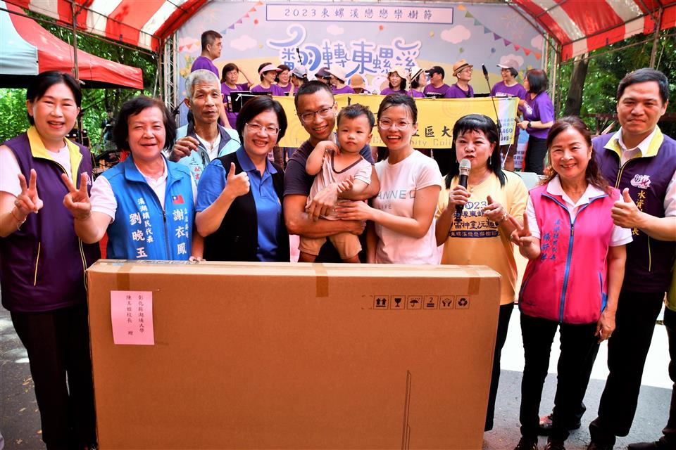 溪湖鎮公所在24日於東螺溪台灣欒樹隧道辦理「2023戀戀欒樹節翻轉東螺溪暨雷神童玩趣」活動,彰化縣長王惠美與會。王縣長表示,東螺溪為彰化母親之河,流經彰化縣九個鄉鎮,為改善東螺溪水質狀況及水岸環境,彰化縣政府投入7.65億元,感謝謝委員協助向中央爭取經費,帶給遊客與社區居民一個休憩好空間。同時也感謝陳玉姬校長與林淑玲執行長帶領地方仕紳、志工等人一起守護東螺溪,也讓民眾可以更加認識東螺溪之美。 湖埔社區大學校長陳玉姬表示,東螺溪是母親之河,期望藉由辦理這次的活動,讓居民體會到東螺溪之美,也呼籲大家共同守護東螺溪。 湖埔社區大學執行長林淑玲表示,戀戀欒樹節已經邁向第6屆,透過許多志工的努力,縣府也大力協助,爭取到7億多經費進行東螺溪水環境的整治。期望藉由活動讓居民可以了解到循環農業、綠色生活,同時帶動東螺溪流域9鄉鎮的居民一起努力,守護東螺溪,關注河川議題。 東螺溪也稱舊濁水溪,每年3、4月有木棉花季,現在時值9月,是台灣欒樹黃花盛開的時候,金黃色一串串花朵與綠葉相襯,讓這裡每到花季便成為遊客賞花打卡的熱點。本次活動包括「翻轉東螺溪陀螺秀」、「東螺溪遊記桌遊」「擲筊雷神小神斧」、「古早味童玩趣」及「和服泡泡派對」五大主題,除了贈送1000顆陀螺號召千人轉陀螺外,還有百攤文創市集,環保綠生活環境教育闖關活動,古早味童玩陀螺爺爺賴三義教打陀螺、傳統技藝扯鈴、獨輪車雜耍表演,耍球、趣味童玩釘甘樂、小球技、站椿、滾鐵圈、彈跳棒等等,與遊客互動感受童玩的魅力樂趣。 與會貴賓還有副縣長林田富、立法委員謝衣鳯、彰化縣議員同時也是湖埔社區大學校長陳玉姬、縣議員劉珊伶、洪本成、陳重嘉議員服務團隊、行政院中部辦公室副執行長洪宗熠、第四河川局副局長張朝恭、溪湖鎮長何炳樺、代表會副主席黃佳惠、埔鹽鄉民代表會主席施春貴、埔心鄉公所機要秘書黃俊寰、縣府社會處長王蘭心、水資處副處長黃俊峰、彰化縣文化局副局長吳文昇、縣府秘書鄭瑞獎、湖埔社區大學副校長陳瑞平、執行長林淑玲、東螺溪環境協會理事長吳春福、東螺溪獅子會會長李家鎮、溪湖扶輪社社長陳瑞芳、國際獅子會300D-2區總監黃秋林、名譽議長楊承蒲、二林十方獅子會會長張永和、埔鹽獅子會會長吳萬添、溪湖震福宮主委巫釧榮、與各級民意代表、學校代表、地方仕紳等。