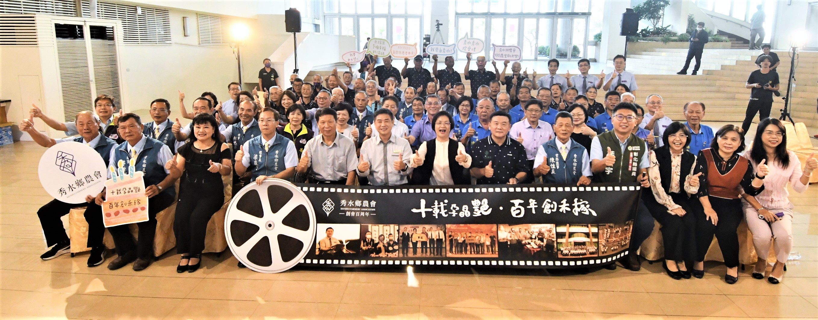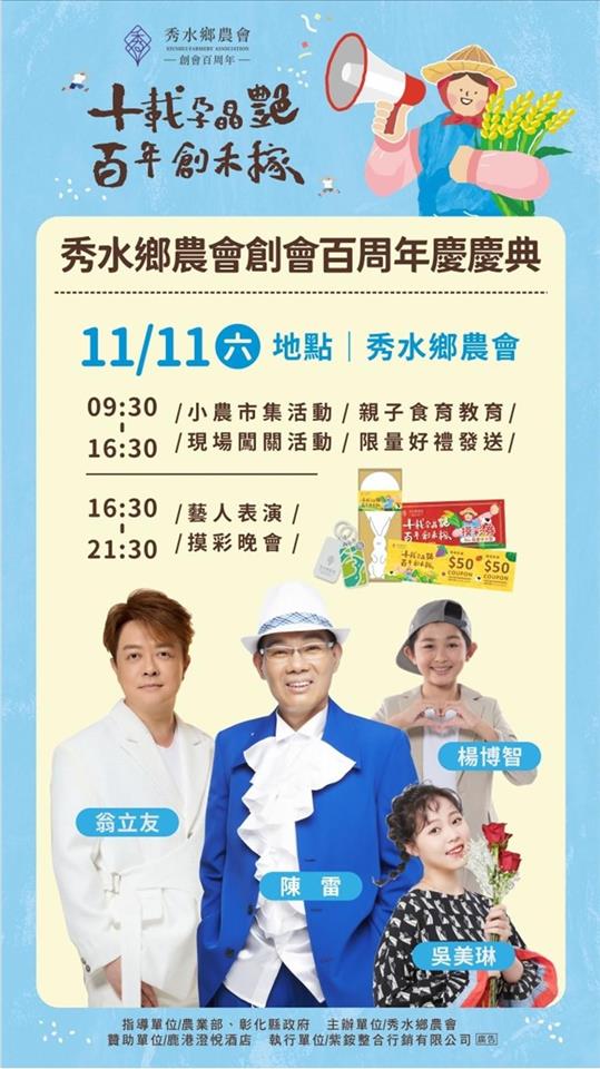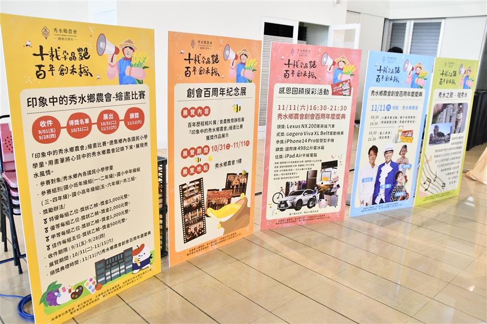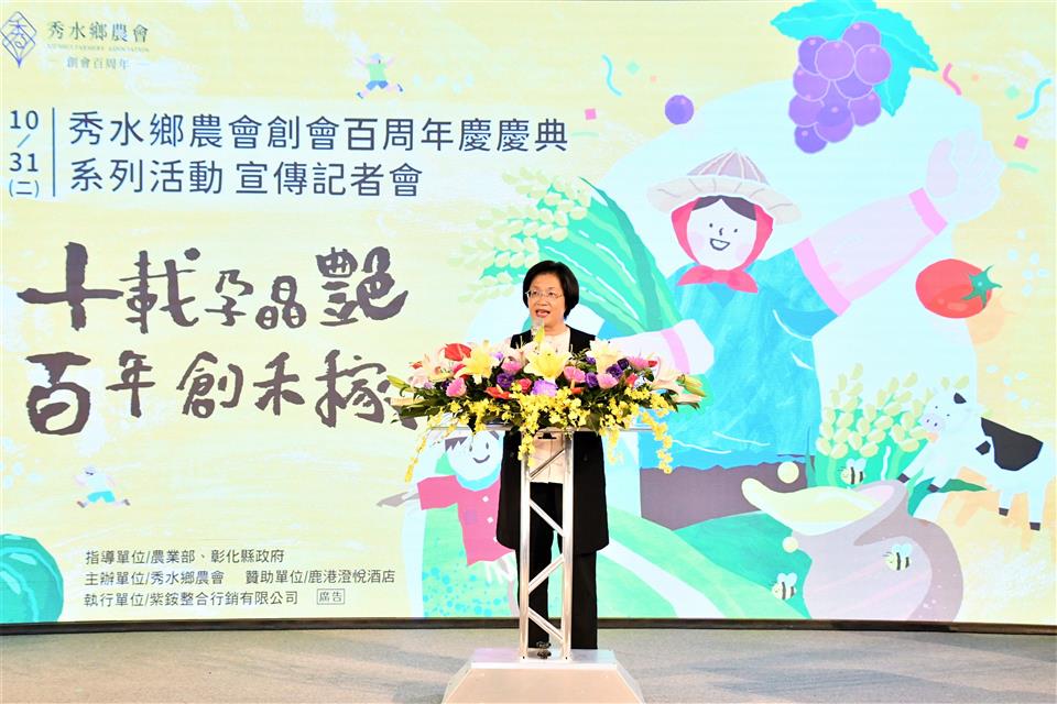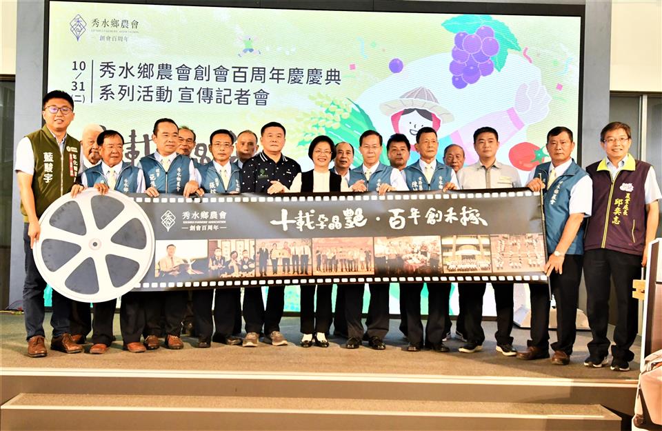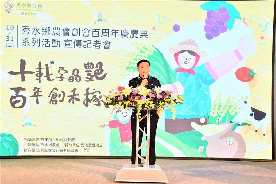 彰化縣秀水鄉農會創會100年,今(31)日於縣府中庭召開「十載孕晶艷.百年創禾稼」系列活動宣傳記者會,彰化縣長王惠美、秀水鄉農會理事長梁慶堂、常務監事陳性友、總幹事吳明信及與會貴賓邀請大家11月11日一起來秀水農會共襄盛舉,共同歡慶秀水鄉農會生日快樂。 王縣長說,恭喜秀水鄉農會創會百歲生日快樂,秀水農會於歷屆理事長、監事、總幹事等幹部人員帶領下會務蓬勃發展,吳總幹事這幾年來不斷的努力轉型,將農特產品精緻化生產,創造了秀水酪農的好品牌,生產牛乳品質佳,稻米生產也很好並創立禾稼米品牌。縣府也委託秀水農會舉辦小果番茄評鑑比賽,小果番茄比賽也獲得好評,創會百周年慶「十載孕晶艷,百年創禾稼」。農會總幹事各個身懷奇才,除了感謝農會三長帶領團隊的努力,也要感謝行政團隊的付出,更重要的是農會與農民緊密結合的信任感與合作。 王縣長說,為了慶祝秀水鄉農會創會100周年,提出活存100萬元、定存200萬元、借款300萬都可以獲得一張摸彩券,一個人最多可以領10張,總共發出6,678張摸彩券,共有1,467個獎項,頭獎是價值170餘萬元的Lexus NX200汽車,還有電動機車、蘋果智慧型手機、電冰箱、平板電腦、液晶電視機、洗衣機、腳踏車、行李箱等獎項,獎項豐富誠意滿滿,取之於社會回饋於社會,回饋農民回饋鄉民。今日則會抽出普獎蒸氣電熨斗668個,還有蘋果智慧型手機得主1名,剩下的將會於百年慶典日時抽出,活動當日有小農市集、親子食育教育、闖關活動、藝人表演、晚會有請陳雷、翁立友、楊博智、吳美琳等彰化及秀水在地藝人演出,歡迎所有鄉親前來共襄盛舉。 王縣長說,彰化縣政府近幾年也積極推廣智慧農業,「農、漁、牧的智慧生產標準示範場域」歡迎農友詢問申請,可補助50%最高30萬元,0.5公頃以上或特殊項目最高補助金額達100萬元,就是希望農業與科技結合,使從事農業更省力更智慧,再次恭祝秀水農會百周年生日快樂業績長紅。 秀水農會總幹事吳明信表示,秀水鄉農會於民國13年創會,長期在地方扮演促進農業發展、服務農民的重要角色,今年剛好創會100年,秀水農會把對居民的關懷轉化為具體行動,為回饋鄉親、會員及客戶,特別擴大舉辦100周年慶祝活動,感謝王縣長對彰化縣所有農業及秀水鄉農會100周年活動的支持,人家說台中有媽媽市長,他認為彰化則有媽媽縣長。11月11日慶祝活動當天活動非常精彩,除有靜態、動態活動及有特色的小農市集外,還有摸彩晚會,晚會更邀請彰化在地的金獎歌手翁立友、陳雷等人演唱,摸彩獎品非常豐富,獎項有Lexus NX200菁英版汽車、Gogoro Viva XL Belt電動機車、iphone14 Pro智慧型手機等多項好禮,歡迎彰化鄉親當天來秀水鄉農會共襄盛舉。 今日記者會由秀水鄉的閩南語歌手-林助家演唱為秀水鄉農會所創作的「咱秀水」揭開序幕,唱出對這片土地的深厚情感,並搭配鄉鎮及農會特色畫面呈現秀水之美。隨後由縣長帶領貴賓,於舞台手持底片膠卷,展示秀水鄉農會百周年歷程,象徵農會傳承及系列活動開跑。 秀水鄉農會也特別辦理鄉內各國小學童的繪畫比賽徵件,以「印象中的秀水鄉農會」為主題,共徵得494件作品,由專業評審團評選,最後有24件作品脫穎而出,將於今(31)日秀水鄉農會臉書粉絲專頁公告獲獎名單。作品將與食農教育靜態展、百周年歷程相片展共同於10月31日至11月11日期間於秀水鄉農會一樓百周年紀念展公開。 與會貴賓還有縣議員陳玉姬、藍駿宇、彰化縣農會總幹事張建豐、彰化市農會總幹事白閔傑、花壇鄉農會總幹事顧碧琪、鹿港鎮農會總幹事梁竣傑、福興鄉農會總幹事林坤宏、和美鎮農會總幹事謝燕如、線西鄉農會總幹事楊玲珠、大村鄉農會總幹事廖瑞樺、永靖鄉農會總幹事陳翠玲、溪湖鎮農會總幹事陳金源、埔心鄉農會總幹事張旗聞、田中鎮農會總幹事張瑞欣、社頭鄉農會總幹事蕭良珍、北斗鎮農會總幹事陳瑩昇、田尾鄉農會總幹事吳政憲、埤頭鄉農會總幹事王宋民、溪州鄉農會總幹事彭顯賦、二林鎮農會總幹事邱士平、竹塘鄉農會總幹事詹光信、縣府農業處長邱奕志、民政處長賴致富、農業處副處長蕭麗玲、各級民代及地方仕紳等。