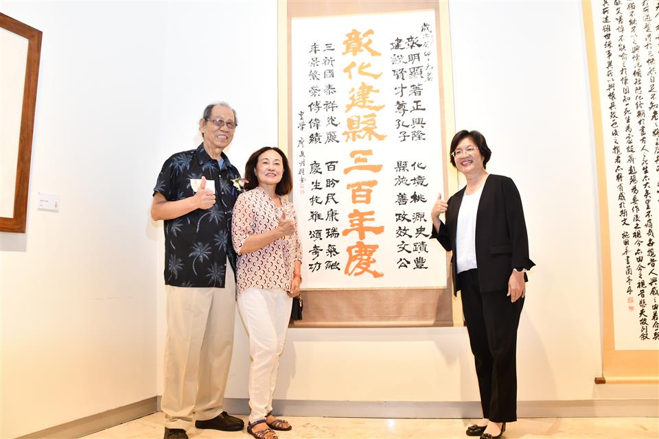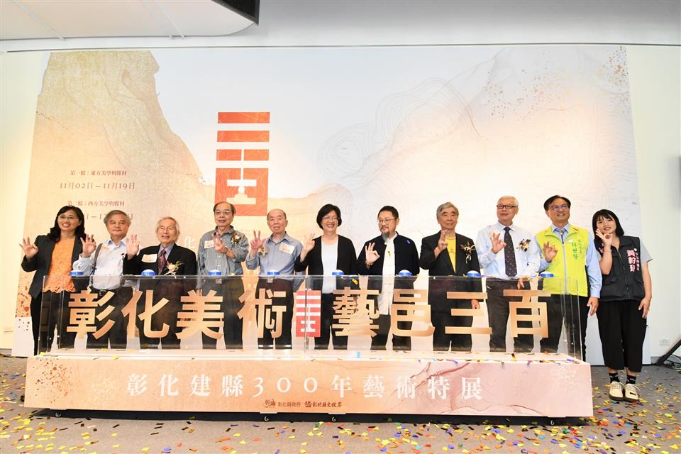 2023年迎來彰化建縣300的里程碑,彰化縣政府籌劃「彰化美術•藝邑三百~彰化建縣300年藝術特展」,邀請彰化縣300位優秀藝術家每人提供1件創作於縣立美術館展出,依參展作品媒材概分為東方美學與西方美學,分二檔次展出,今(9)日上午舉行第一檔東方美學與媒材開幕記者會,縣長王惠美、策展人李思賢、參展藝術家等人與會,邀請大家於即日起至11月19日前來欣賞跨時代的藝術饗宴,感受彰化本土在地、豐碩多元的文化能量! 王縣長表示,2023年迎來彰化建縣300的里程碑,從1723年清雍正元年,雍正以「建學立師,以彰雅化」之意賜名「彰化」為起點,開啟輝煌的300年。彰化建縣300年不只是文化歷史的里程碑,更藉由過去展望未來彰化的藝術風華。《新修彰化縣志》由東海大學美術系所主任李思賢等學者團隊藝術篇完成,歷經13年的耗資高達4,800萬元《新修彰化縣志》,共分9志36篇,在藝術志完成後,完成最後一塊拼圖。彰化建縣300,邀請300位藝術家展出300件作品,使各界知道彰化縣藝術的能量,感謝東海大學美術系所主任李思賢協助,邀展對象包含縣籍、外縣籍、國際級藝術家、接力展、臺灣工藝之家、傳統工藝暨無形文化資產保存技術及保存者、磺溪美展磺溪獎、優選獎、藝術學會理事長以及常年對彰化藝術推展有功的藝術推手等。 王縣長指出,本次藝術特展以作品媒材概分為兩檔,今天開展為第一檔東方美學與媒材,展出書法篆刻66件、水墨膠彩38件、立體工藝47件、複合媒材5件,共計156件作品,並由4位人間國寶領軍,為薪傳國寶級技藝貢獻心力!參展者中最年長的周光裕92歲,最年輕的劉念儒27歲(曾獲全國美展水墨類金牌獎),有5對父子(女)檔、4對兄弟檔,足可見彰化藝術能量的深厚與活力,更見證彰化美術的文化扎根與技藝薪傳。第二檔展期將於11/23~12/10展出西方美學與媒材,感謝策展人用心努力,所有參展大師藝術家共襄盛舉,共同創造出展覽盛事。 策展人李思賢表示,感謝縣府給予機會能擔任這次藝術特展的策展人,這次特展適逢建縣300年,剛好為跨時代的《新修彰化縣志》成就最後一片拼圖,這次參展作品都會在〈藝術志〉呈現,這次特展因參展作品太多,只好將參展作品類型分為東方、西方美學與媒材兩個展期,讓民眾能好好欣賞彰化跨時代的藝術作品,歡迎大家來彰化縣立美術館一同見證彰化書法界、美術界的輝煌歷史。 文化局表示,歷史是現在與過去永無止盡的對話,編纂〈藝術志〉過程中發現彰化縣有許多優秀藝術家,在建縣300年的歷史節點特別邀請聯合展出,這次以藝術為媒介,開啟跨時代的藝術對話串聯橫向視野,為彰化藝術領域研究留下珍貴的歷史軌跡。 與會貴賓有彰化市長林世賢、縣議員黃柏瑜服務團隊、東海大學美術系所主任暨策展人李思賢、湘江書畫學會理事長李榮茂、彰化縣墨友書畫學會理事長黃俊熠、彰化縣美術學會理事陳惠娜、王子妤、彰化縣共硯生活藝術學會理事長蔣仁傑、執行長許國卿、彰化書畫學會理事長吳政修、彰化縣青溪理事長常連芳、彰化縣人間國寶施至輝、陳萬能、施鎮洋、李秉圭、彰化縣文化局長張雀芬、以及立體工藝類、書法篆刻類、水墨膠彩類及第二檔的展出藝術家、各級民代與地方仕紳等。