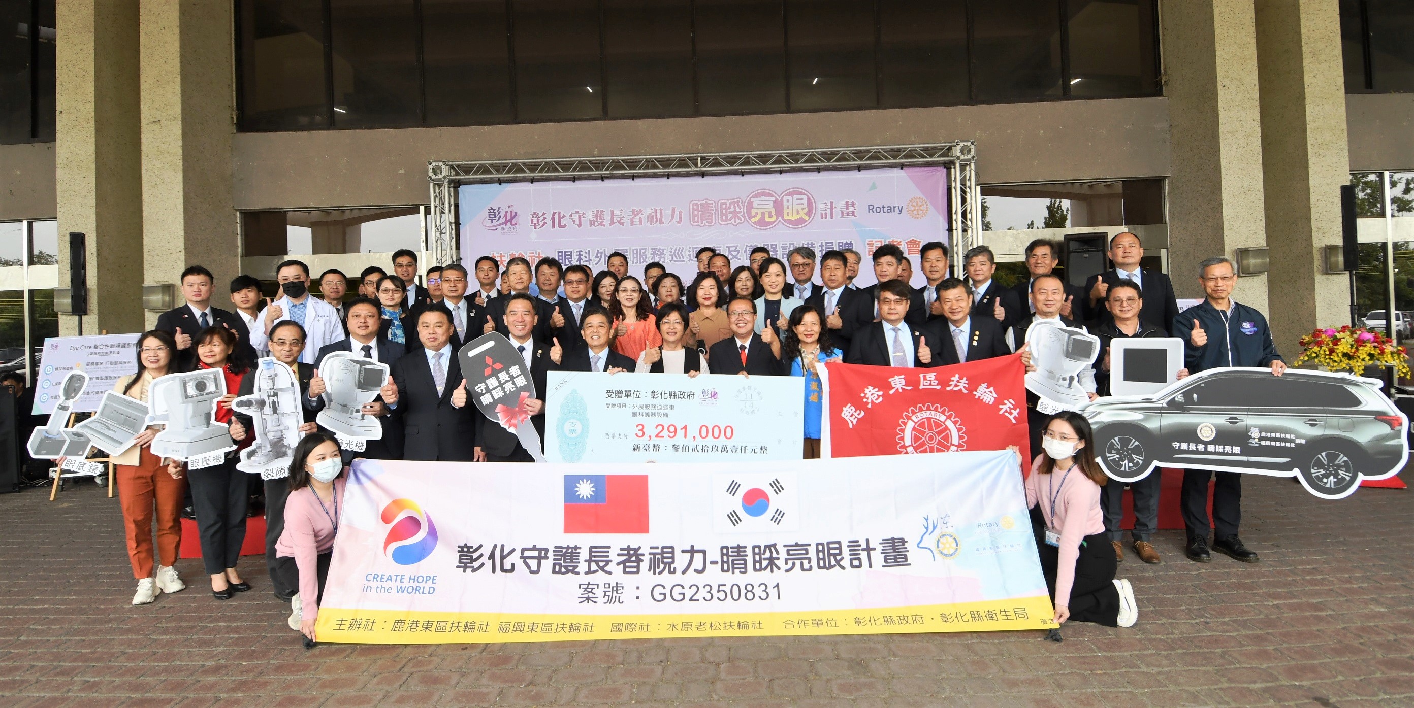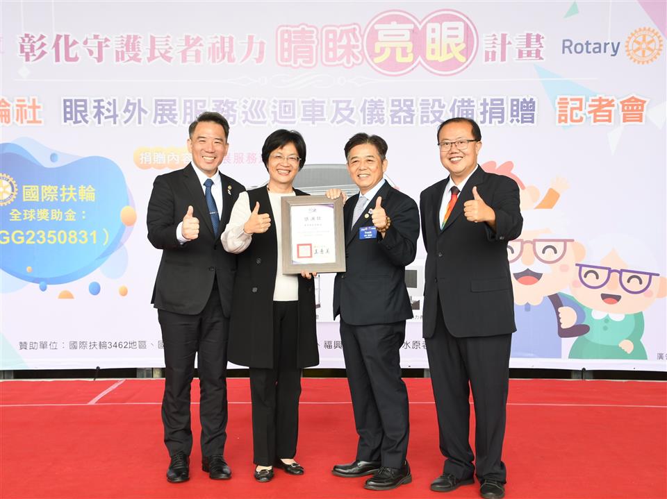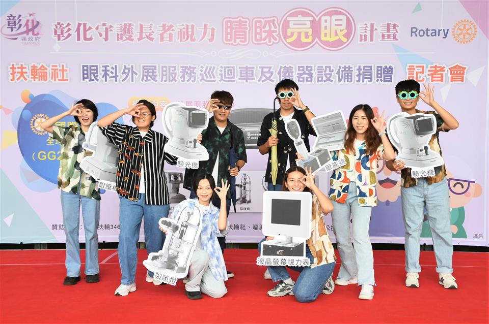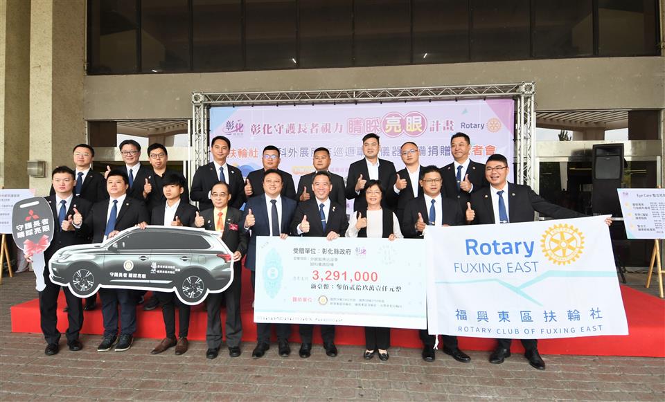 彰化縣衛生局今(14)日上午於彰化縣立體育館,辦理「彰化守護長者視力-睛睬亮眼計畫 扶輪社 捐贈 眼科外展服務巡迴車及儀器設備記者會」,彰化縣長王惠美、縣議員凃淑媚、彰化縣衛生局長葉彥伯、鹿港東區扶輪社長鄭忠慶、福興東區扶輪社長王義方、國際扶輪3462地區楊曜聰2024-25總監、明星眼科診所院長凃俊銜、彰化縣驗光師公會理事長葉士正、彰化縣驗光生公會理事長呂志忠以及多位扶輪社社友一同與會,王縣長表示,眼睛是靈魂之窗,眼睛看的見,人生是彩色的,眼睛看不見,人生就是黑白的,這項計畫預計每年辦理三大項服務麗睛專案行動眼科、長照C據點護眼服務以及萬人健檢,提升長者視力照護服務,合計226場,將讓1萬6,500人次長者受益,守護長者的健康。 王縣長表示,首先感謝國際扶輪3462地區一棒接一棒,各家扶輪社申請扶輪社全球獎助金,與縣政府一起投入彰化縣C肝根除計畫,達到WHO世界標準的108.5%,這次,再次拋磚引玉,特別感謝鹿港東區扶輪社、福興東區扶輪社以及韓國水原老松扶輪社,一起申請扶輪社全球獎助金329萬1,000元整,支持這項計畫,購置眼科外展巡迴車1部以及6台護眼儀器設備,讓驗光師生可以外展服務,深入偏鄉,協助有些長者沒辦法到專業眼科醫療院所診療,針對視網膜病變、青光眼以及黃斑部病變等眼科疾病,希望能夠早期發現,早期治療。 王縣長指出,彰化縣內在26鄉鎮市中,僅有10個鄉鎮有眼科醫療院所,6成以上鄉鎮民眾有眼睛健康問題時,没有辦法就近獲得眼科醫療的照護,這次特別也感謝彰化縣驗光師公會理事長葉士正及彰化縣驗光生公會理事長呂志忠彙集醫療院所及護理人員、驗光師,一起擴大服務更多鄉親,照護鄉親的靈魂之窗。 鹿港東區扶輪社長鄭忠慶表示,鹿港東區扶輪社每年都有申請全球獎助金,之前用於C型肝炎篩檢,今年再度與彰化縣衛生局合作,針對有些長者因為獨居造成的醫療不便,提供視力檢查及後續醫療輔助,並將數據回傳衛生局彙整,以期衛生局追蹤後續醫療診治。感謝福興東區扶輪社以及韓國水原老松扶輪社共同合作,全力支持彰化縣推展這項計畫。 福興東區扶輪社長王義方表示,福興東區扶輪社一起來捐贈眼科外展服務巡迴車及儀器設備計畫,為了讓長輩得到更好的醫療資源,能夠早期發現眼睛疾病問題,即早轉診治療,讓長輩得到更好照顧,這次捐贈以全球獎助金購置眼科外展巡迴車1部以及眼底鏡、驗光機、裂隙燈、眼壓機、移動視力表等儀器設備6台,協助長者視力健康檢查。 國際扶輪3462地區2024-25總監楊曜聰表示,很高興國際扶輪3462地區、鹿港東區扶輪社、福興東區扶輪社等,能夠與王縣長一同推廣長者視力保健外展服務,也共同捐贈4萬美金推動這次視力保健的活動,希望讓長者視力保健得到保障,不會受到眼疾之苦,同時也讓民眾了解扶輪社的公益推廣工作。 衛生局表示,彰化縣衛生局提醒您,隨著壽命的延長,失能與失智已逐漸取代疾病成為老化後最困擾的問題,特別是當長者身體出現失能情況時,死亡率會比未失能者來更高。民眾應定期安排視力檢查、針對異常及早發現及早治療,避免因為視力減損甚至失明問題影響健康與生活。
