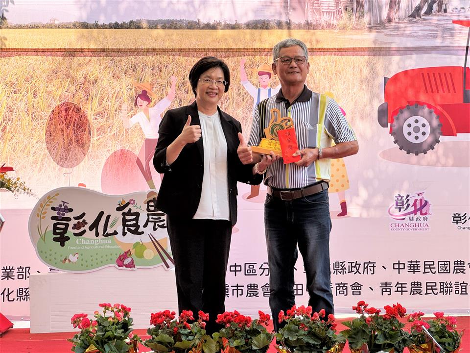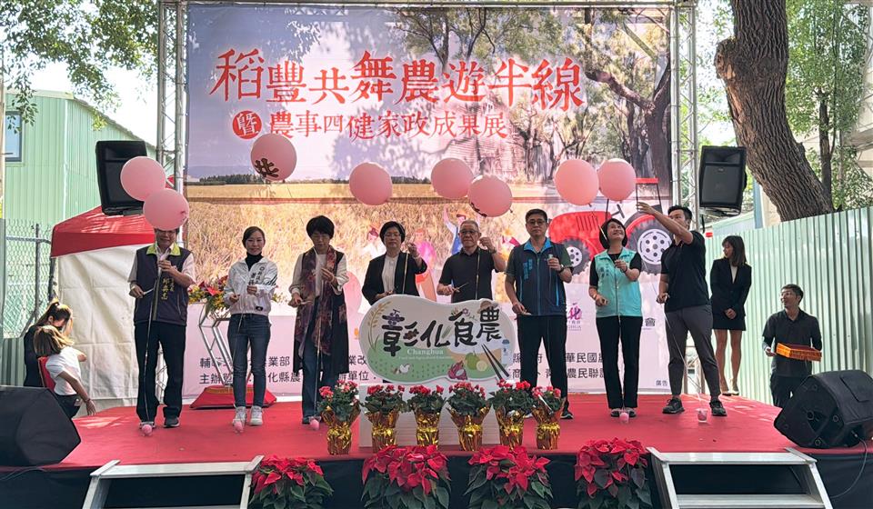 為推廣彰化休閒農業、食農教育及「各農會農業」成果發表,指導單位農業部及彰化縣政府,主辦單位彰化縣農會,於今(26)日上午在彰化田中碾米廠舉辦「稻豐共舞、農遊半線暨農事、四健、家政聯合成果展」,彰化縣長王惠美、彰化縣農會理事長蕭景田、總幹事張建豐、農業部臺中區農業改良場長楊宏瑛、等人與會,會中表揚稻米達人冠軍賽獲獎農民,王縣長表示,感謝彰化縣農會及各鄉鎮農會的用心與努力,不論在農事、四健會及家政的評比上,都有非常亮眼的成績,縣府也持續協助推動彰化優鮮品牌,行銷彰化的優質農產品,歡迎大家多多選購,力挺小農。 王縣長指出,田中是台灣十分重要的米倉,彰化縣歷史建築「原台中州農會田中倉庫」,預將於明年完工,後續將可點線面的串連起社頭、田中、二水的文化資產潛力點成為「田頭水」文化資產修復活化的重要據點之一,不僅為彰化創造新的文化資產亮點也可深度旅遊。彰化縣有15家觀光工廠、26家休閒農場、3處休閒農業區,包括二水鄉鼻仔頭休閒農業區、二林鎮斗苑休閒農業區、田尾鄉公路花園休閒農業區,希望持續發展觀光事業,並與國外旅行社及遊輪密切聯繫,希望讓國際旅客走進彰化,看見彰化的美、彰化的好。 今天活動有精采的舞台表演、休閒農業及農事、四健、家政的年度成果聯合展示、食農教育推廣、米食推廣、休閒農場手作DIY教學及30多組「由青農及休閒農埸組成」農產品展售攤位,展現彰化農業的豐沛活力,也讓參與者對食農與土地的連結有更深一層的認識;現場也辦理稻米達人冠軍賽-鄉鎮賽的頒獎,比賽競爭激烈,由倪榮俊榮獲臺灣好米組第一名,洪挺愷榮獲臺灣有機米組第一名,將代表本縣參加全國競賽,讓來自彰化的好米被看見。 與會貴賓還有縣議員蕭妤亘、鄭俊雄、田中鎮長蕭淑芬、彰化縣農會理事長蕭景田、總幹事張建豐、農業部臺中區農業改良場長楊宏瑛、田中鎮農會總幹事張瑞欣、北斗農會總幹事陳瑩昇、溪州農會總幹事彭顯賦、二水鄉農會總幹事羅崴騰、福興鄉農會總幹事林坤宏、社頭鄉農會總幹事蕭良珍、埤頭鄉農會總幹事王宋民、和美鎮農會總幹事謝燕如、大村鄉農會總幹事廖瑞樺、埔心鄉農會總幹事張旗聞、芳苑鄉農會總幹事謝介民、大城鄉農會總幹事蔡南輝、鹿港鎮農會總幹事梁竣傑、線西鄉農會總幹事楊玲珠、田尾鄉農會總幹事吳政憲、縣府秘書張立憲、農業處長邱奕志、各級民代及地方仕紳等。