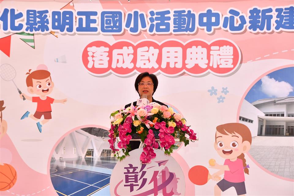 彰化秀水明正國小29日上午舉行落成啟用典禮,彰化縣長王惠美、明正國小校長林俊成等人與會,王縣長表示,明正國小創校60年以來,現今師生總人數超過千人,但缺乏大型室內活動空間,在縣府、學校、各級民代等共同努力爭取下,齊心合作,感謝教育部補助3,500萬元,縣府自籌款3,500萬元,因應物價上漲有追加經費補助1千萬元,合計共8,000萬元新建活動中心,縣府再向中央爭取活動中心空調設備補助655萬元,並挹注縣款595萬元設置舞臺、音響、監視器、體育器材等,使活動中心可以更加完善。期望活動中心的落成啟用,讓學子們有更完善、更寬廣的室內活動空間,未來也可以提供秀水埔姜崙等鄰近社區居民一個優質的運動休閒環境。 王縣長表示,感謝建築師用心設計,在施工期間有其困難度,活動中心建築主體採大跨度構架,創造自然採光通風,活動中心除了學校教學活動使用,也將提供給社區活動之用,肩負著社會教育、文化、防災、運動、樂活等多元功能與角色任務,使孩子有更好的活動空間。 秀水鄉長林英嘉表示,過去,他讀國小的時候,就希望學校能有活動中心,直到今天,活動中心才完成興建,可見這是地方長期以來的需求,感謝王惠美縣長縣府團隊在多方努力之下,讓活動中心可以落成,這是明正國小的一大喜事,也是鄉內社區的一大喜事,也期待未來活動中心可以跟社區結合,以租借方式提供更多鄉親可以使用。 明正國小校長林俊成表示,要感謝的人太多了!感謝王惠美縣長及各級民代及各界的協助與支持,也感謝建築師精心的設計及營造公司用心的施工,還有前任校長盧焜煌整合一切人力努力爭取經費獲核定補助新建活動中心,這項工程歷經規劃新建,也要感謝傑出校友也是學校的總務主任林建福定居於學校隔壁,他幾乎每天都來工地關心工程進度,為學校盡心盡力。 王縣長指出,縣府近2年挹注經費高達2,397萬元,進行校舍耐震補強工程、整建操場跑道、改善教室照明及整修排水鋪面等,以提供孩子們更優質、安全、舒適的學習環境。縣府重視教育建設,從原本的5千萬預算大幅提升至1億5千萬元的預算編列,加速更新學校環境。明正國小在歷任校長及現任林校長帶領教師們積極努力之下,辦學績效卓著,深獲社區民眾肯定,雖面臨少子女化衝擊下,班級數仍穩定發展,學生參加競賽亦屢獲佳績,在語文方面,榮獲112年度臺灣母語創作徵文比賽客家語詩第一名、112年語文競賽全縣複賽寫字第一名並代表參加全國賽;在體育方面,榮獲112年第十屆環球盃體育舞蹈賽流行舞兒童組比賽冠軍、112年度本縣體育季圍棋錦標賽三年級組第一名、112年本縣適應體育田徑賽國小女生60公尺第一名。除了縣府資源挹注,更感謝家長會委員們的經費補助,感謝縣議會議長謝典林及所有議員、各級中央地方民代與地方仕紳對於縣府提出各項政策預算案的支持,使縣府有充足的經費可以完成更多基礎建設與各項活動。 與會人員還有立法委員黃秀芳、彰化縣議員凃淑媚、藍駿宇、郭燕陵、楊妙月、秀水鄉長林英嘉、秀水鄉民代表會副主席鄭倫杰、鄉代表陳鑲萍、吳泳慧、梁淑絹、林澄洋、立委陳秀寳服務團隊、縣議員楊竣程服務團隊、黃俊源服務團隊、前議員葉國雄、行政院政務顧問暨明正國小榮譽會長郭坤發、縣府教育處長蔡金田、工務處副處長林孟弘、新聞處長李俊德、明正國小校長林俊成、家長會長陳鴻弦、輔導會長楊其昌、榮譽會長林漢隆、黃榮輝、林金生、明正國小前校長蔡義和、黃坤和、盧焜煌(調任泰和國小校長)、彰化縣親師家長協會巫松昀、長立營造股份有限公司董事長陳冠伶、各級民代與地方仕紳等人。