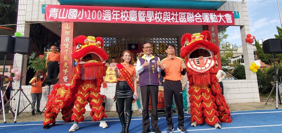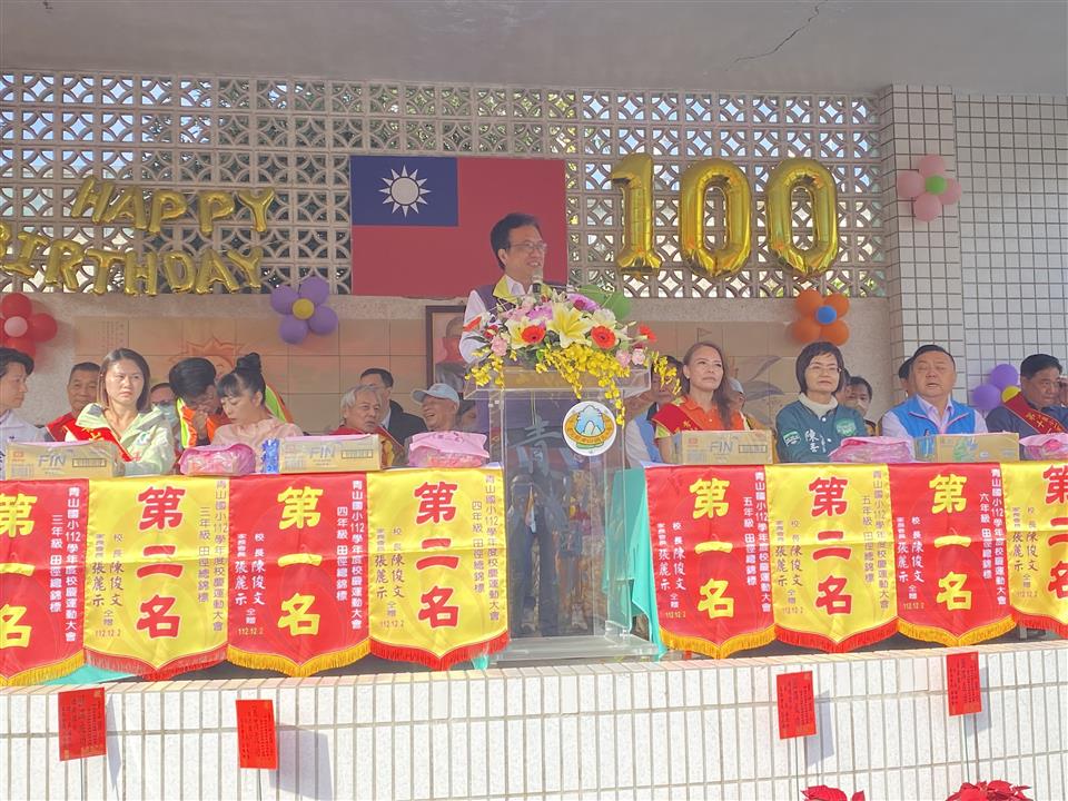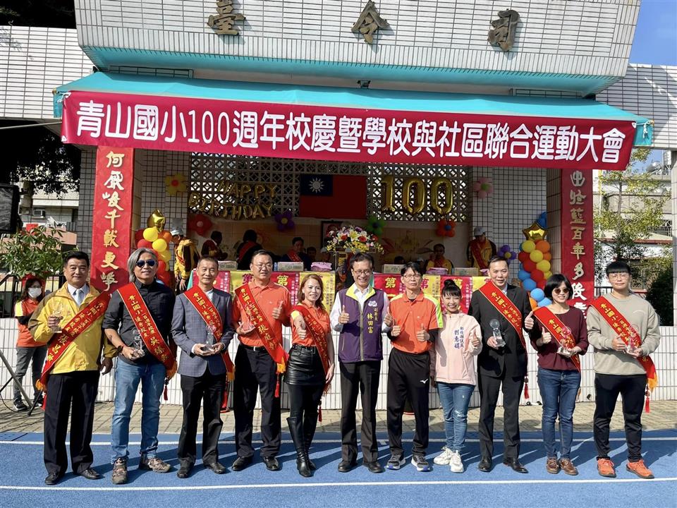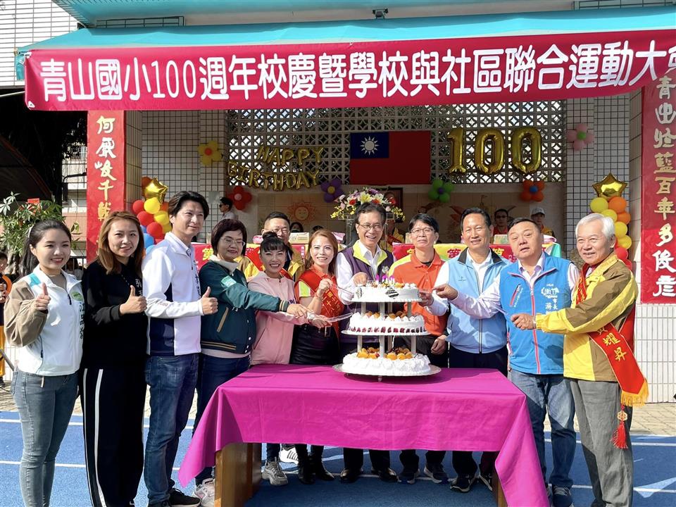 員林市青山國小原有的會議室設施設備老舊且空間明亮度不足,亟需修繕,縣府補助經費100萬元,將會議室重新整修改造為舒適、優質的多功能教室。2日上午辦理100週年校慶及社區聯合運動會暨多功能教室揭牌啟用典禮,彰化縣副縣長林田富代表縣長王惠美與會,並領唱生日快樂歌、切生日蛋糕。林副縣長祝福青山國小100歲生日快樂,也期望多功能教室的啟用,提供師生更完善的教學環境。 縣府不僅對於教學環境的安全非常重視,更積極挹注資源,提升學校的教學環境品質。由於不僅如此,縣府近年更挹注近1,499萬元經費,用以整建運動場館、充實活動中心投影設備、修繕活動中心舞台、更新課桌椅、改善校園地坪及水溝高低差等,以積極營造更優質校園環境,讓青山的學子能夠快樂學習,健康成長。 青山國小近年來在校長及校內師長用心付出下,積極發展各領域特色課程,學生對外競賽表現優異, 111及112學年度連續兩年榮獲本縣學生音樂比賽暨師生鄉土歌謠比賽直笛重奏國小團體乙組第一名、合奏第二名;112年中小學聯合運動會榮獲國小男生乙組400公尺接力第一名、112年縣民運動大會榮獲國小女童60公尺第一名、國小女童400公尺接力第一名及本縣112年度國民小學英語團體朗讀比賽榮獲B組特優。特別感謝師長的用心付出,還有家長會、各級民代及地方仕紳對學校辦學的鼎力支持與協助,讓學校擁有如此耀眼的表現。 欣逢百年校慶,校長陳俊文及校內師長用心規劃並發揮創意,安排溫馨有趣的社區聯合運動會,還有在活動中心展示學校歷史文物、磺溪九怪書法大師作品、彰化縣環境促進協會生態展等,並邀請來書法大師黃榮森校長現場揮毫送春聯。此外,更規劃校慶相關系列活動,包括「三代校友聚青山」及「學生才藝音樂晚會」等,活動內容精采豐富,廣邀師生、校友、家長及社區民眾一同歡度「青山慶百、綻放精彩」的時刻,積極打造學校與社區共融共好的氛圍。 縣府指出,教育是百年大業,學生是國家社會的基石,十年樹木,百年樹人,未來將持續挹注經費改善及充實學校教育資源,培育更多優秀人才,一起打造美好彰化、希望城市。 與會貴賓還有立法委員陳素月、縣議員凃俊任、張錦昆、張欣倩、劉惠娟、鄭俊雄、前議員賴澤民、員林市長游振雄、教育處督學黃敏宜、員林代表會主席張國良、青山國小校長陳俊文、家長會長張麗示、家長會輔導會長楊仁豪、校慶籌備會主委黃耀昇、顧問團長張世明、彰化縣親師家長協會理事長巫松昀、臺懋實業股份有限公司總經理謝俊傑、林厝社區發展協會理事長謝東瑞、縣府秘書江世鐘、賴沛然、歷屆家長會長、各級民代與地方仕紳等。