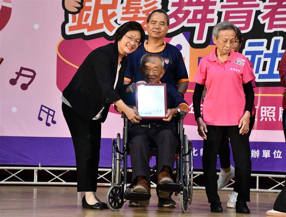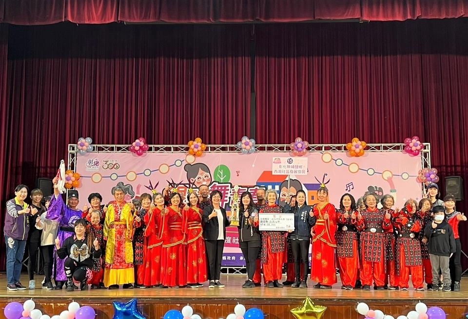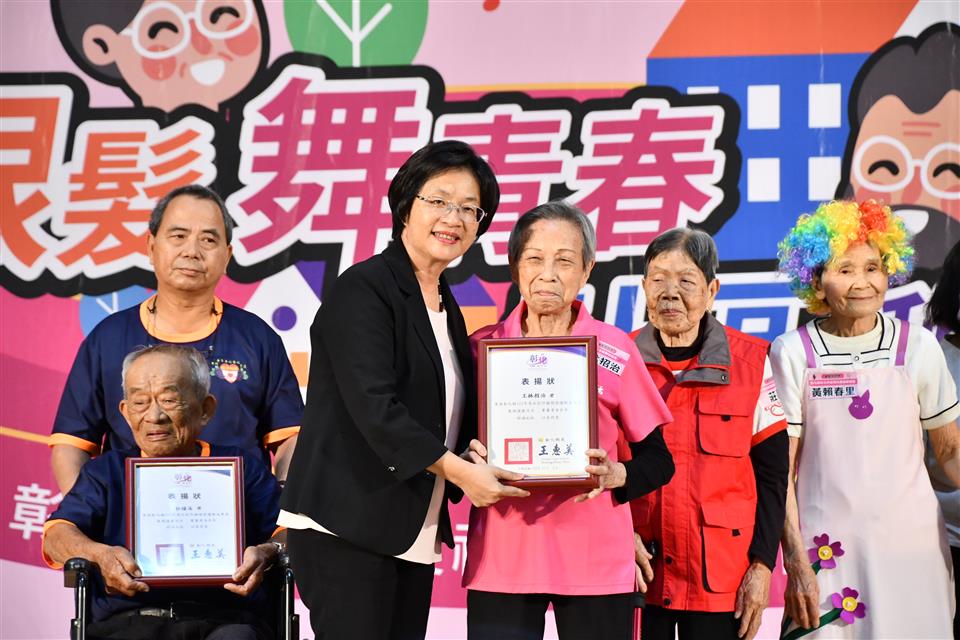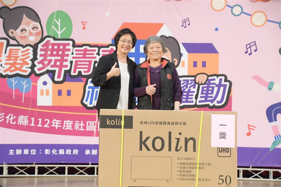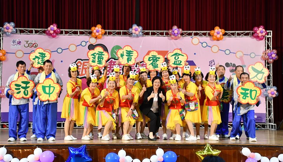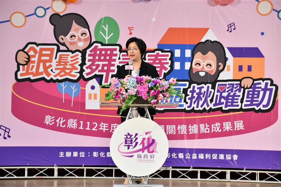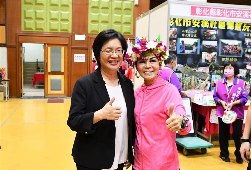 彰化縣政府3日上午在亞太鹿港渡假村舉辦「112年度社區照顧關懷據點成果展」,縣長王惠美到場與長輩同歡,這次成果展分為動態活力秀及靜態展覽,活動由去年冠軍隊伍埤頭鄉中和社區的長輩帶來熱情活力的精采表演揭開序幕,現場熱鬧滾滾、歡聲雷動。王縣長表示,這次的成果展,以銀髮舞青春,歡迎大家一起動起來,內容包括動態的活力秀比賽,進入決賽的有20個社區,比賽持續到下午結果才會出來,在現場來參加,最高齡有二位98歲,一位是來自大村田洋社區的郭鐘溪阿公,另一位是來自彰化市金齡關懷協會的王林招治阿嬤,90歲以上的有13人,可見彰化是長壽縣,大家都卯足全力,以活潑生動、健康活力的方式來展現銀髮族的熱情與魅力。比賽成績出爐第一名大村鄉村上社區,第二名埔鹽鄉西湖社區,第三名彰化縣金齡關懷協會。 王縣長表示,這次成果展在動態活力秀,看到長輩們都躍躍欲試,可見之前在社區關懷據點練習了這麼久,就是為了來這次的比賽,報名參賽隊伍有40隊,經初賽有20隊,脫穎而出晉級的決賽,比賽獎金豐富,第一名8萬元、第二名5萬元,第三名3萬元。另外,在靜態展覽,各個社區也都展現出特色,真的很棒。有些社區也持續精進,將長輩做的東西拿出來義賣,為長輩加菜或是再做更多的公益,這是一個善的循環。 王縣長指出,彰化縣有591個村里,目前已成立343個社區關懷據點,感謝社區理事長、總幹事、志工隊長等人,平時在社區中對於長輩的照顧不遺餘力,讓長輩能在地安養,在地得到最好的照顧,她也鼓勵更多的長輩能走入社區,彼此共融、共享、共樂。據統計,從生病到過世大約花費了8年的時間,過程相當辛苦,反觀先進國家只有約二週的時間,希望藉由據點及活動,讓長輩能忘記老化,能夠更加健康,更加精采。特別也感謝依必朗化學製藥股份有限公司及華湑有限公司分別提供濕紙巾及襪子贊助摸彩品,希望大家都能中大獎。 與會貴賓有縣議員凃淑媚、縣府社會處長王蘭心、消保官張啟昱、各社區代表、各級民意代表與地方仕紳。