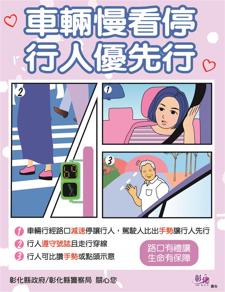 彰化縣政府於交通部112年考評「111年院頒道路交通秩序與交通安全改進方案執行成果實施計畫」中,蟬聯「交通安全宣導組」第二組第一名(第二組:基隆市、新竹市、新竹縣、嘉義市、嘉義縣、彰化縣、雲林縣、屏東縣),六度榮獲交通部金安獎肯定,11月20日由新聞處副處長張志昇代表縣長王惠美至臺中市政府受獎,於28日擴大主管會報中將金安獎獻予王惠美縣長,王縣長期許同仁持續努力,藉由優質的交通安全宣導,減少交通意外等憾事發生。 縣府各單位對於道路交通安全,尤其是宣導面向有不少積極作為,由新聞處經營的彰話噪咖Podcast頻道邀請「路老師」上節目,運用時下最流行的傳播媒體,將最新的交安資訊傳遞給更多的民眾。此外,更以警界網紅「嗶嗶哥—江敦霖警員」為題材,結合真人與動畫,拍攝成影片,新穎有趣的內容讓宣導不再枯燥乏味,而是吸引更多年輕人重視交通安全。為了觸及各族群,於空中英語雜誌置入,結合英語學習與交通安全宣導,達到宣導綜效。 彰化縣推動交安不遺餘力,今年首度承辧「全國交通安全宣導人員專業研習與訓練」,中央交通相關單位及全國各直轄市、縣(市)約180名的道安夥伴齊聚彰基國際培訓中心,期許透過專業研習及交流,了解國際道安改善趨勢,導入創意行銷思維,共同探討交通安全推動重點,齊心協力守護全民「行」的安全。 依據警政系統蒐集各縣市違規,目前常見肇因有「汽機車違規停車」、「汽機車超速(速限60公里以下)」、「汽機車不依規定轉彎」、「闖紅燈」及「爭道行駛」等,縣府配合交通部辦理9月「交通安全月」活動,期藉由各種不同作為,達到「路口慢看停行人停看聽」等安全意識覺醒,以避免發生事故造成生命財產損失。希望駕駛人維持路口停讓的良好駕駛觀念,若汽機車行經路口應暫停讓行人先行,並且友善高齡者,發揮同理心,注意行車安全。有關「交通安全月」相關資訊請上網查詢 https://168motc2021.yam.com/。