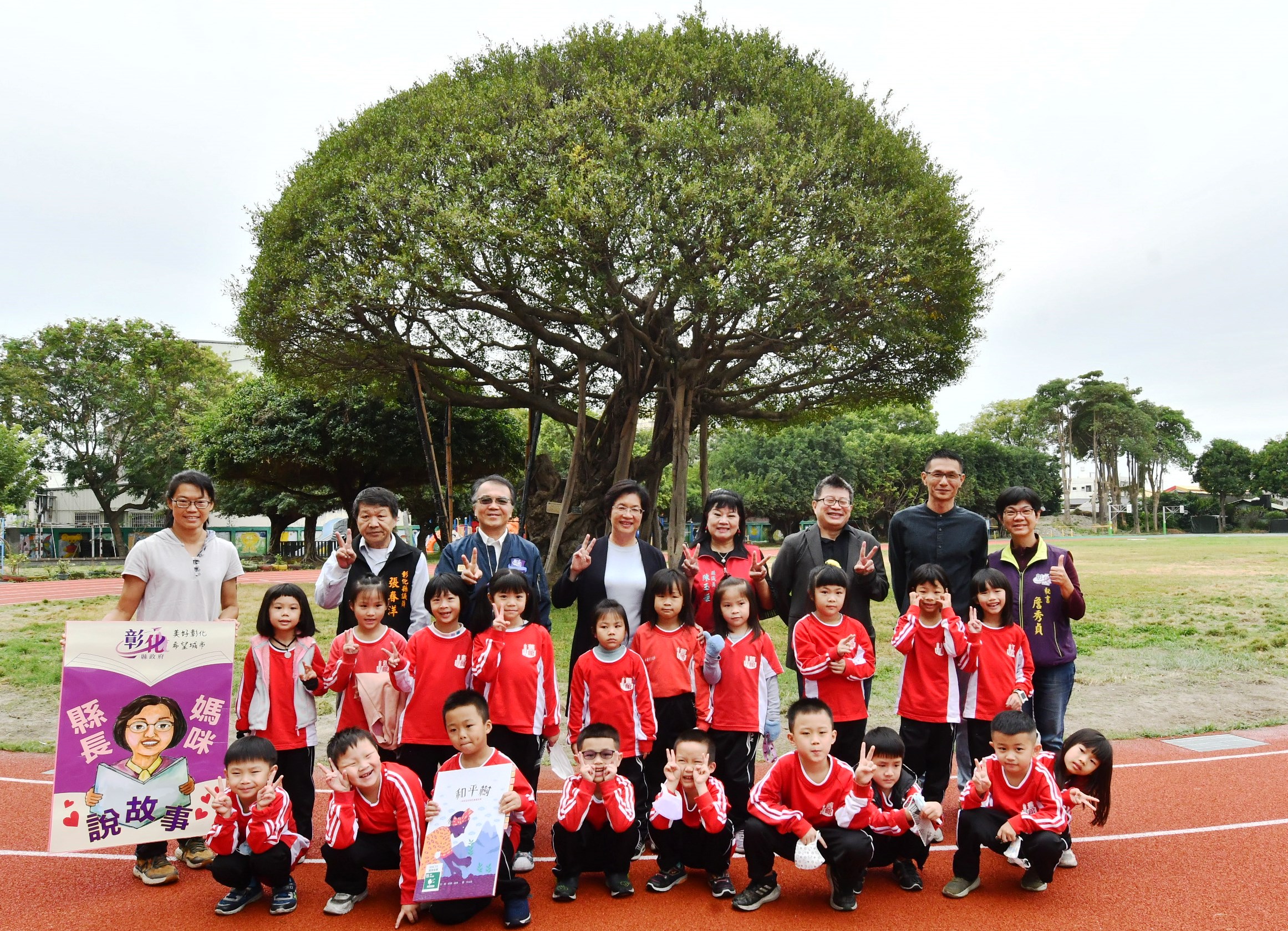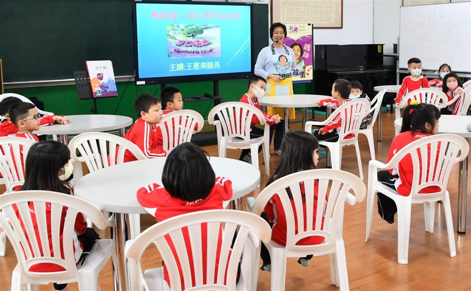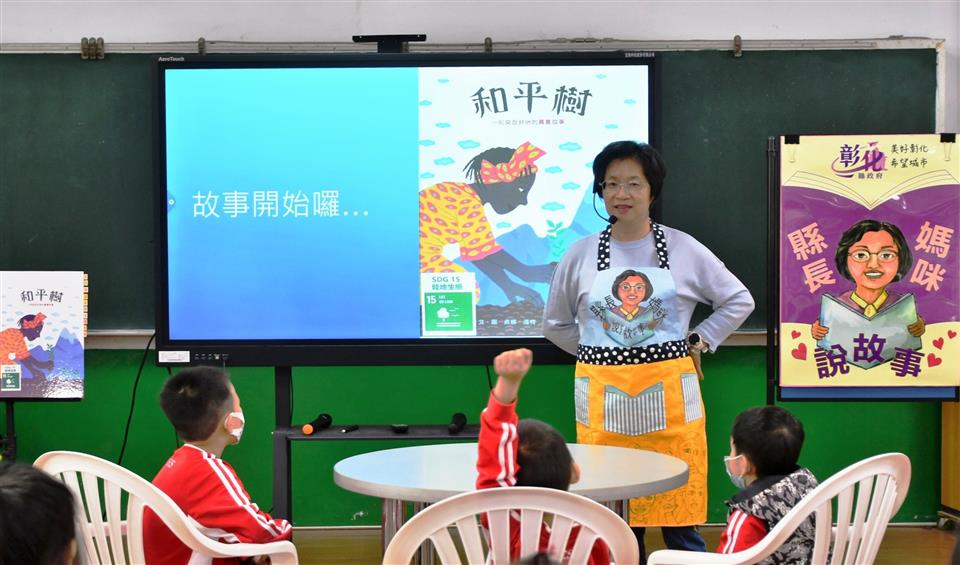 彰化縣長王惠美今(4)日上午除了到埔心舊館國小視察關心學校相關建設,也化身縣長媽咪,為小朋友講故事,王縣長表示,這次特別與小朋友分享「和平樹」這個故事,內容說的是非洲第一位拿到諾貝爾和平獎女得主萬家麗˙瑪阿塔伊,本身留學美國,回國之後發現在地環境都變了,因此鼓吹非常多的婦女大家一起來種樹,並把環境與永續的概念傳授給很多婦女,不僅僅敘述萬格麗的努力與環境保護的觀念,更展現一位女性環保鬥士的熱情、願景與決心,以及她帶來的影響。 王縣長表示,會選擇講述這則故事的原因,是舊館國小已有一百多年,學校內也有一棵一百多歲的老樹,利用這個機會讓孩子們能夠知道「前人種樹,後人乘涼」以及愛樹護樹的道理。環境真的非常重要,特別是現在氣候變遷,大家更需要追求SDGs的永續發展目標,特別謝謝校長、老師們長期不斷地對孩子們做這方面的教導。 舊館國小校長劉坤山表示,舊館國小有一百多年的歷史,這次縣長媽咪說故事的主題與樹有關,是校訂課程的一部分,一年級的孩子們,他們的第一課就是認識學校裡的大樹,特別感謝縣長媽咪來講述非洲繪本和平樹的故事,讓小朋友收獲良多。 與會人員還有縣議員陳玉姬、張春洋、縣府教育處長蔡金田、舊館國小校長劉坤山、家長會長吳加祥等人。