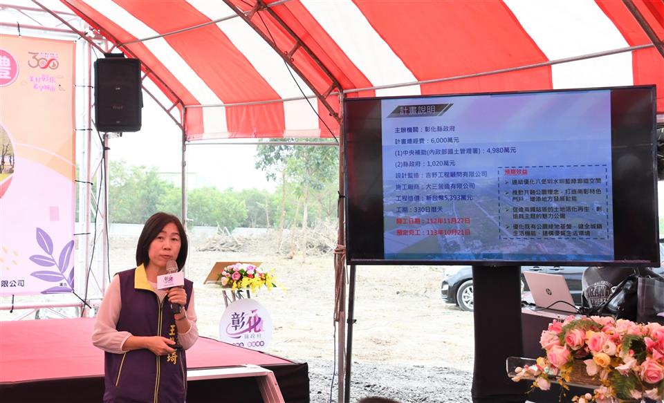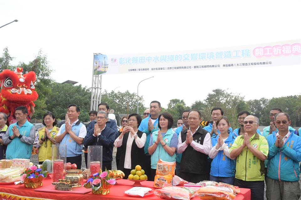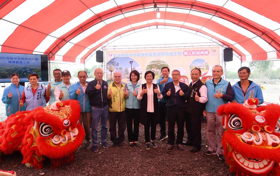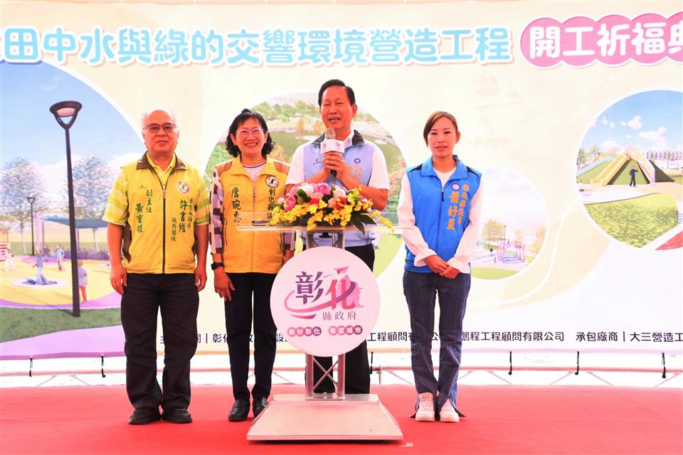 彰化縣政府斥資總經費9,500萬元,在田中高鐵彰化站附近推動「田中水與綠的交響環境營造工程計畫」,於今(11)日上午在預將在站區附近施作的田中鎮滯洪池公園(高鐵二路三段與站區十路口)辦理開工祈福典禮,彰化縣長王惠美、田中鎮長蕭淑芬、社頭鄉長蕭浚二、議員、民代等人,共同祈求工程順利進行,期待完工後在彰化高鐵特定區內營造具特色景觀的公園綠地、體健設施、親子共融遊憩設施及花木寵物公園,提供當地居民及遊客最完整、最有趣的觀光遊憩空間場域。 王縣長表示,「田中水與綠的交響環境營造工程」占地3.72公頃,共有二部分,一是由彰化縣政府縣府團隊經過各縣市的競爭型評比,向國土署爭取到「城鎮風貌及創生環境營造計畫」經費補助,未來將在站區附近新規劃三處公園,包括現地滯洪池公園,更有長達2.2公里的銜接社頭到田中的綠色廊道,獲中央補助4,980萬元,縣政府感謝議長謝典林及所有議員對經費的支持,配合款1,020萬元,總計經費6,000萬元。 王縣長指出,另外,縣府為了打造更好的親子環境,再挹注3,500萬元,未來在滯洪池公園辦理共融式親子遊戲場設施,規劃有6.7米高的熊造型遊戲主塔區、獅子造型滑索區、叢林擺盪區、兒童沙坑區及休憩爬網區等全齡層共融遊戲空間,讓孩子有遊玩的好空間。也感謝田中鎮公所、民意代表及里長的用心,在施作前提供各方的意見,彰化縣目前已有超過45處通過檢驗的兒童遊戲場,期待未來完成後,能更加符合鄉親的需求。 田中鎮長蕭淑芬表示,感謝王惠美縣長縣府團隊非常用心,在田中鎮規劃這麼好的遊憩空間,除了遊憩空間之外,在對面的三民社區還有托嬰中心、社區活動中心等,有王縣長這麼支持在地的建設,相信透過建設讓地方能發展,讓人民百姓能看到地方的進步,這樣人口外流的速度就會減緩。 城觀處表示,為了打造彰化高鐵特定區優質景觀遊憩空間,彰化縣府向國土署爭取「城鎮風貌及創生環境營造計畫(競爭型)」經費補助,中央補助4,980萬,縣政府配合款1,020萬元總計經費6,000萬元,執行重點目標在於回應氣候變遷調適策略、淨零碳排及以自然為本的環境設計,並以簡單好用、好維護、好管理的原則設計,多種植原生樹種並增加綠地面積,打造綠色基盤;另縣府為提升特色亮點公園空間營造,再挹注縣款3,500萬元辦理具主題特色的共融式親子遊戲場設施,施作內容包含約6.7米高的熊造型遊戲主塔區、獅子造型滑索區、叢林擺盪區、兒童沙坑區及休憩爬網區等全齡層共融遊戲空間,發展結合地方特色為主題性的共融遊具公園場域,營造高鐵站門戶新意象,全計畫案總經費9,500萬元,預計於113年底前完工。 與會貴賓還有縣議員鄭俊雄、蕭妤亘、詹琬惠、田中鎮長蕭淑芬、社頭鄉長蕭浚二、田中鎮民代表會主席曾福傳、社頭鄉民代表會主席陳慶福、縣議員許書維服務團隊、大三營造工程股份有限公司負責人陳玄惠、鵬程工程顧問有限公司負責人彭成麒、吉野工程顧問有限公司總經理王偉哲、縣府城市暨觀光發展處長王瑩琦、副處長洪世益、各級民意代表與地方仕紳等人。