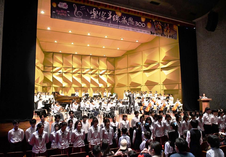 彰化縣「樂響半線‧感恩300」音樂會今(17)日在員林演藝廳登場,由員林國小、民生國小、鹿鳴國中、大同國中、成功高中及彰化藝術高中等縣內六校音樂班學生,進行聯合展演。彰化縣長王惠美到場聆聽,並感謝學生們辛勤排練,還有老師及家長們在幕後的支持與辛勤付出,這次演出曲目融合東、西方經典,傳統與現代音樂風格交錯,滿足不同聽眾的品味,為縣民們帶來一場別開生面的音樂盛宴。 王縣長表示,「彰化不怕沒人才,就怕沒舞台」!縣府不斷的搭建舞台,近年來不管是美術、音樂,或是舞蹈,把縣內學校集中在一起,大家互相觀摩,激勵彼此,今天的音樂會孩子們用心準備很久,演奏曲目非常多元,有臺灣原住民的音樂、臺灣傳統民謠、歐美經典音樂作品、新加坡新創國樂作品、美國與日本風格管樂作品,更有學生凝聚一心的大合唱,相信一定很精采。 王縣長指出,歲末是個感恩的時間,也檢視過去一年以來的成果,今年彰化縣國高中、國小共有六所學校聯合舉辦音樂會,在校長、老師們給予孩子們指導之下,讓孩子們音樂上的造詣不斷增加,表現都非常棒,特別也感謝台中教育大學臺中教育大學莊敏仁教授的指導,也感謝家長會對於孩子們音樂上的支持,祝福孩子們都能夠突破自我、再創佳績,透過藝術教育,相信孩子們在成長的過程中一定會更加有氣質,心靈更加美好。 臺中教育大學教授莊敏仁表示,非常榮幸接受這份邀請,彰化縣讓每個孩子受到高品質的教育,在王惠美縣長領導之下,向國際說「No Child Left Behind」,讓世界看見台灣,台灣的教育在彰化,透過六所學校看見教育的品質,在彰化縣內用心耕耘教育。這次對他來說,有三個重點,一是榮耀,一起關心教育;二是責任,從音樂教育中看見孩子的未來,看見希望;三是使命,傳承教育,他在擔任音樂總監的過程中,從六所學校訪視、推動、策畫節目,讓他看見彰化令人驕傲的是永不抹滅的教育愛,師長們的用心,學生們的認真,共同為了使命而努力。 教育處表示,彰化縣已連續5年舉辦藝術才能的聯合展演,無論是音樂、美術或舞蹈,都是為了提供青少年學子更多展現自我的機會;今年音樂會特別聘請國立臺中教育大學莊敏仁教授擔任音樂總監,指導縣內六所中小學音樂班以聯合音樂會的形式共同演出,透過管弦樂、管樂、弦樂、國樂、絲竹室內樂、合唱等動人樂音與歌聲,共同歡慶彰化縣建縣300年。 教育處表示,音樂會以樂聲慶祝彰化縣三百年的文化歷程,首先由大同國中管弦樂團演奏雷哈爾〈金銀圓舞曲〉華麗開場,接著六校百人合唱美國著名青少年合唱曲〈當我閉上眼睛〉,接著演奏多首歐美、中日的經典曲目,除了臺灣原住民歌謠組曲,也有柔美的絲竹室內樂和鏗鏘有力的國樂合奏,多元音樂風格為「半線」增添豐富的藝術色彩與熱鬧氣象;最後的謝幕曲由鹿鳴國中、彰藝中合奏,並由六校大合唱當代台語歌謠〈放天燈〉,含意為祈願彰化縣運昌隆,縣民平安快樂,洋溢溫馨感恩氣氛。這場音樂會由學生及彰化縣政府傾情呈現,展現彰化縣豐富的文化底蘊;曲目融合東、西方經典,傳統與現代音樂風格交錯,希望滿足不同聽眾的品味,傳遞希望、幸福的主軸。 與會貴賓還有臺中教育大學教授莊敏仁、教育處副處長張淑珠、民生國小校長洪榮炎、民生國小家長會長林自強、員林國小校長蕭勝斌、大同國中校長謝國士、大同國中家長會長張威創、彰化藝術高中校長蔣秉芳、彰化藝術高中家長會長賢伉儷王世昌、黃郁雯、成功高中校長林克修、成功高中副家長會長巫承頤、成功高中輔導會長陳家凱、鹿鳴國中校長許毅貞、鹿鳴國中家長會長施惠玉、鹿鳴國中副家長會長謝忠賢等人。